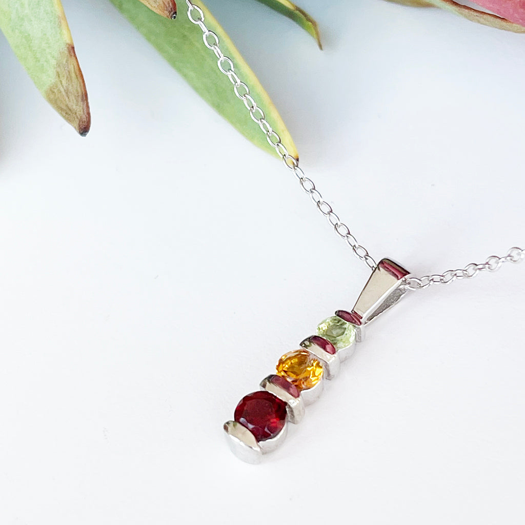 Silver 3 Bar Pendant set with Garnet, Citrine, Peridot