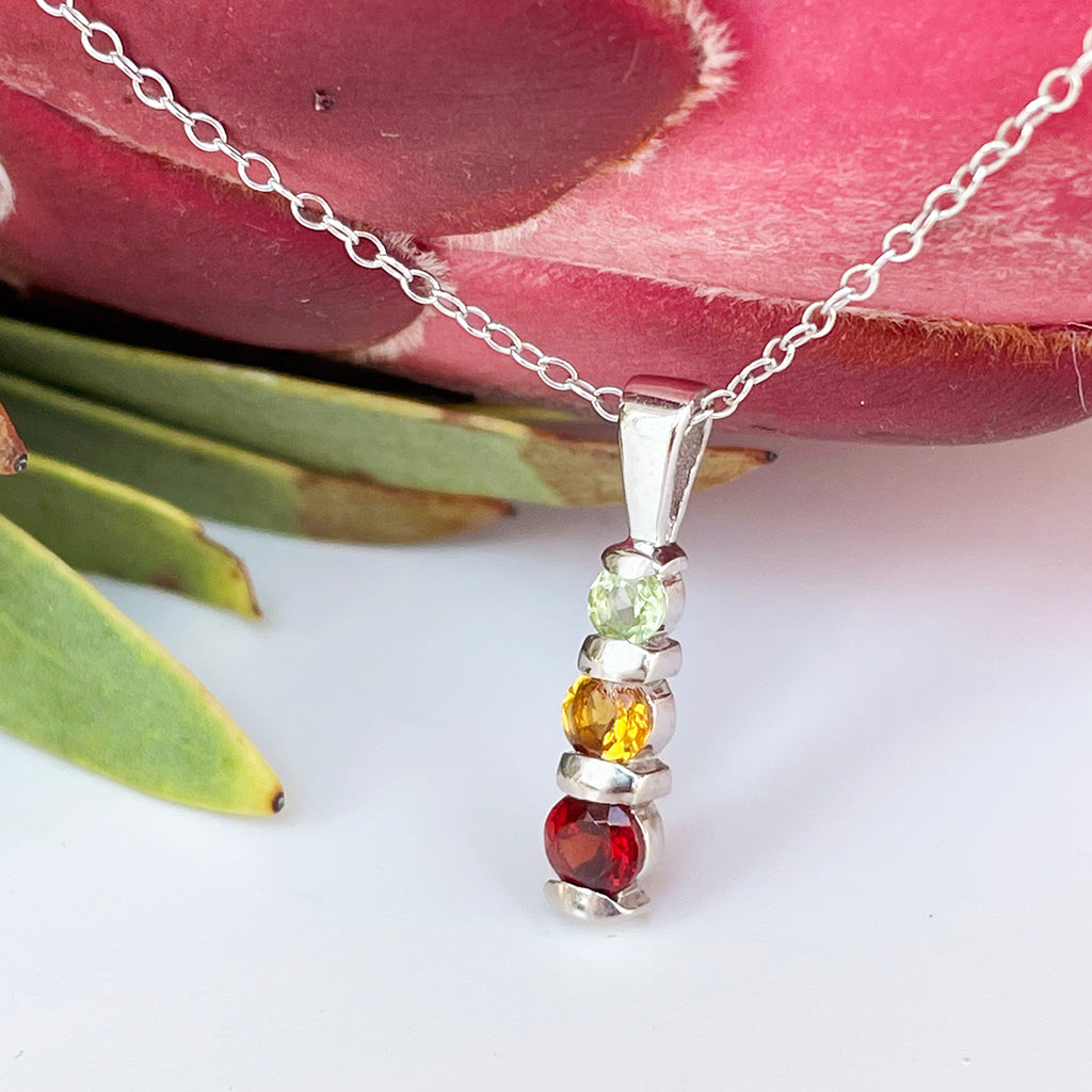 Silver Three Bar Pendant set with Garnet, Citrine, Peridot