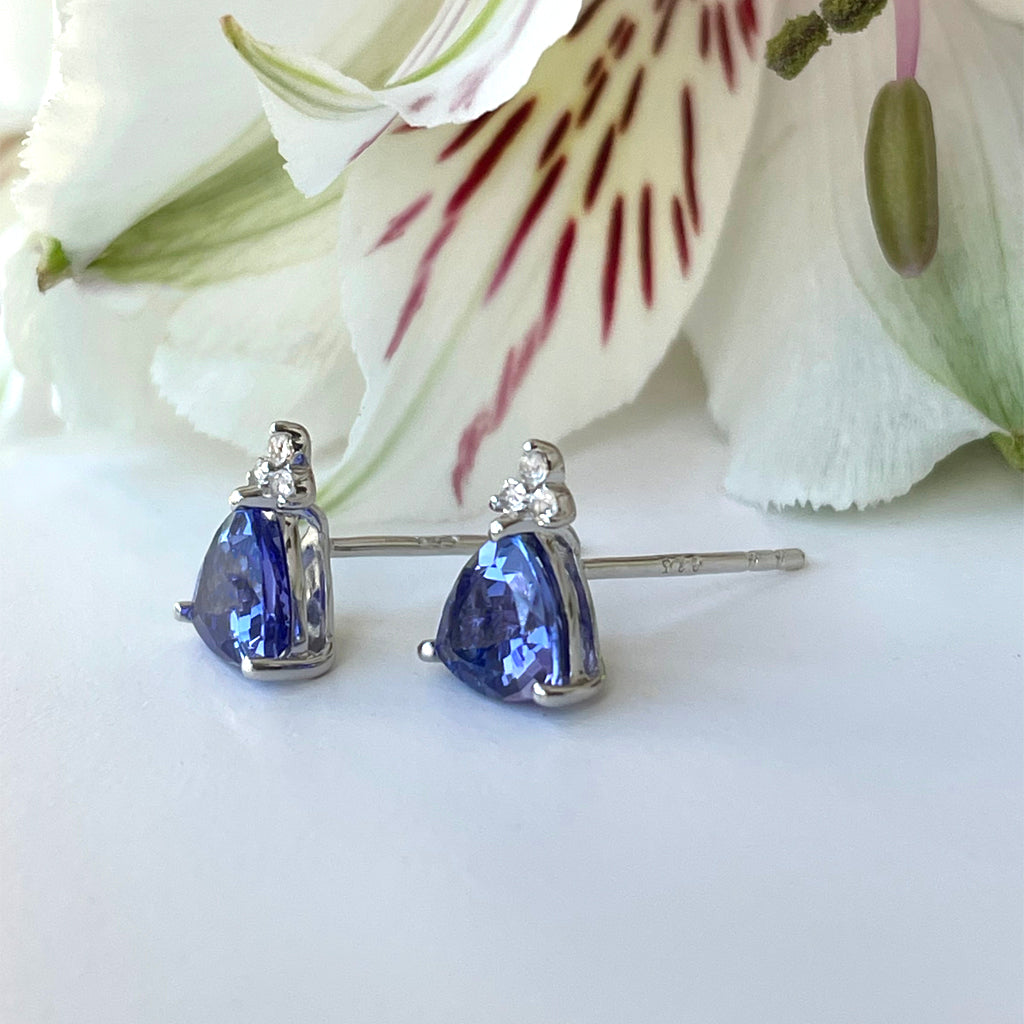Silver Trilliant Cut Tanzanite with Trilogy Silver Topaz Highlight Earrings