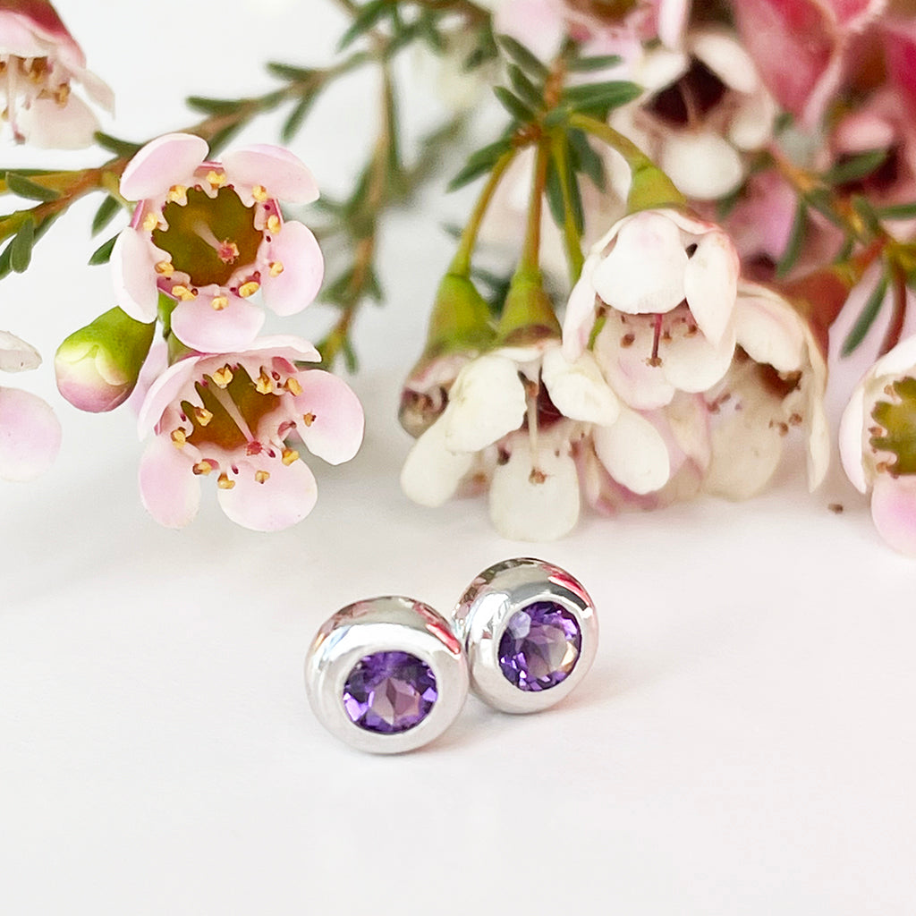 Silver Tube Set Amethyst Earrings