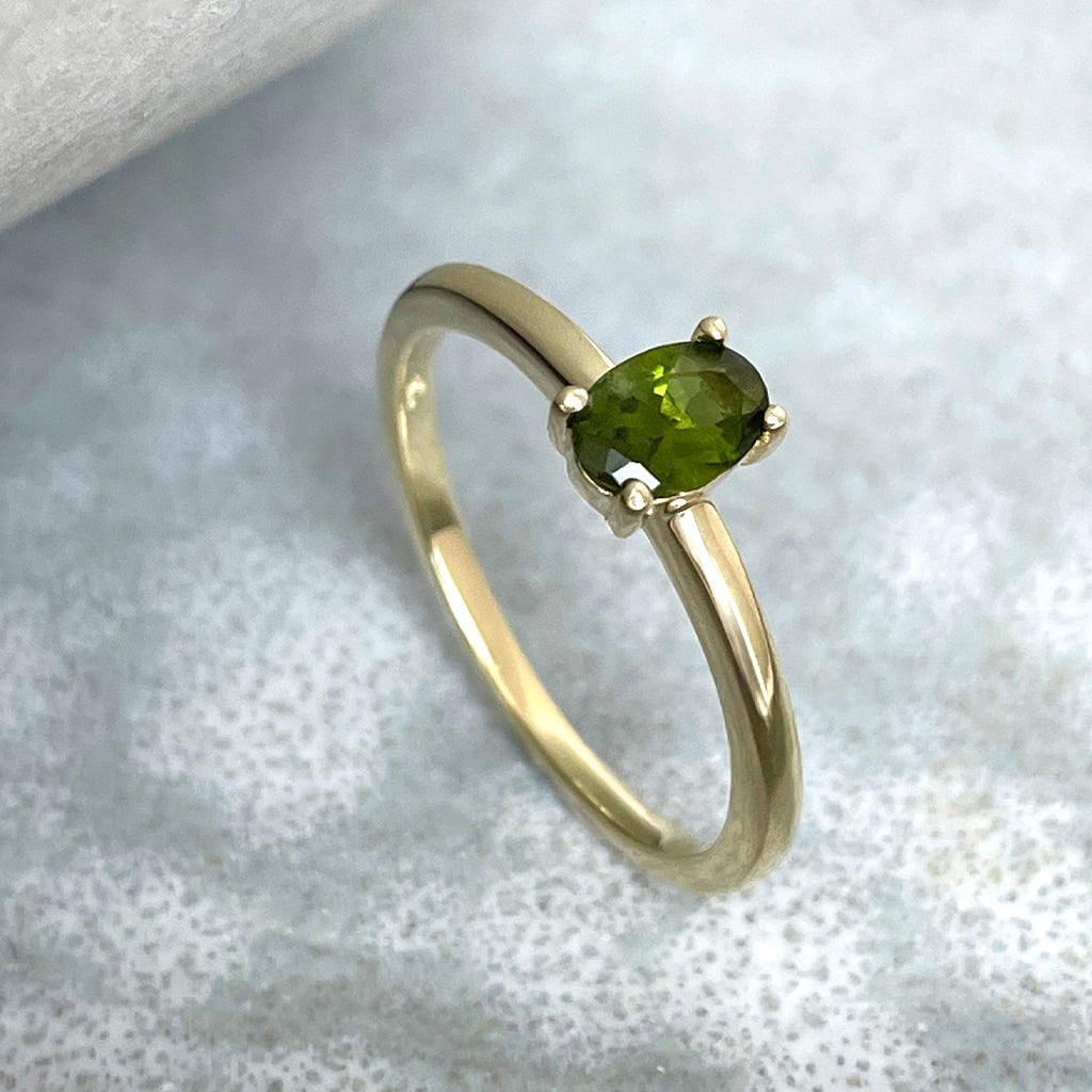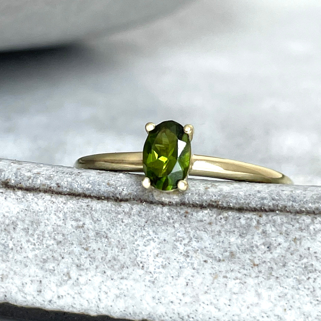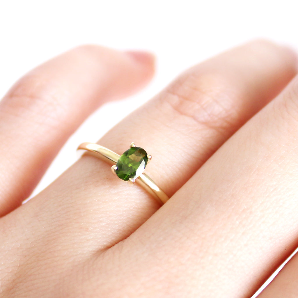 Simply Beautiful Solitaire Oval Cut Green Tourmaline Yellow Gold Ring