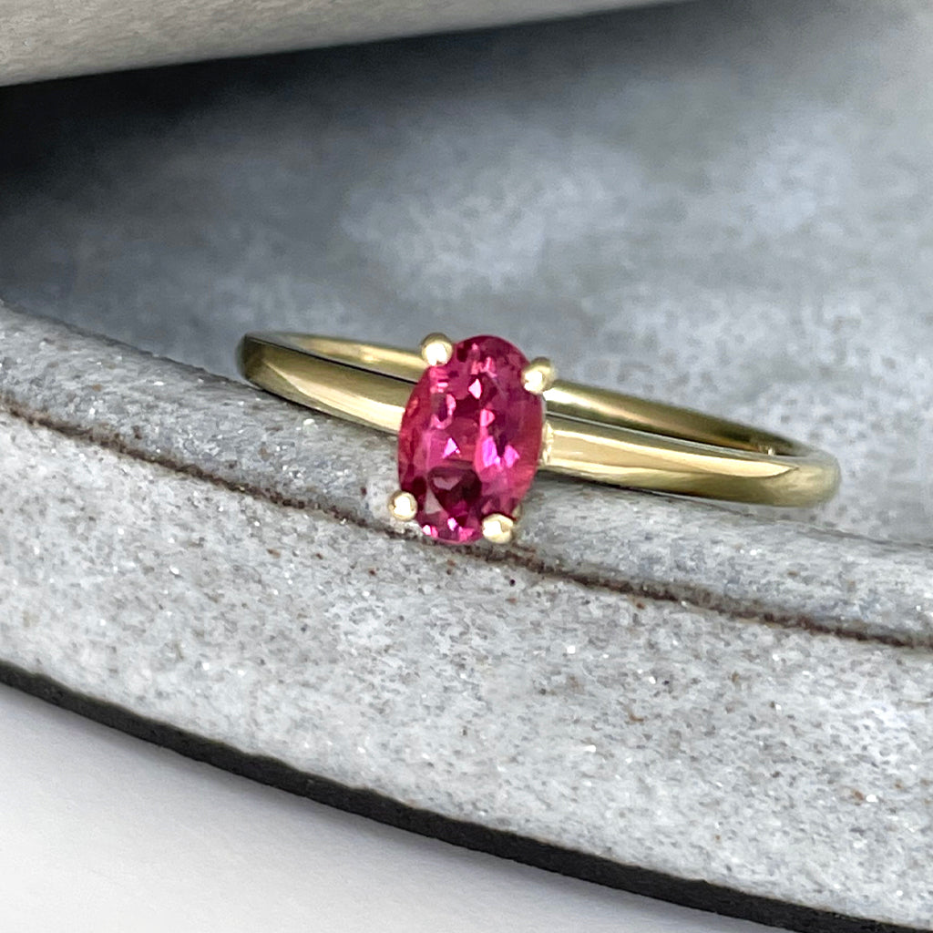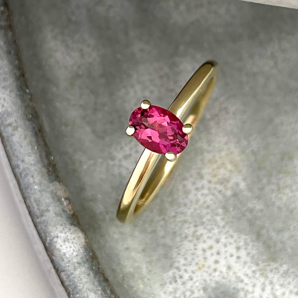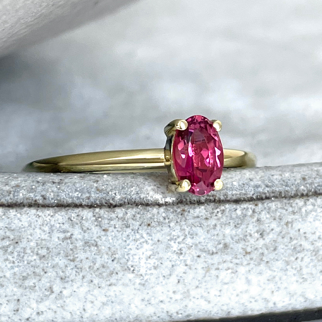 Simply Beautiful Solitaire Oval Cut Pink Tourmaline Yellow Gold Ring