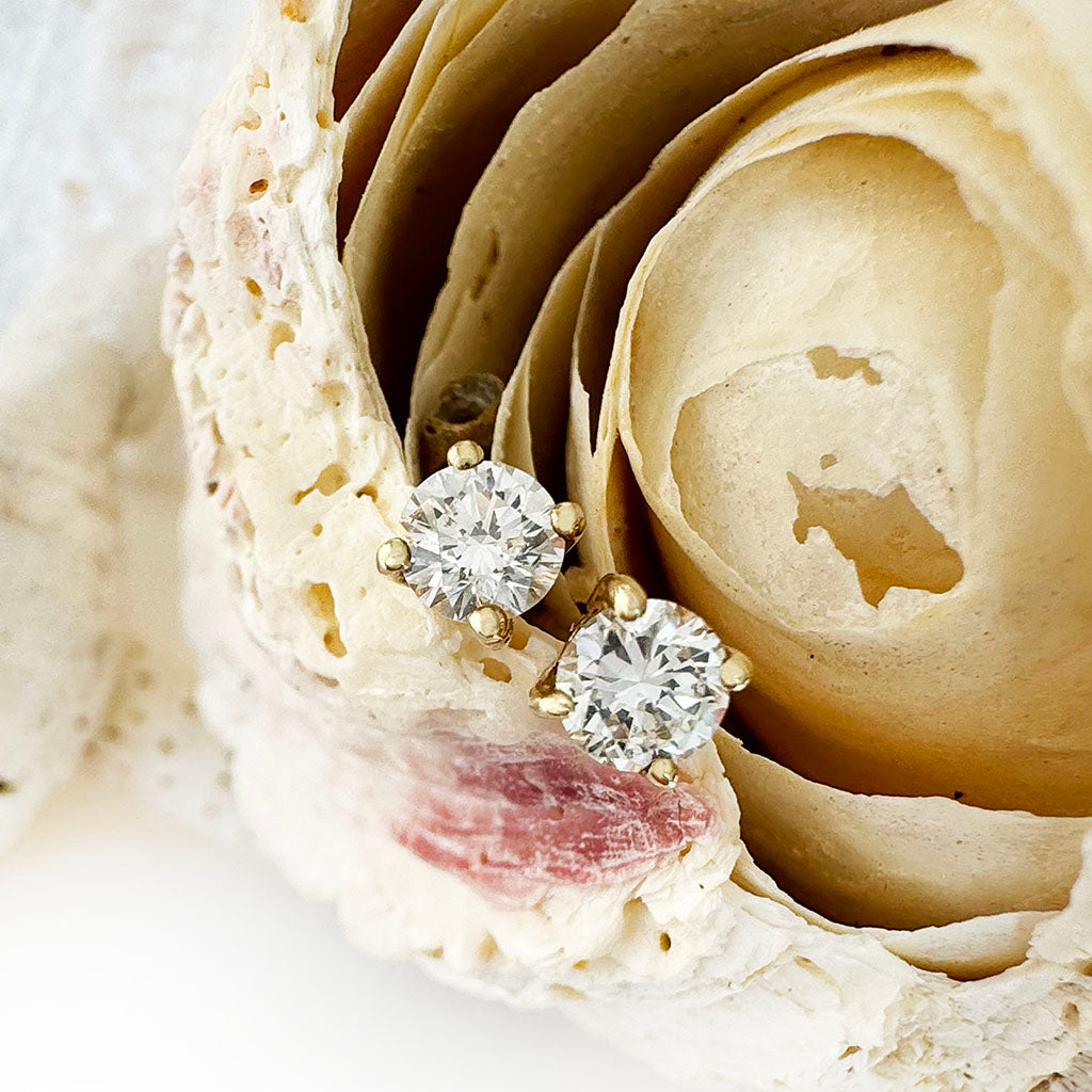 Elevate your elegance with a classic pair of exquisite white diamond stud earrings, meticulously crafted in nine-carat yellow gold. Each earring features a brilliant, faceted round diamond radiating timeless beauty and sophistication. The sparkling diamonds are securely set in a classic four-prong setting, ensuring they capture light from every angle.