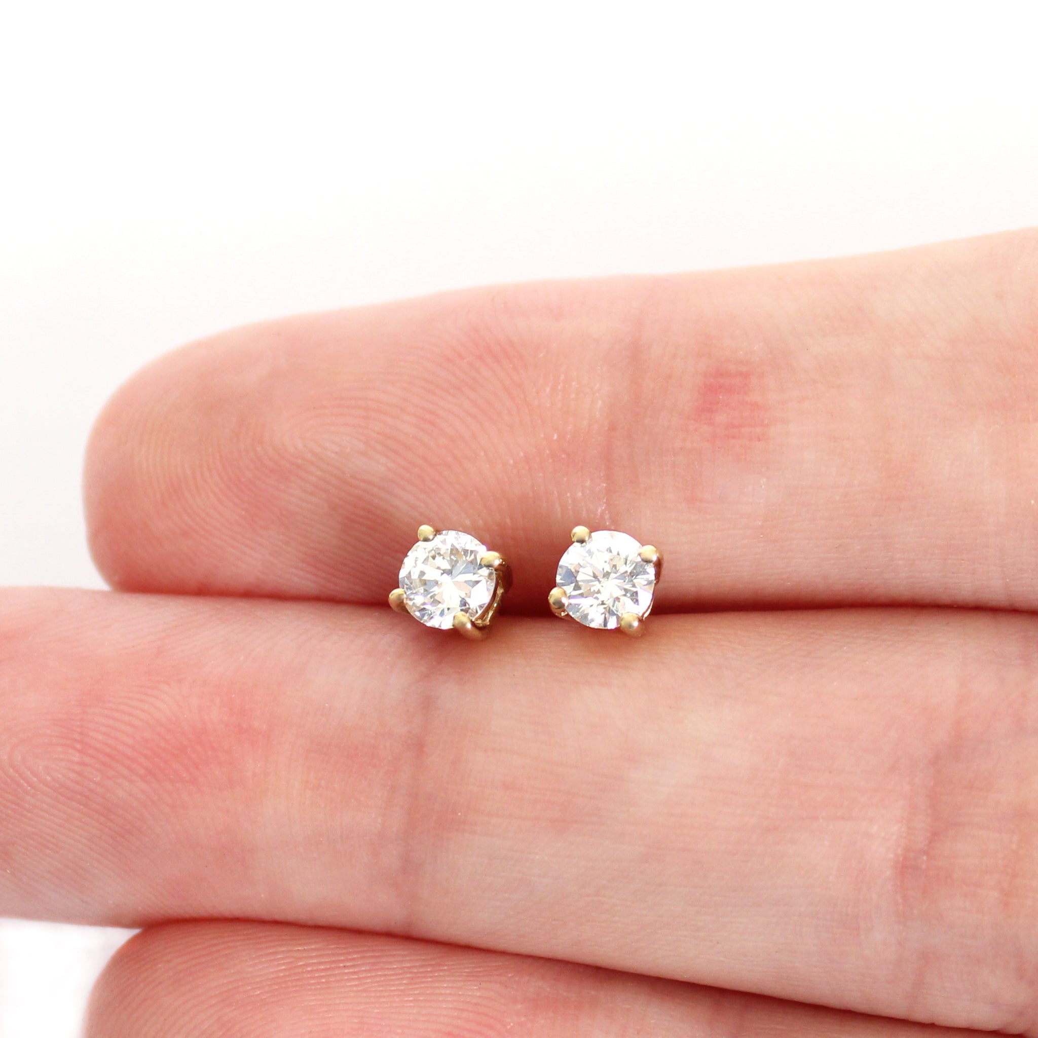 Simply Elegant White Diamond Yellow Gold Stud Earrings