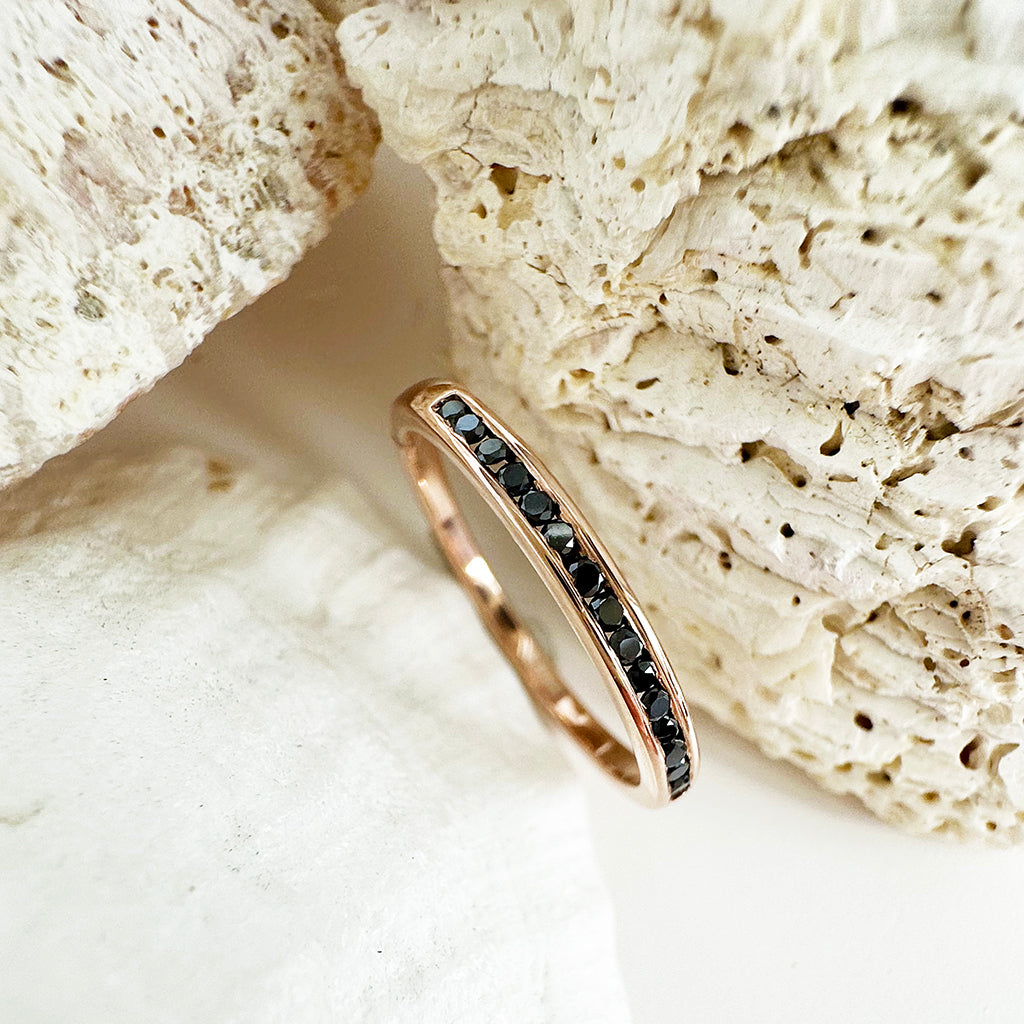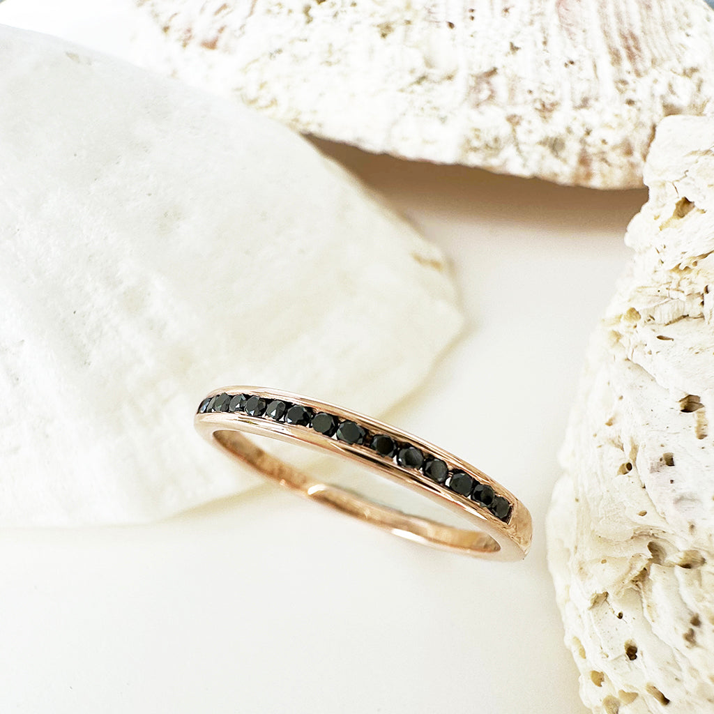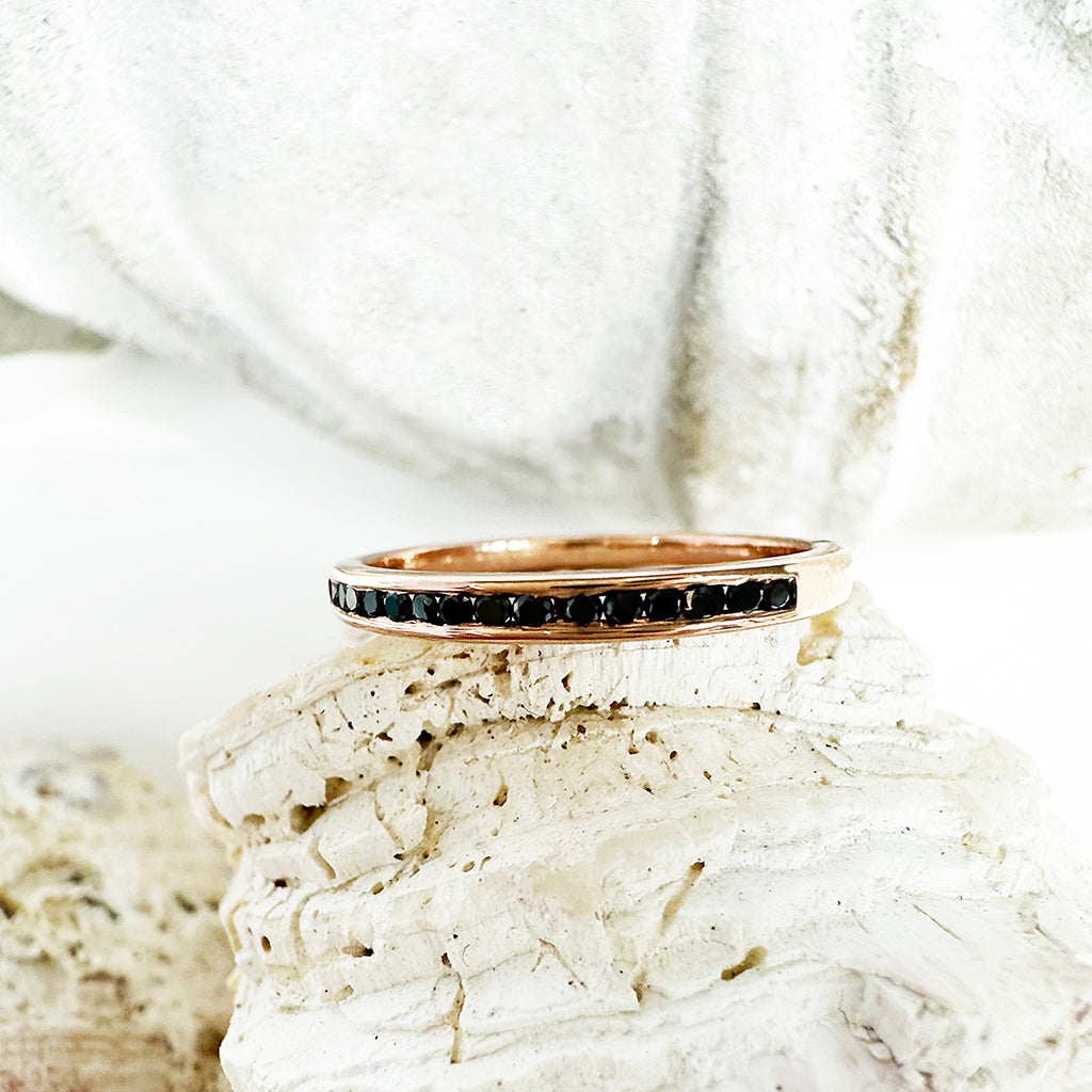 Sleek Channel Set Black Diamond Rose Gold Ring