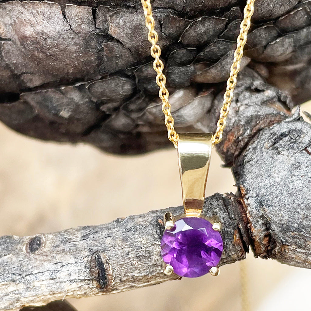 Solid Bale Round Amethyst Yellow Gold Pendant