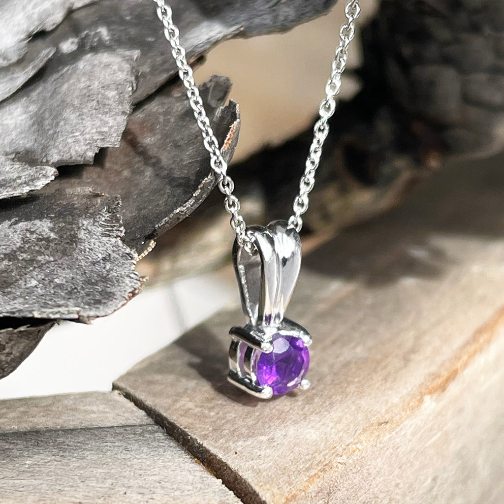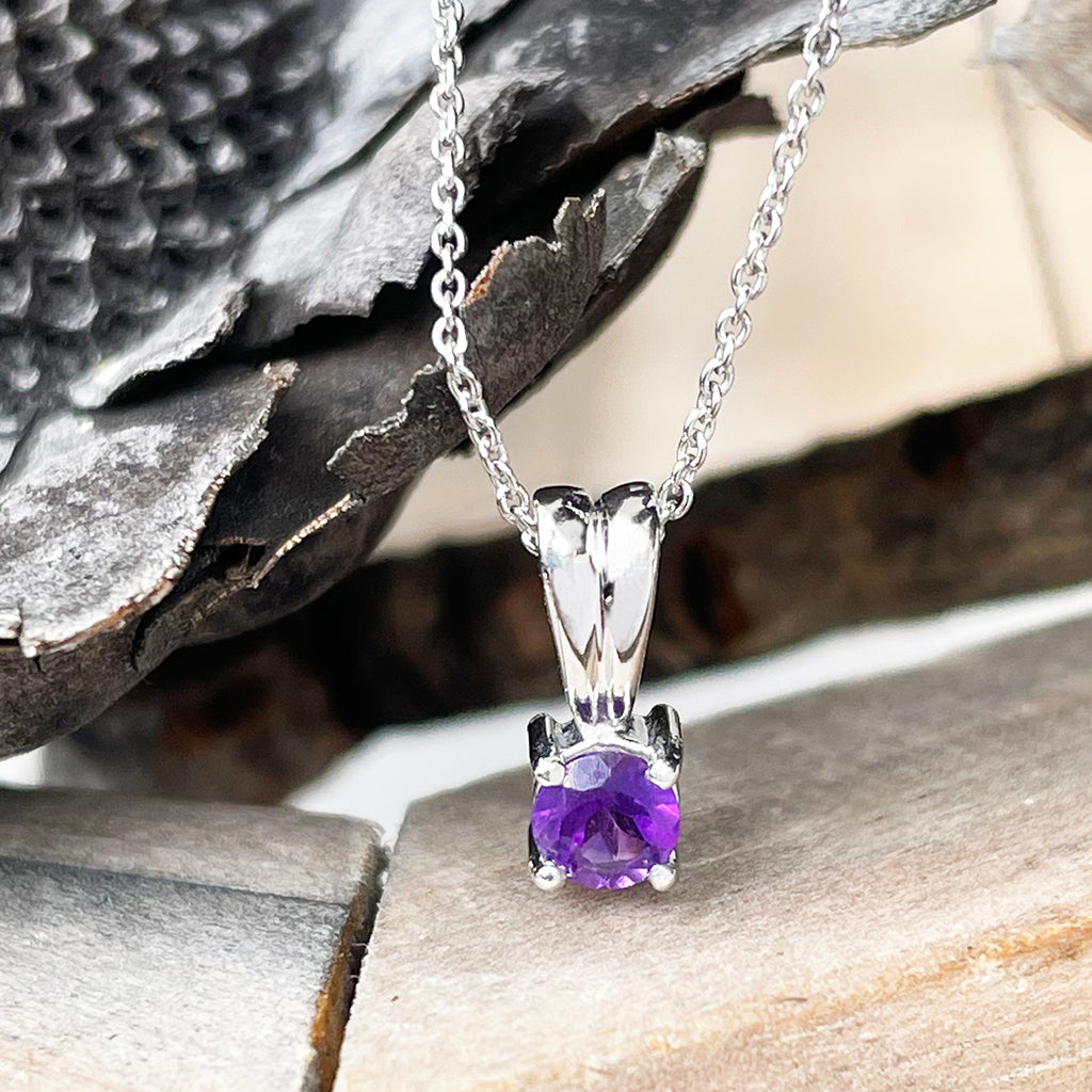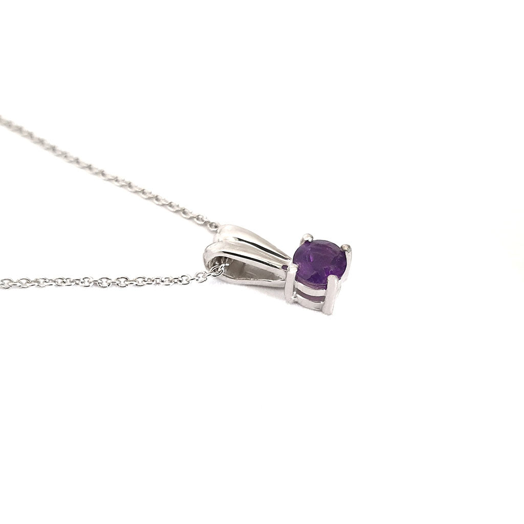 Petite Solid Grooved Bale Round Amethyst White Gold Pendant