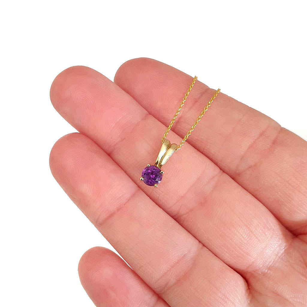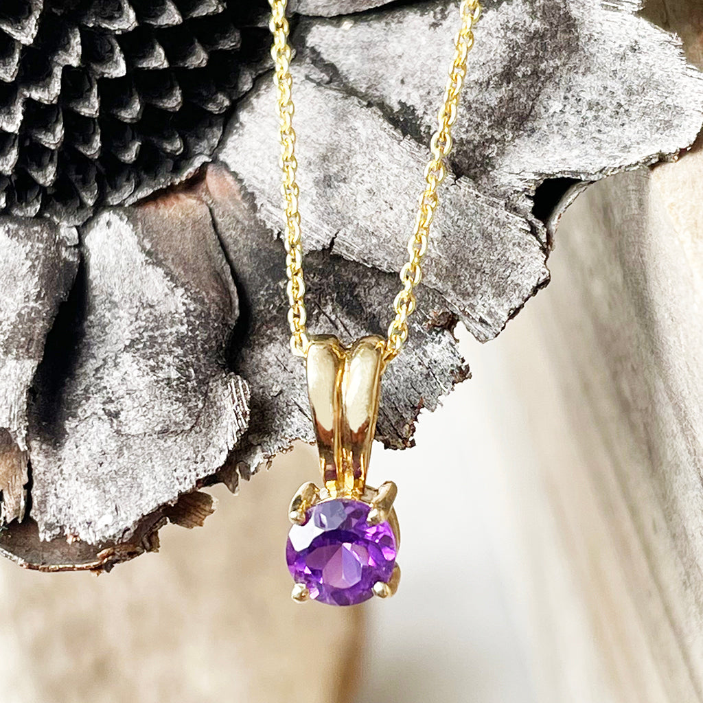Solid Grooved Bale Round Amethyst Yellow Gold Pendant