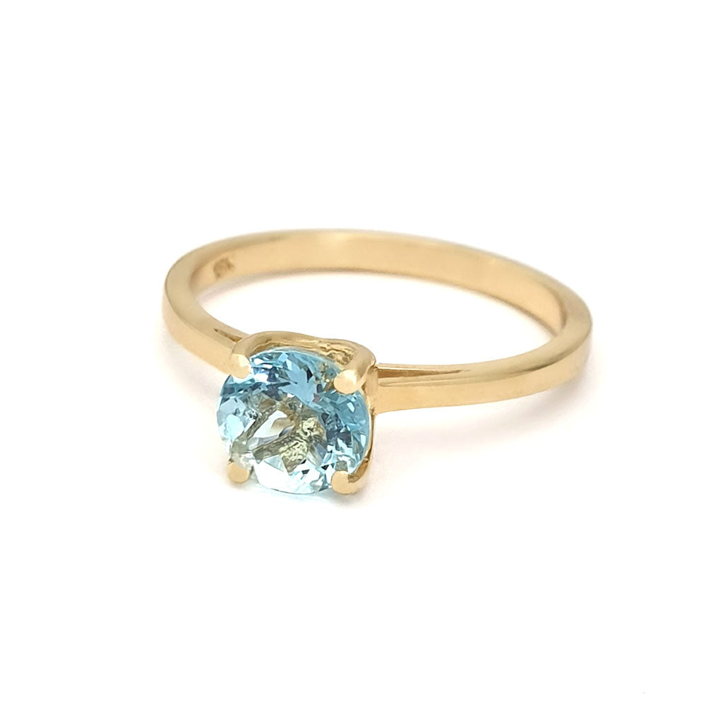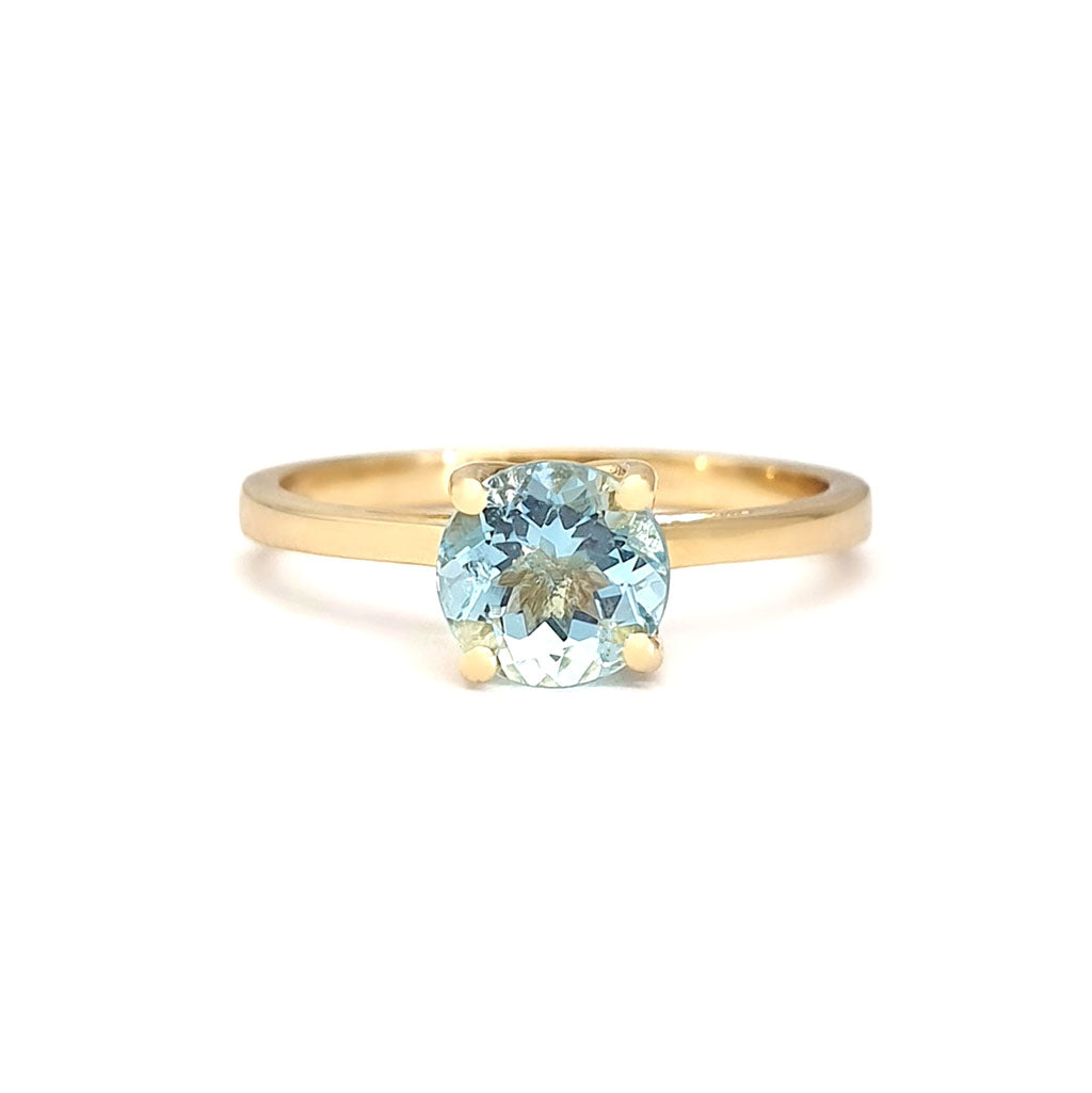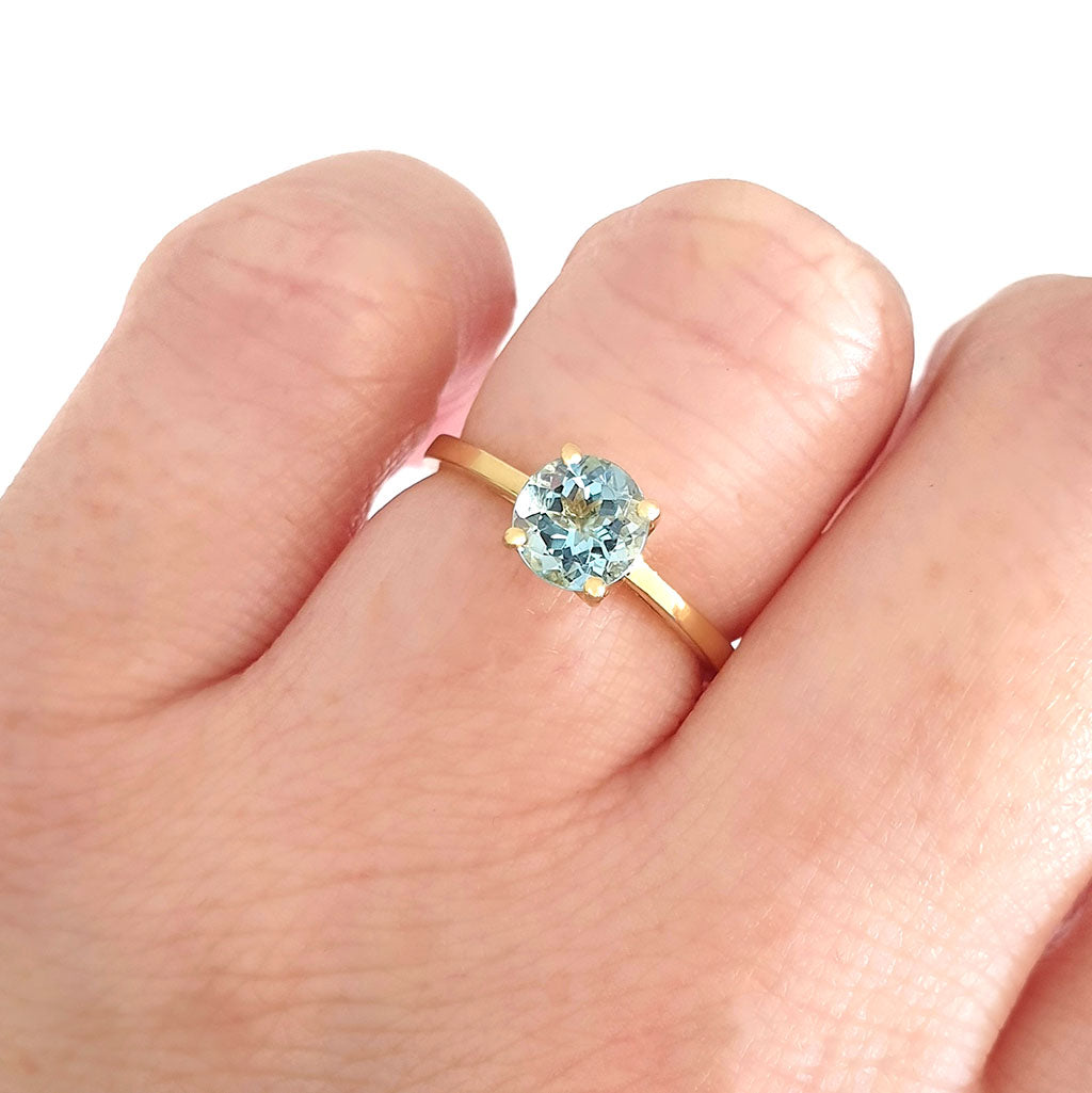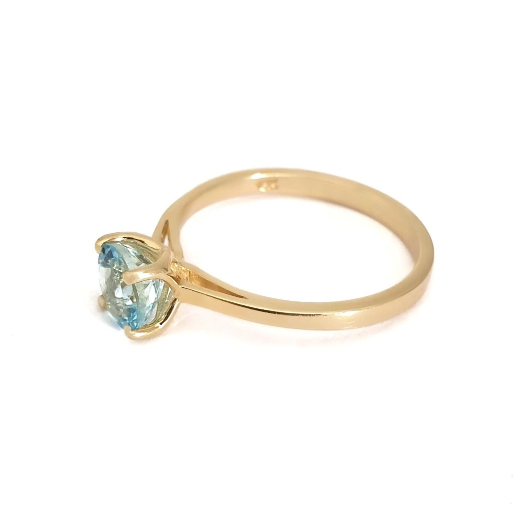 Gorgeous Solitaire Four Claw Aquamarine Yellow Gold Ring