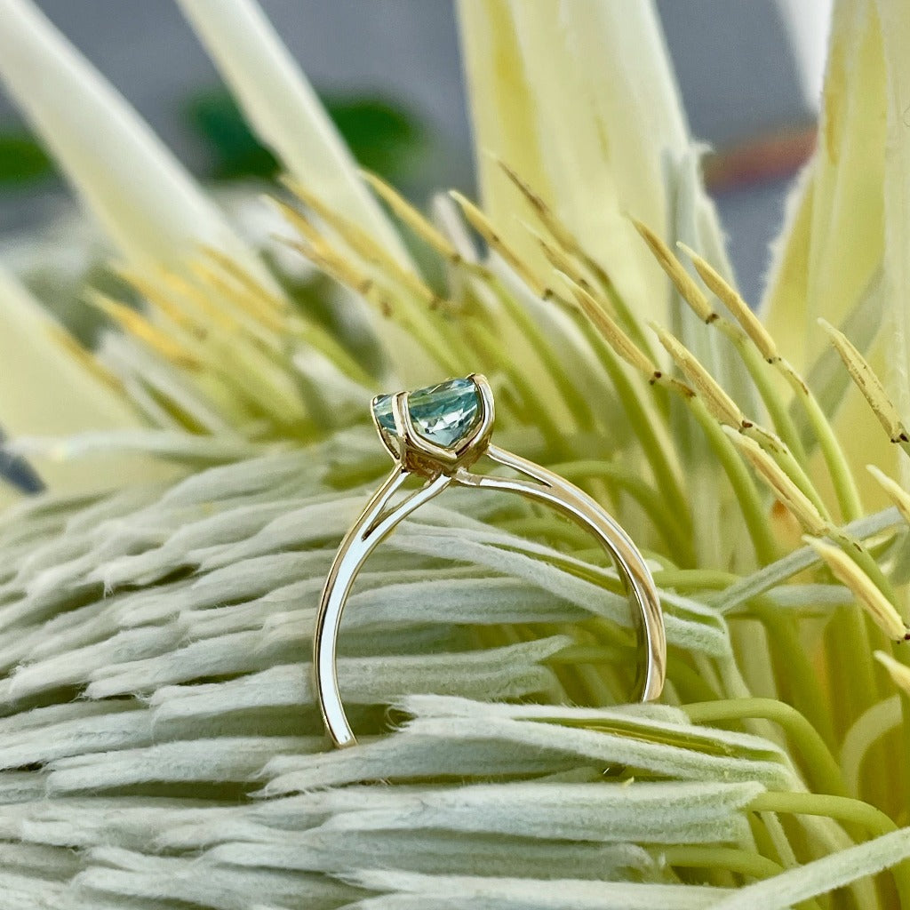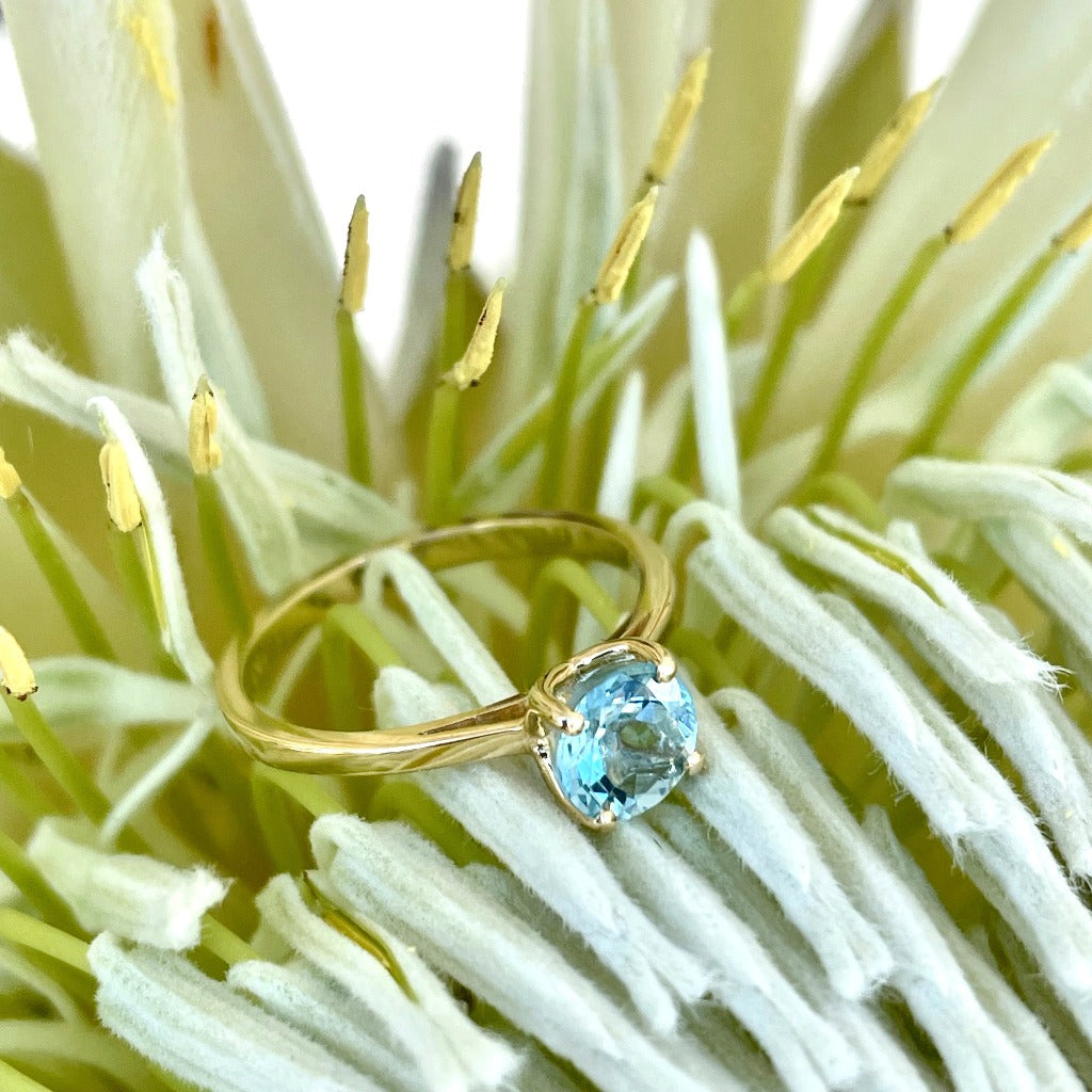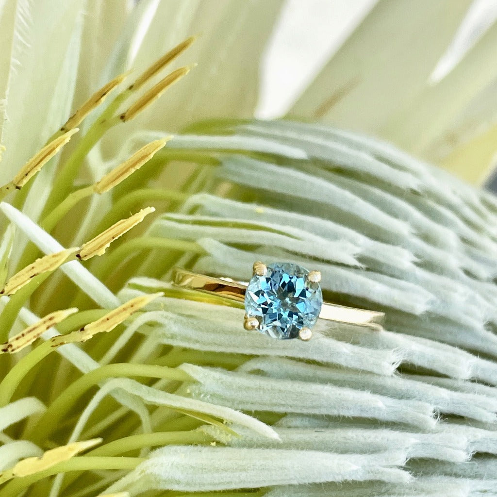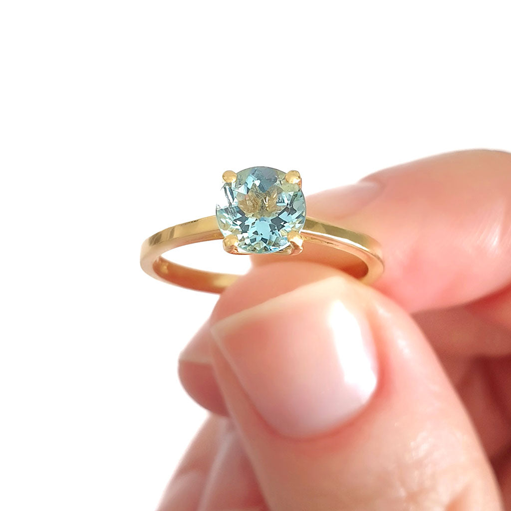 Gorgeous Solitaire Four Claw Aquamarine Yellow Gold Ring