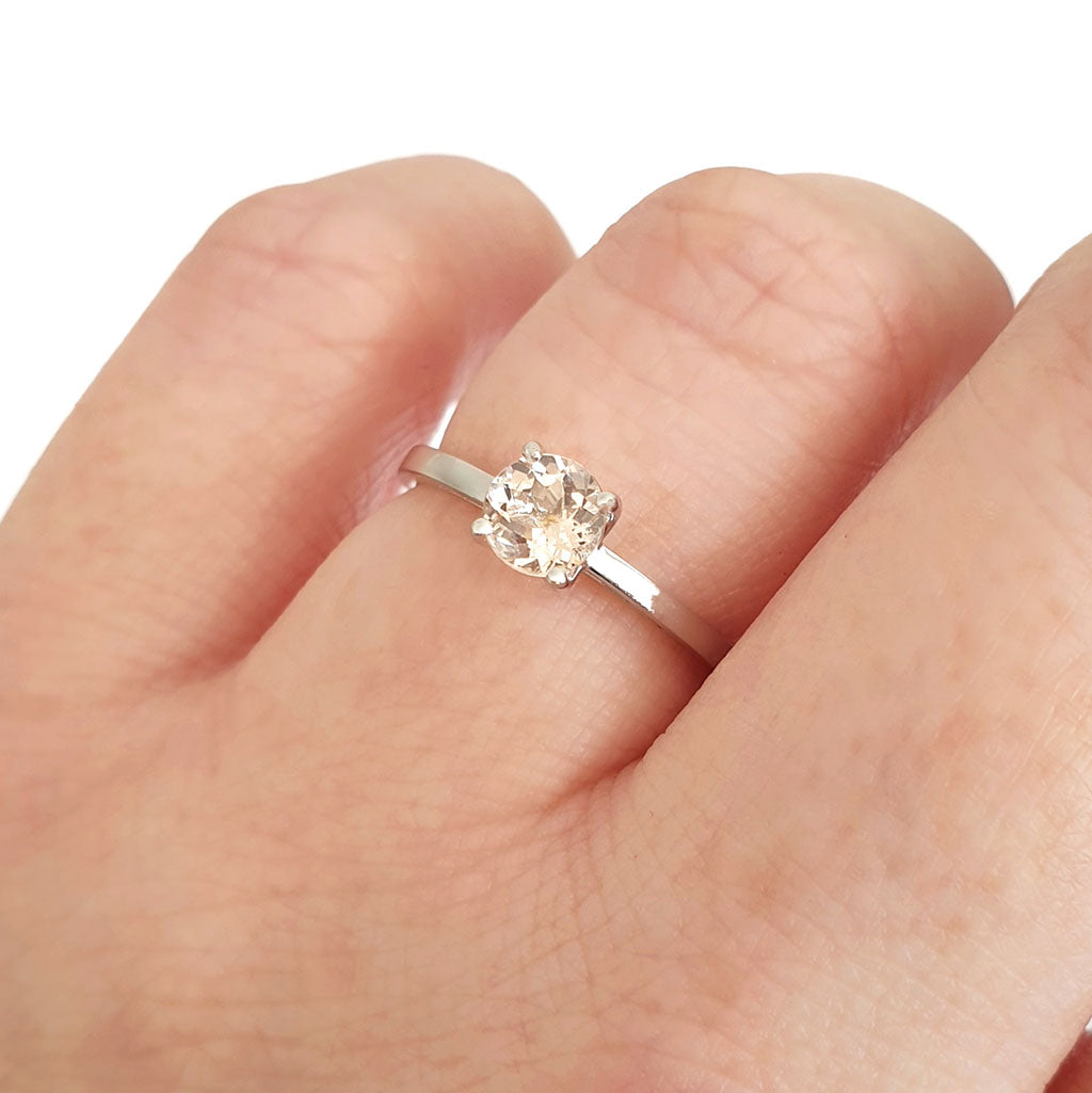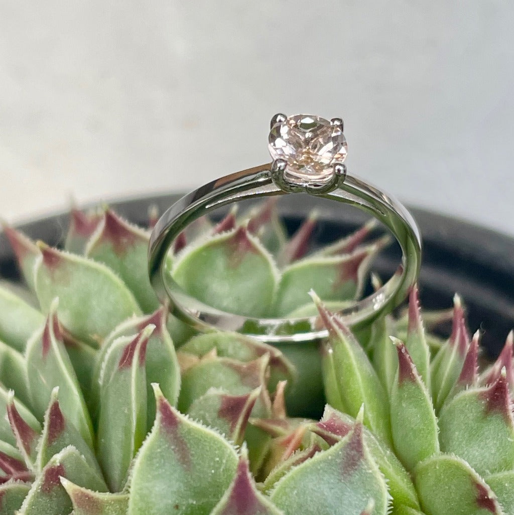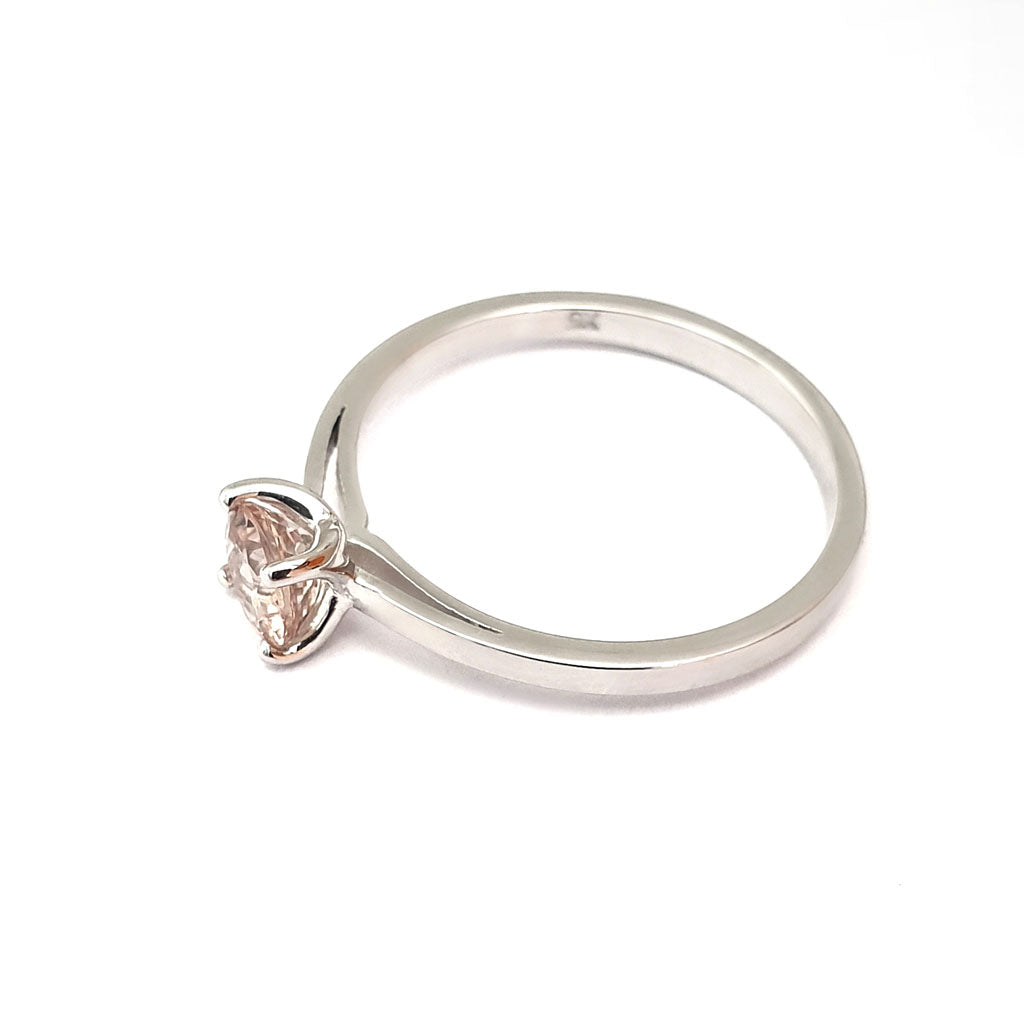 Delicate Solitaire Morganite Four Claw White Gold Ring