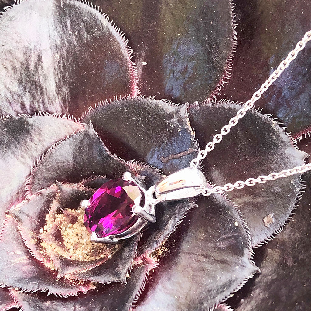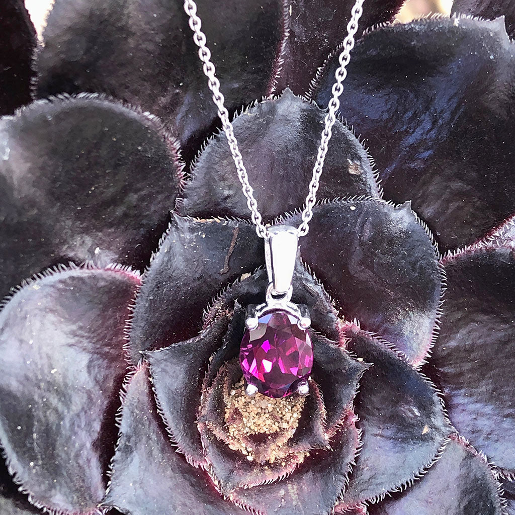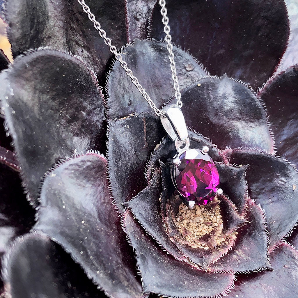 Solitaire Four Claw Oval Grape Garnet White Gold Pendant