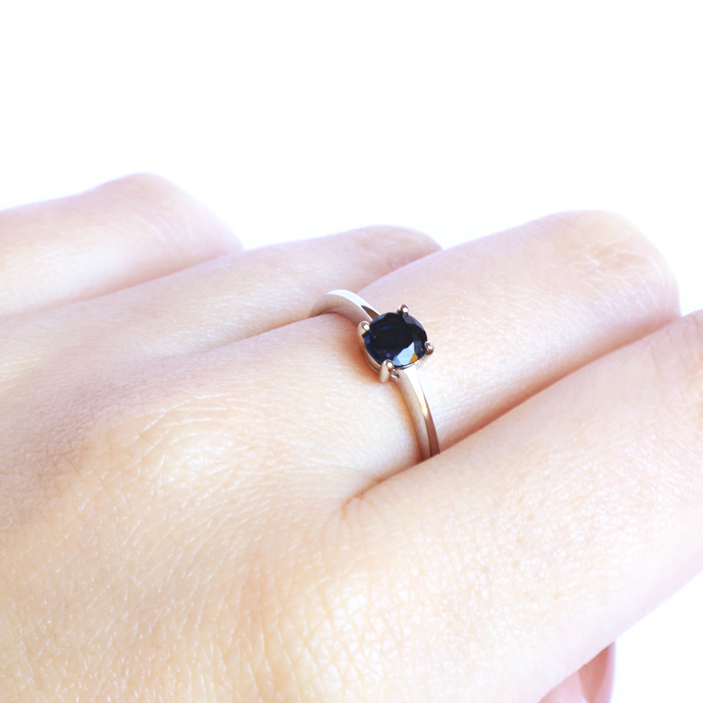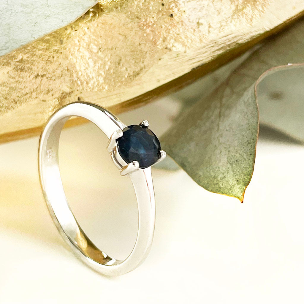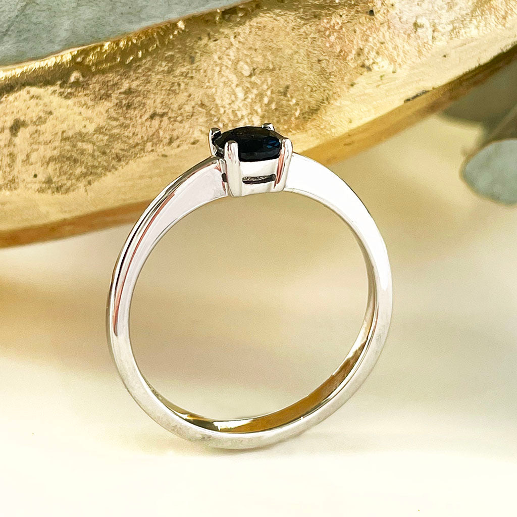 Solitaire Four Claw Round Cut Sapphire White Gold band Ring