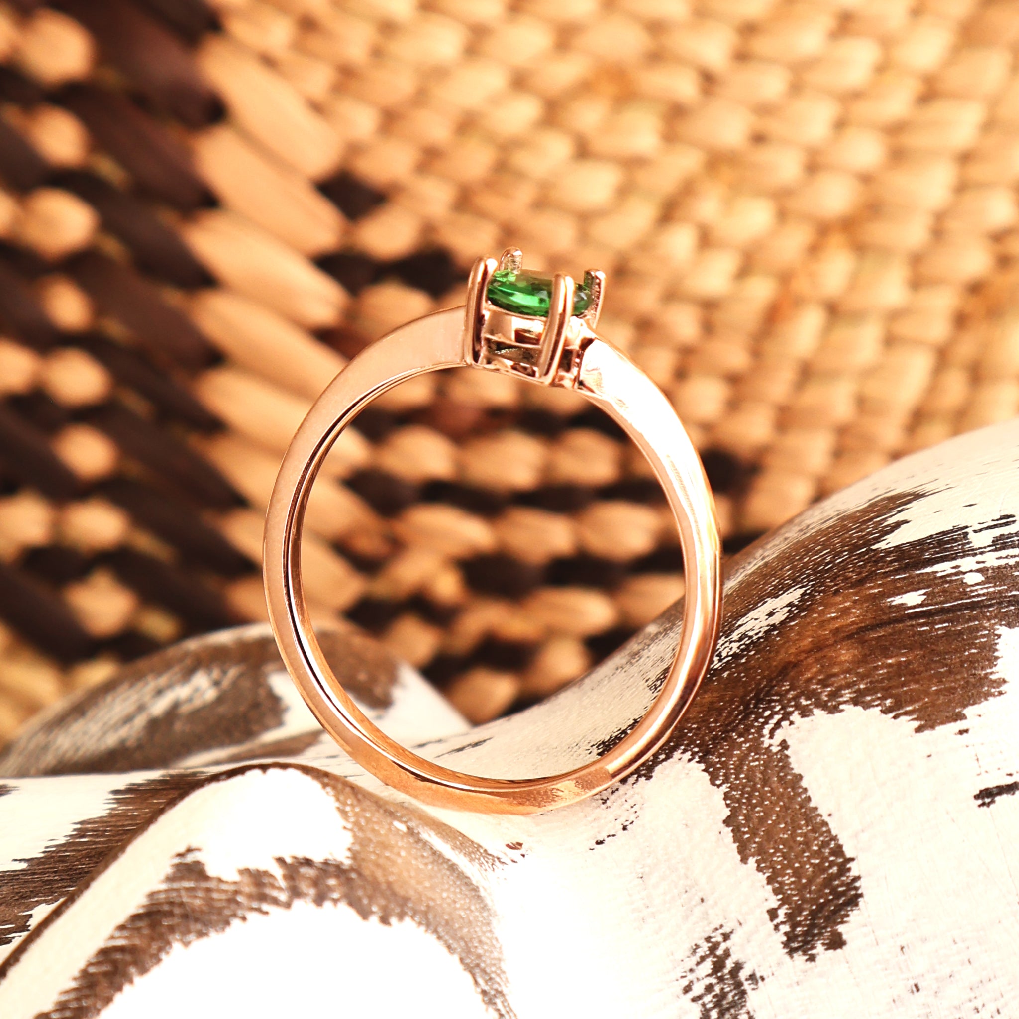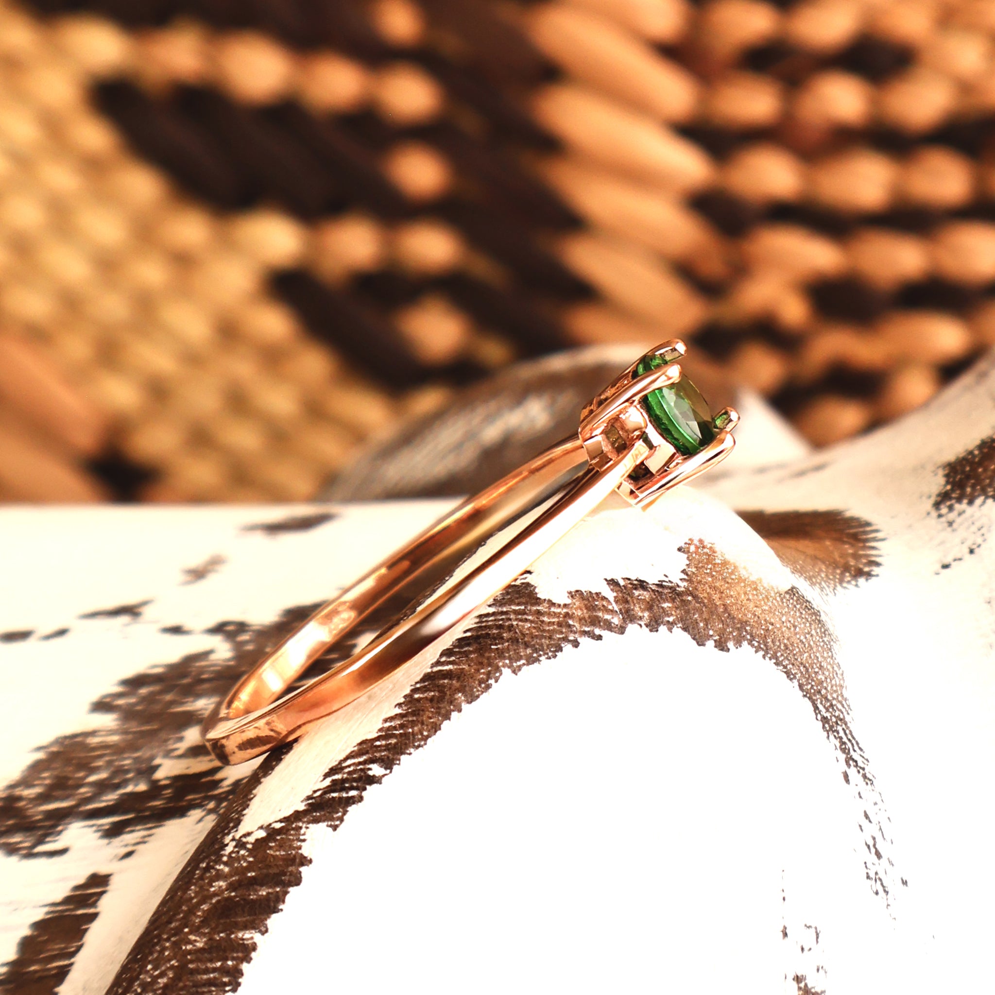 Solitaire Four Claw Round Cut Tsavorite Rose Gold Band Ring