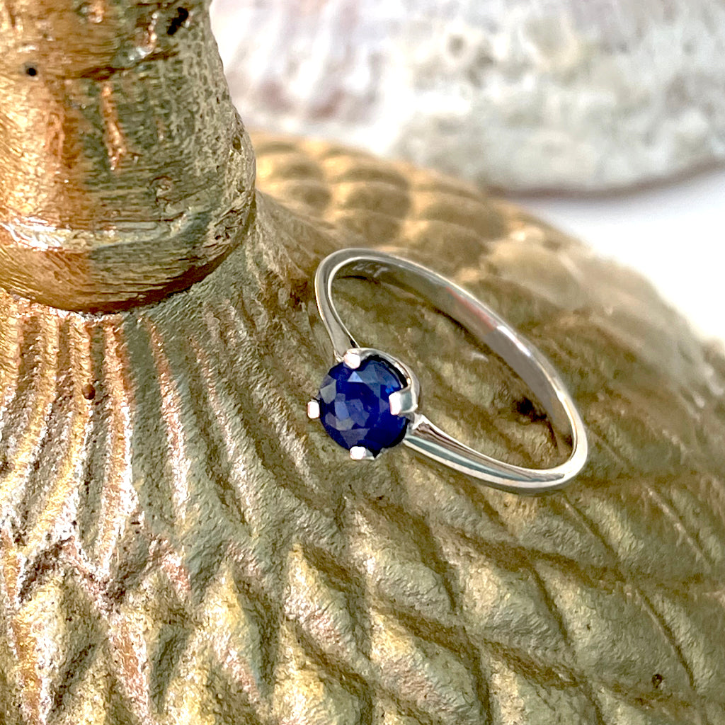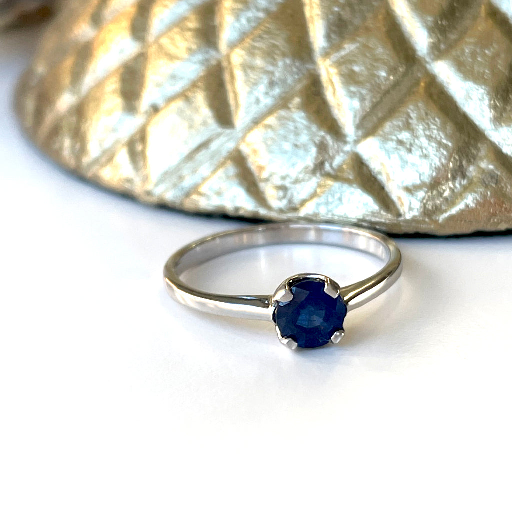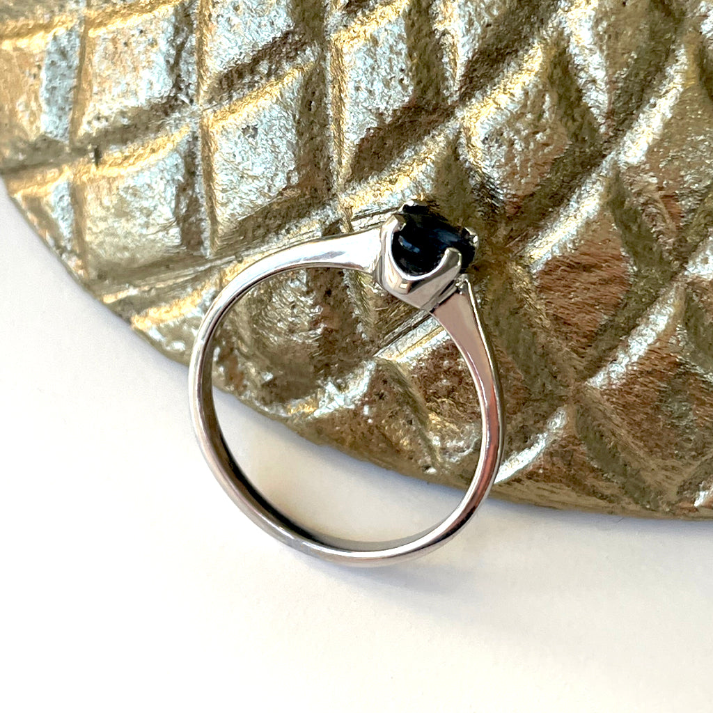 Solitaire Four Claw White Gold Blue Sapphire Ring