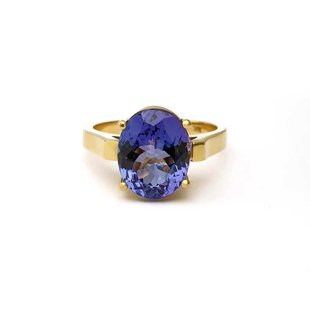 Handcrafted Oval-Cut Tanzanite Solitaire Ring in Yellow Gold