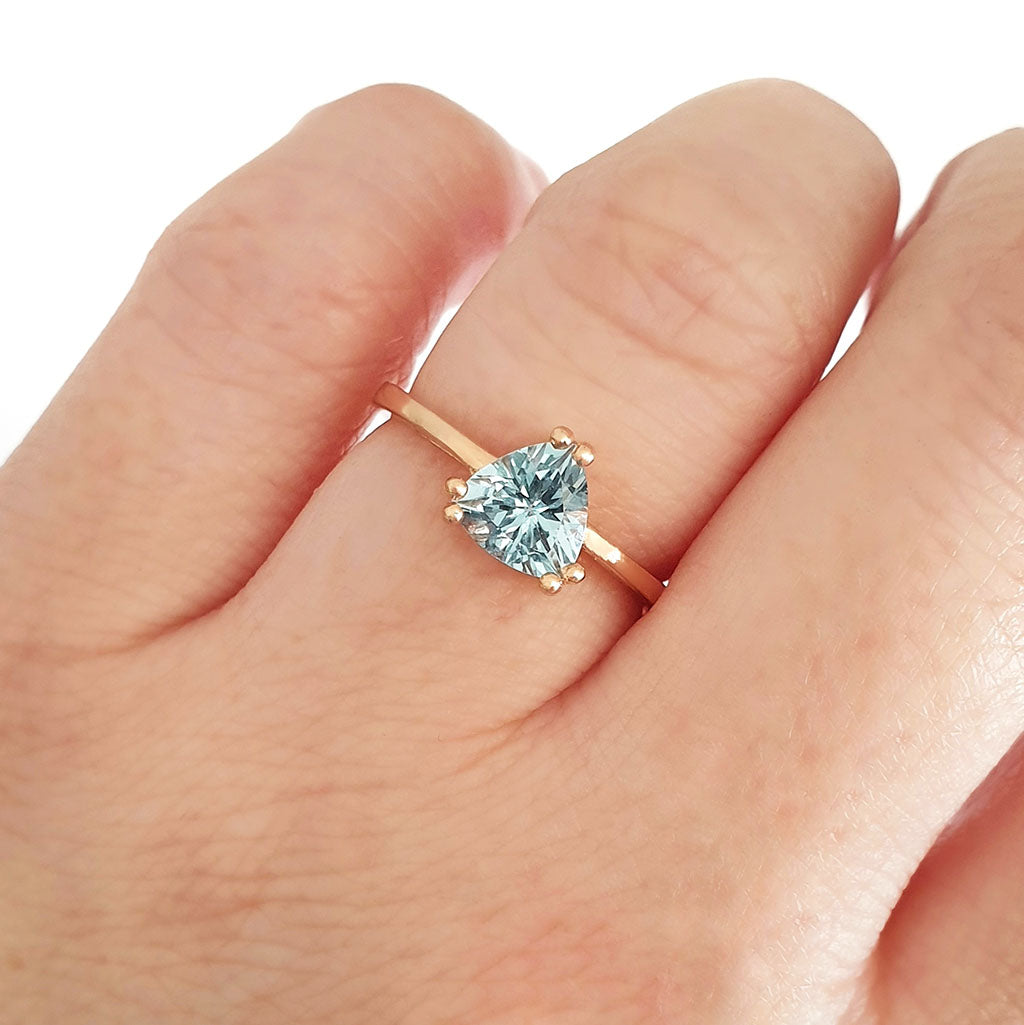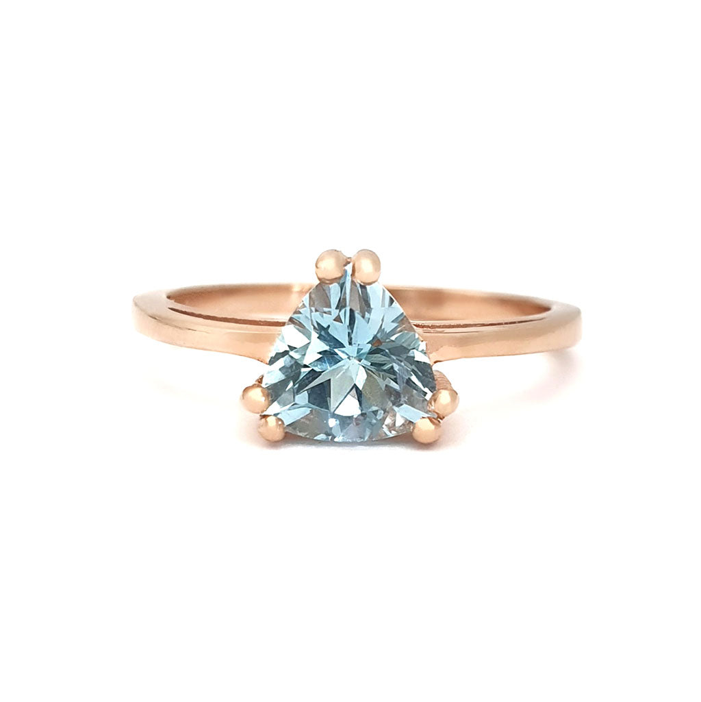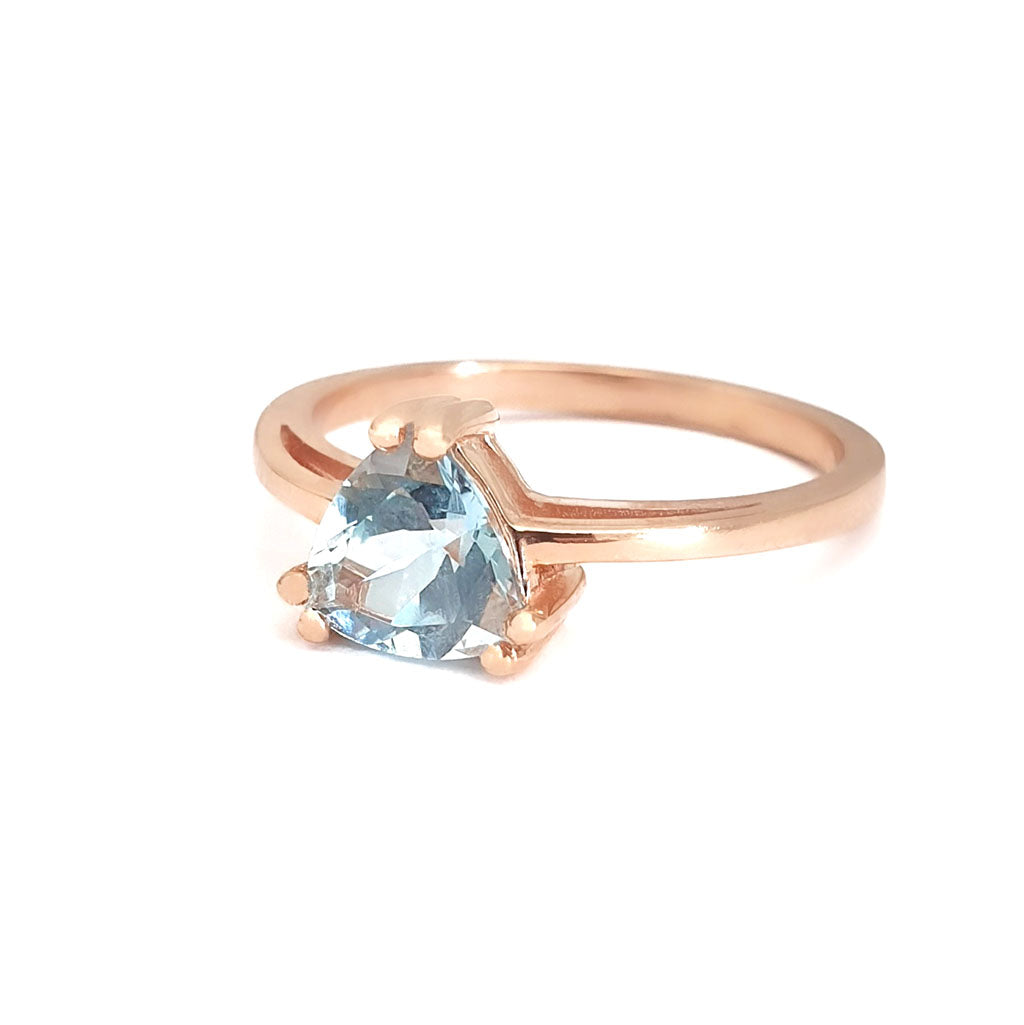 Stunning Rose Gold Solitaire Triliant Cut Aquamarine Ring