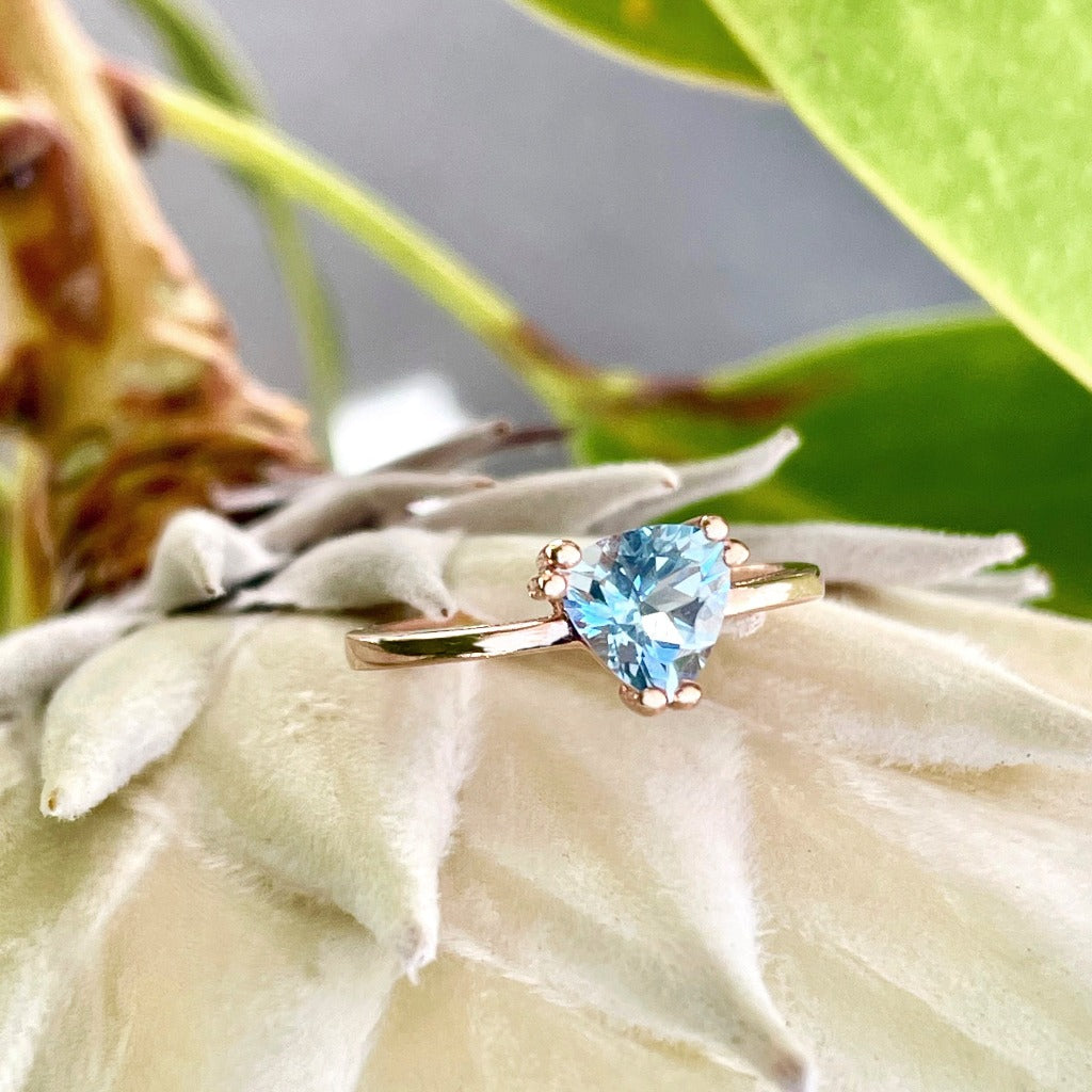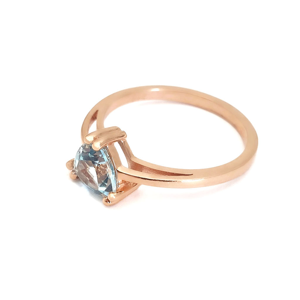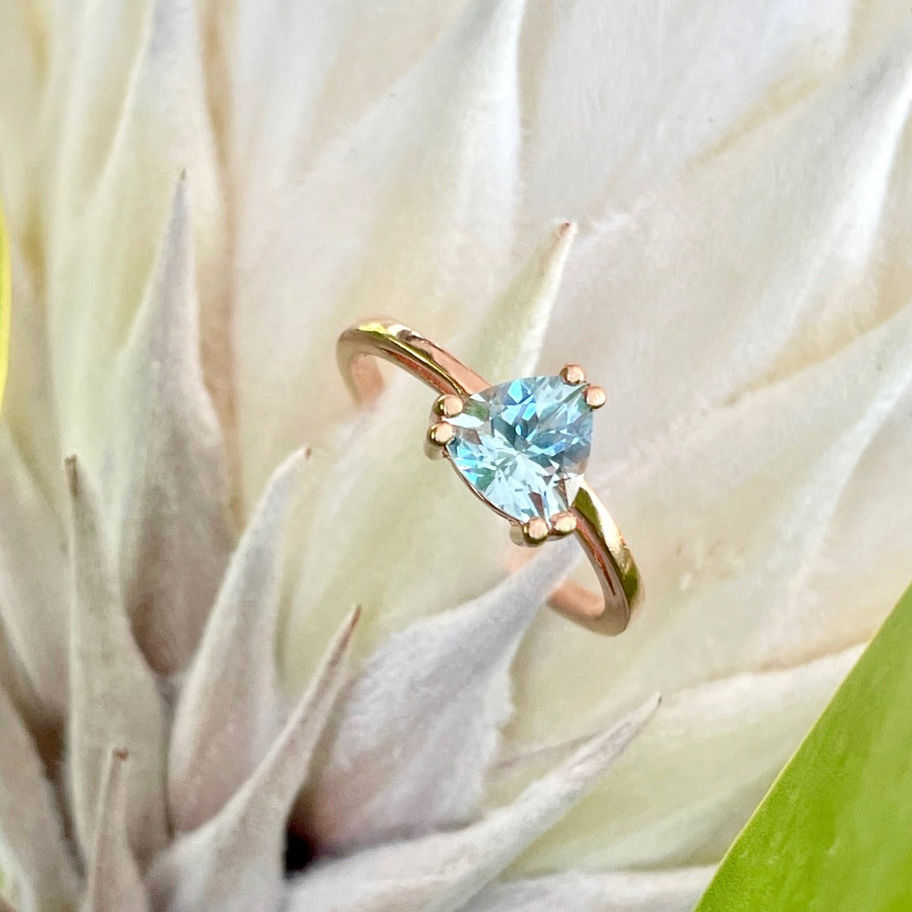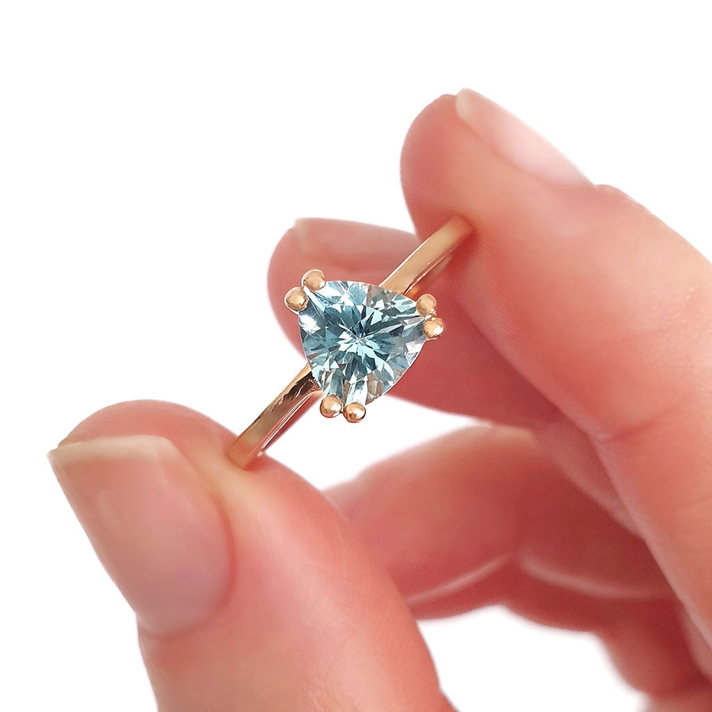 Stunning Rose Gold Solitaire Triliant Cut Aquamarine Ring