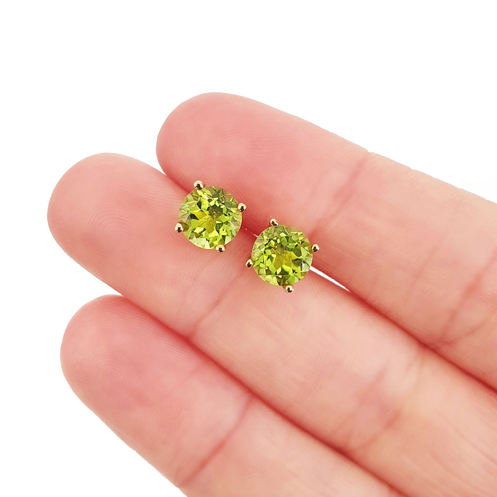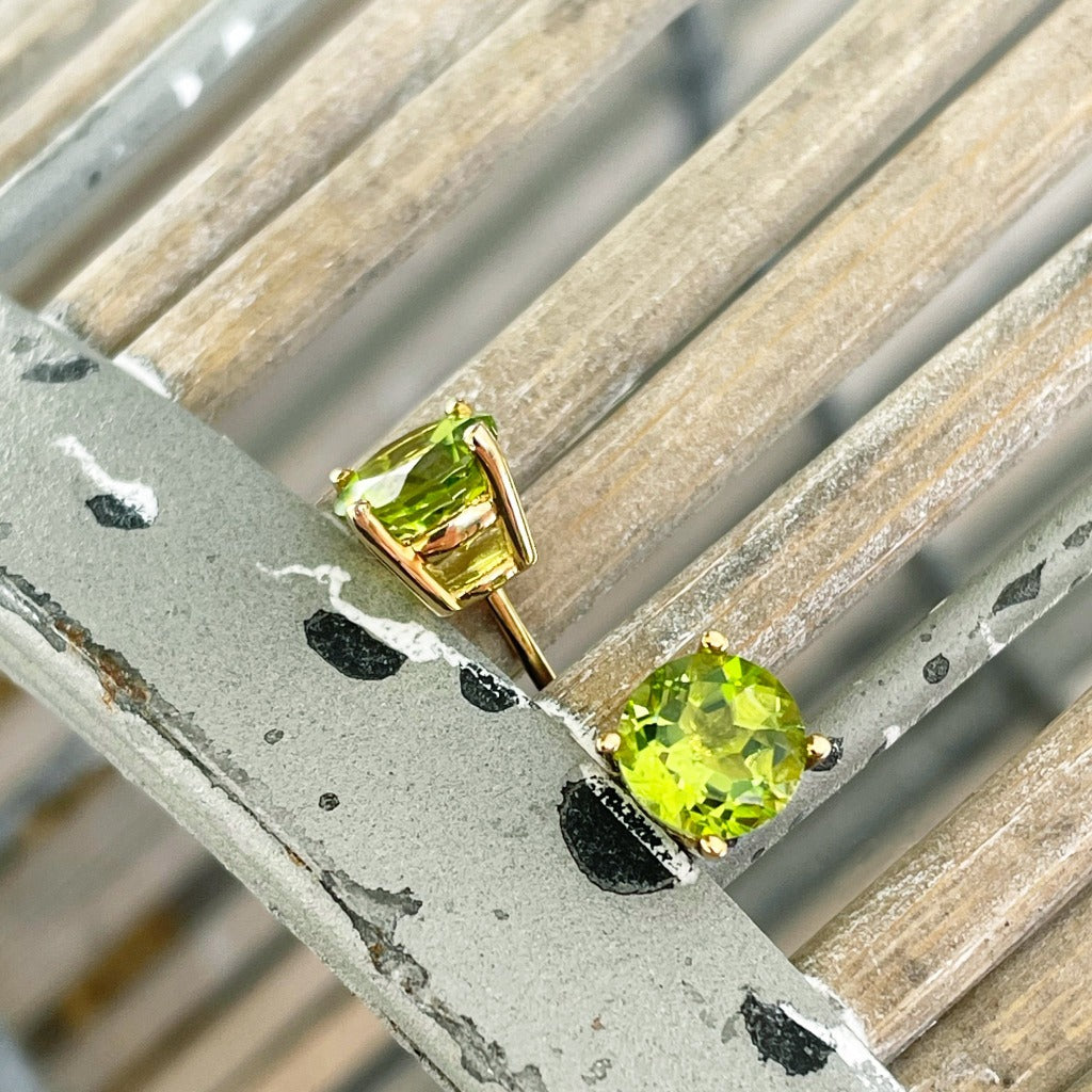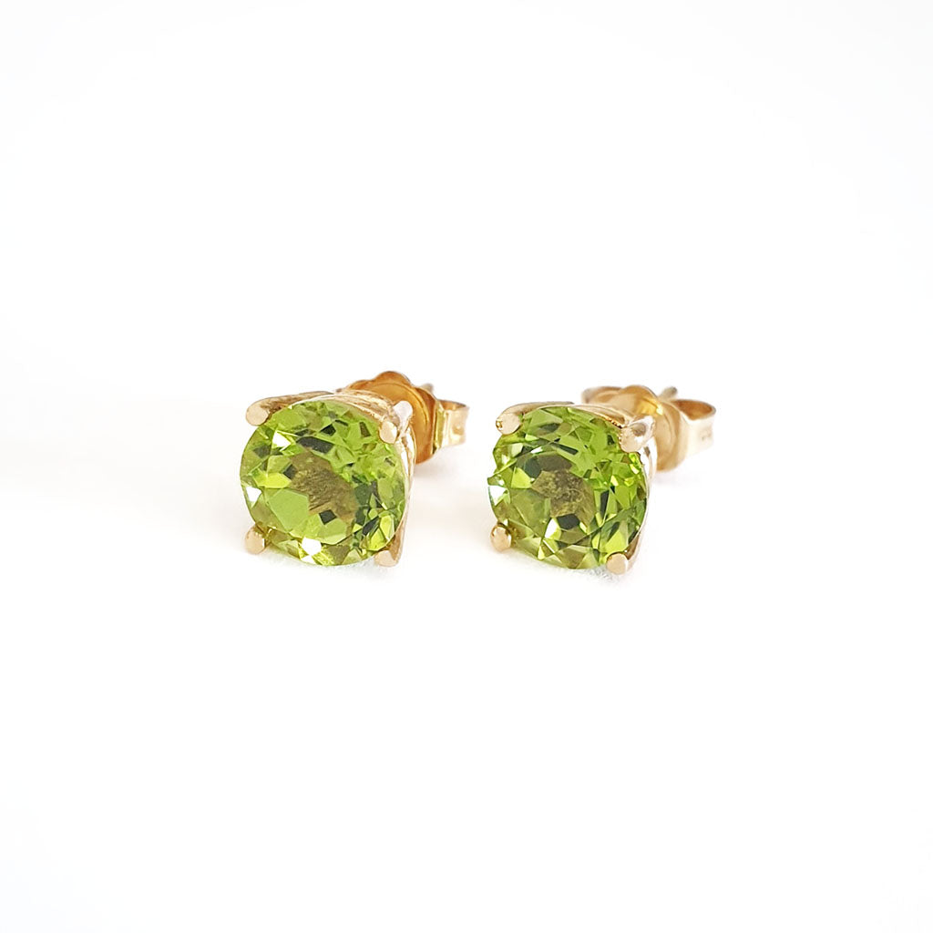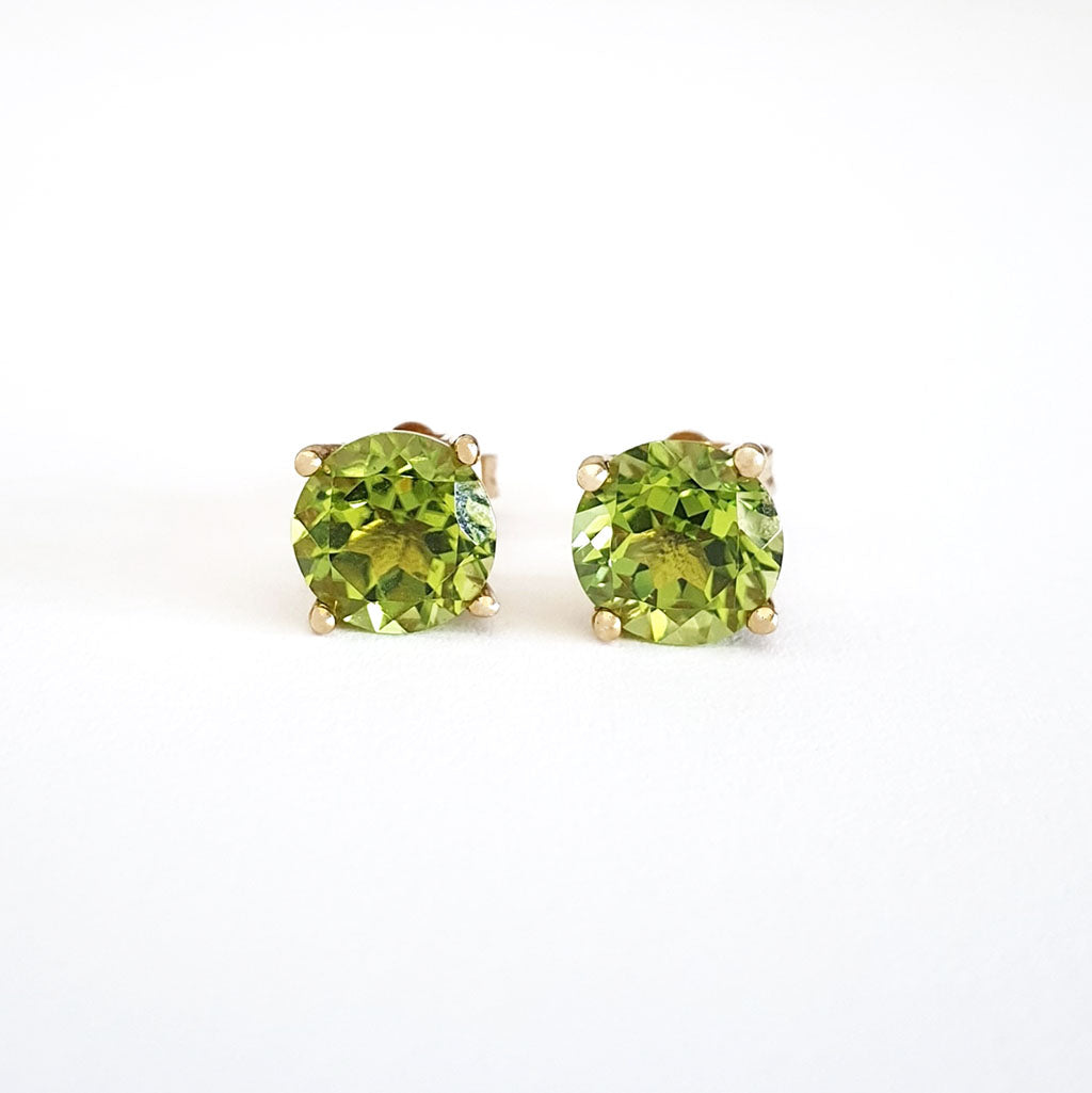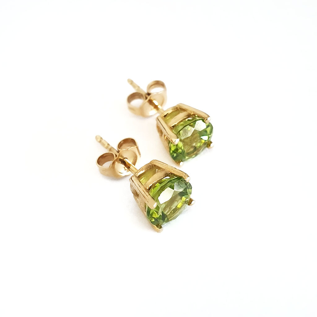Sophisticated Yellow Gold Four Claw Peridot Studs