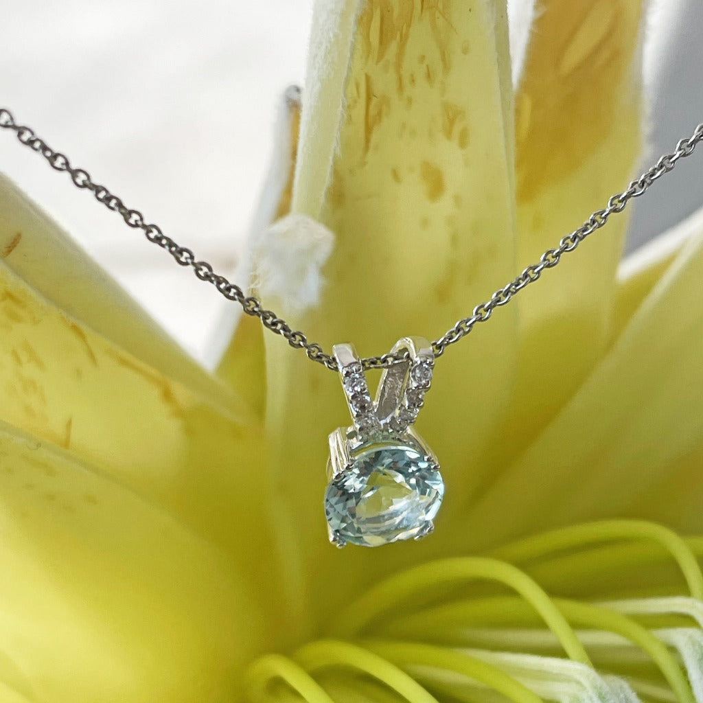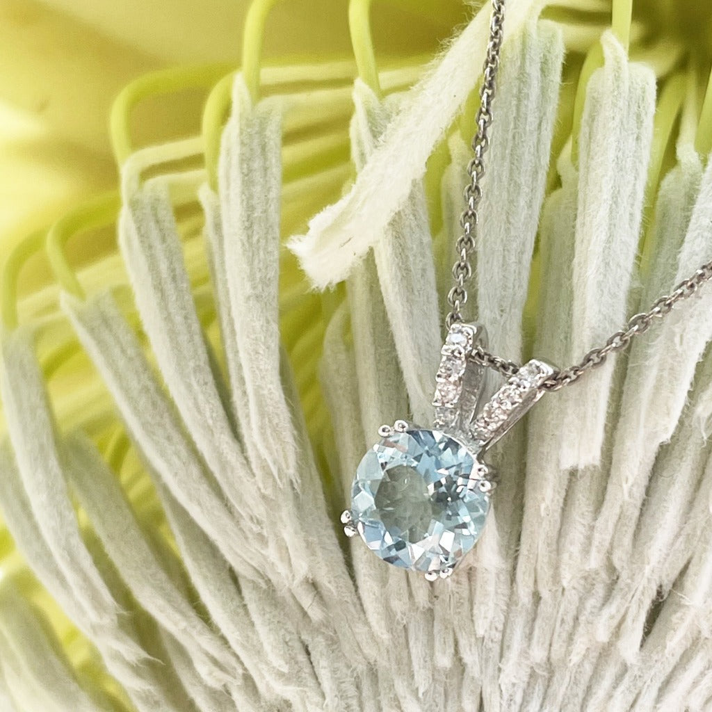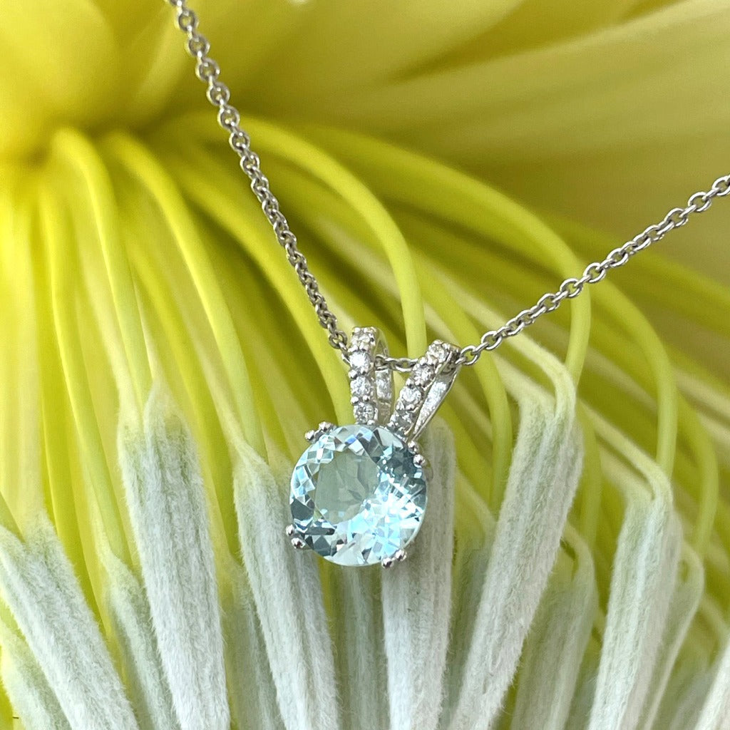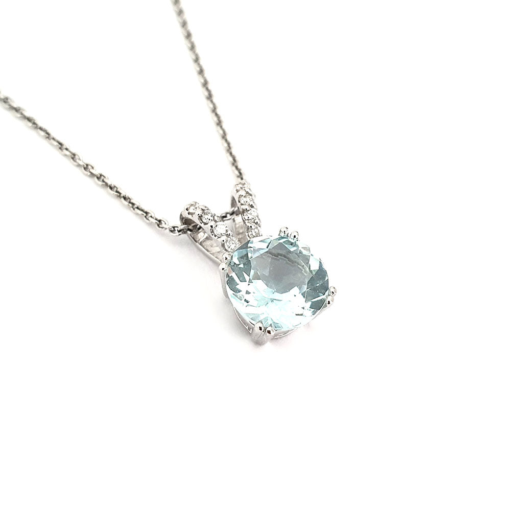 Sophisticated Aquamarine Diamond Studded Split Bale Pendant