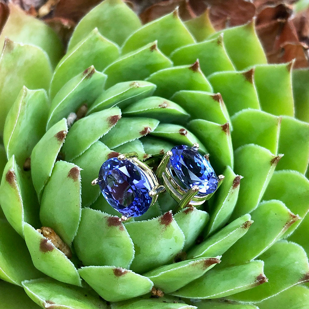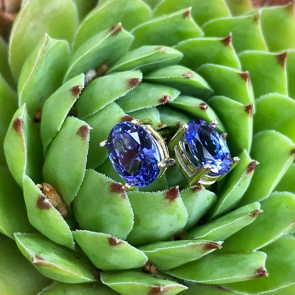 Sophisticated Oval Four Claw Tanzanite Studs
