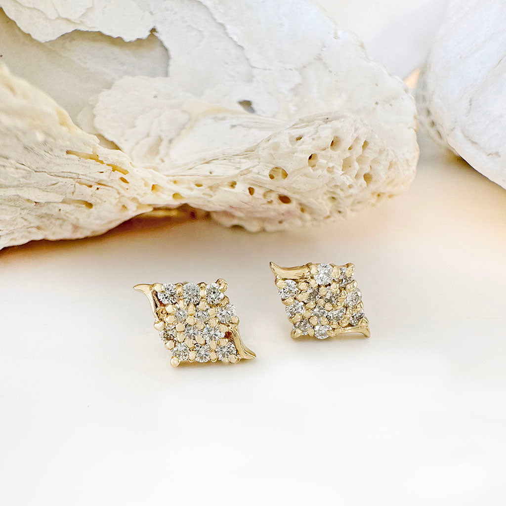 Sparkling Diamond Shaped White Diamond Yellow Gold Earrings