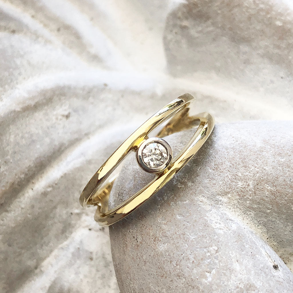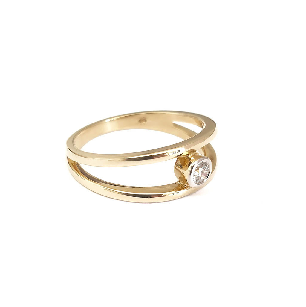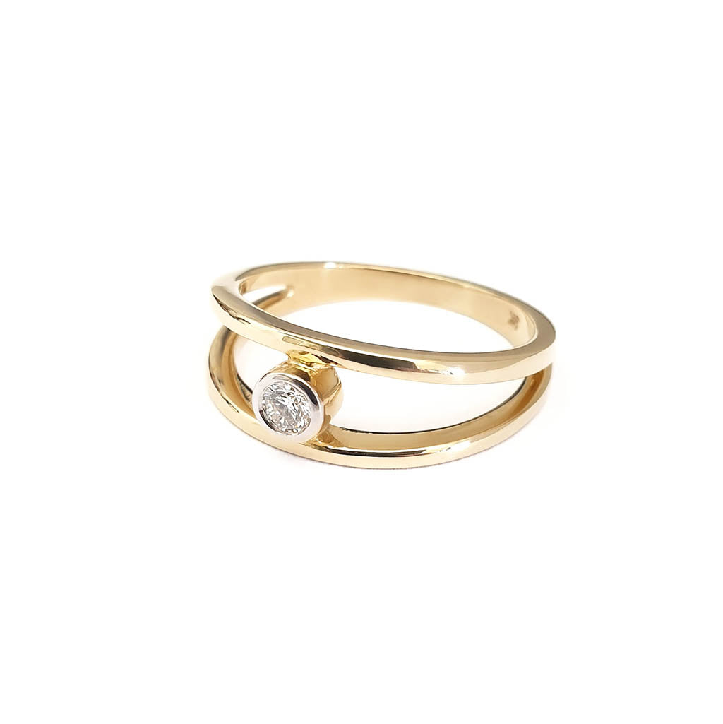 Split Band Yellow Gold Tube Set Diamond Ring