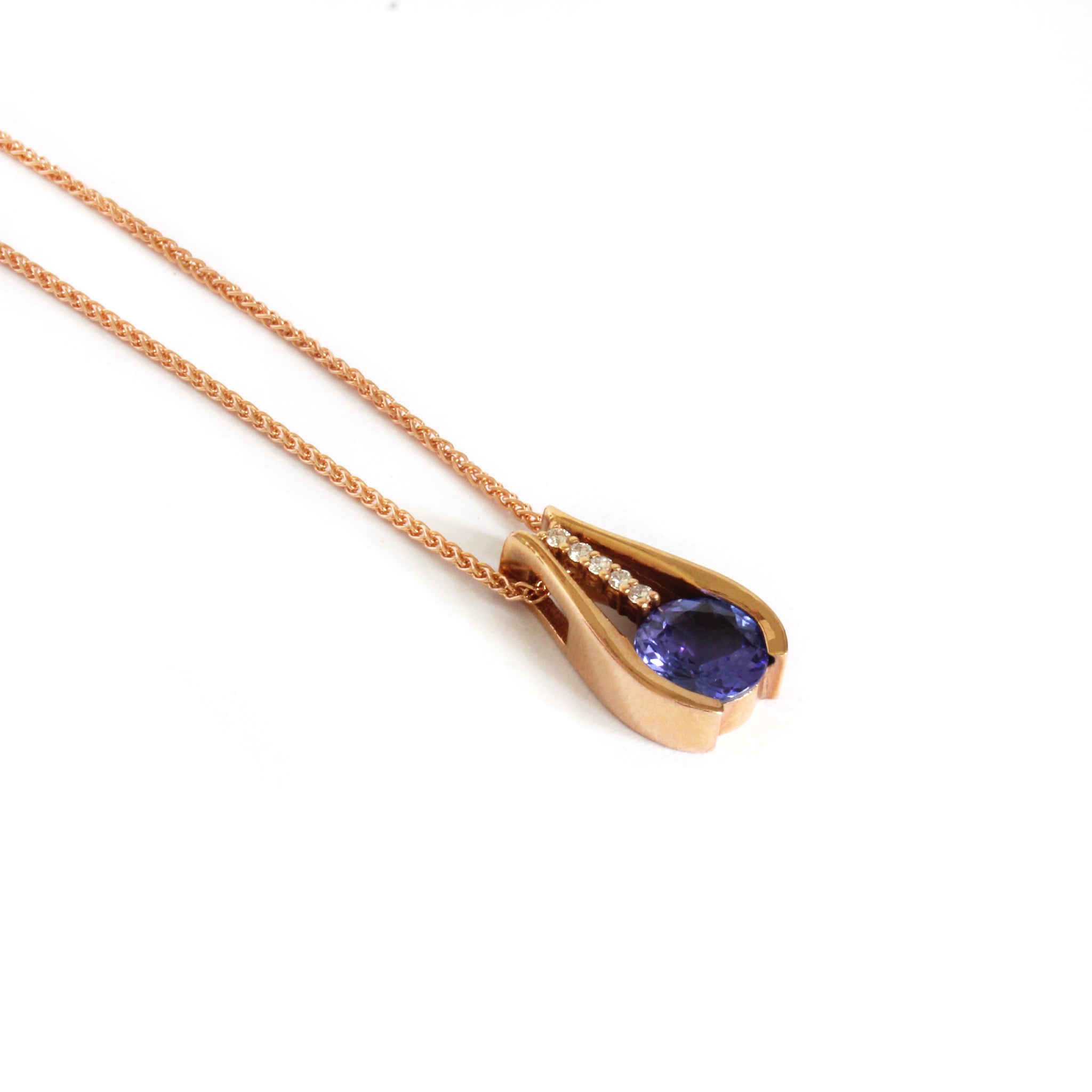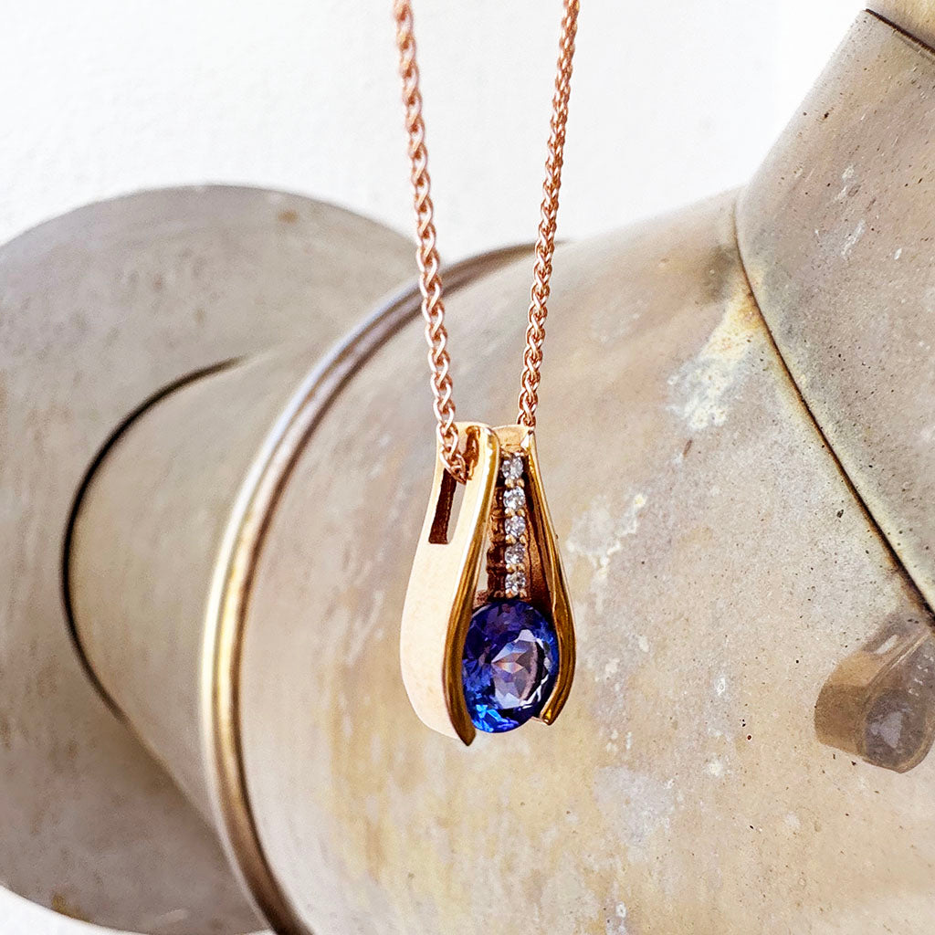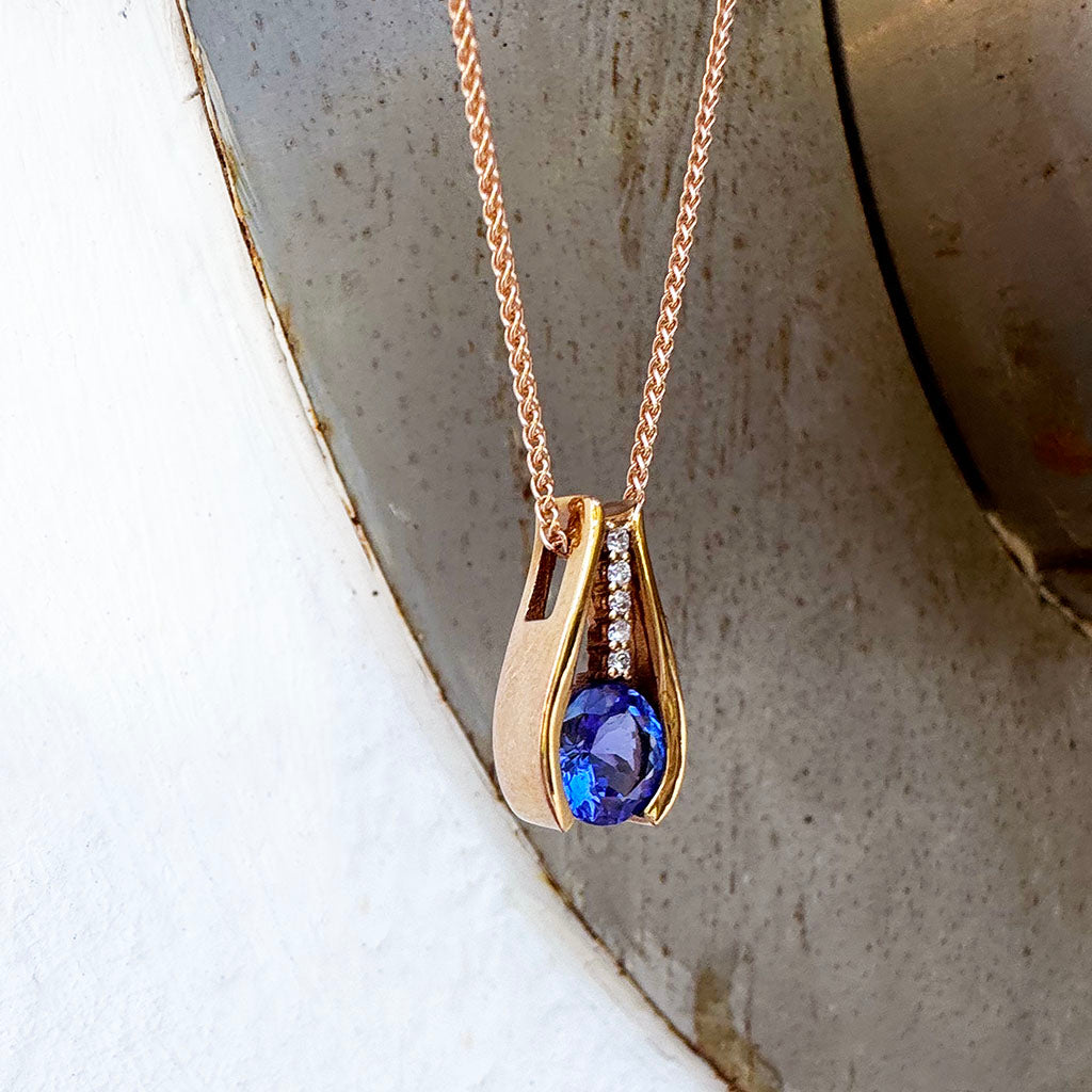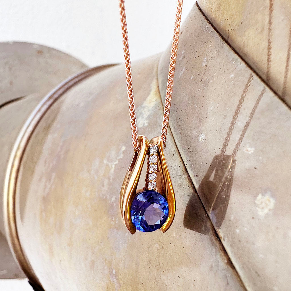 Split Rose Gold Round Tanzanite Pendant with Diamond Stripe Highlight
