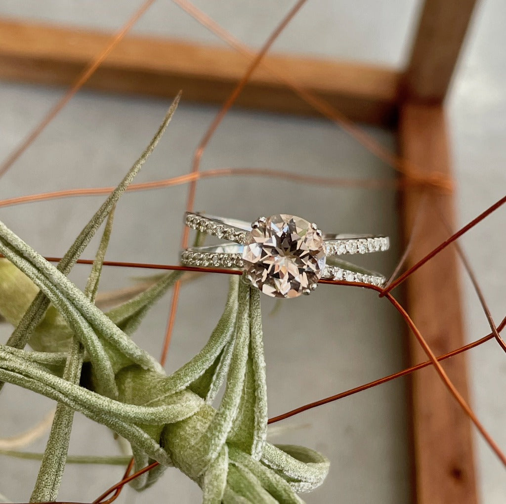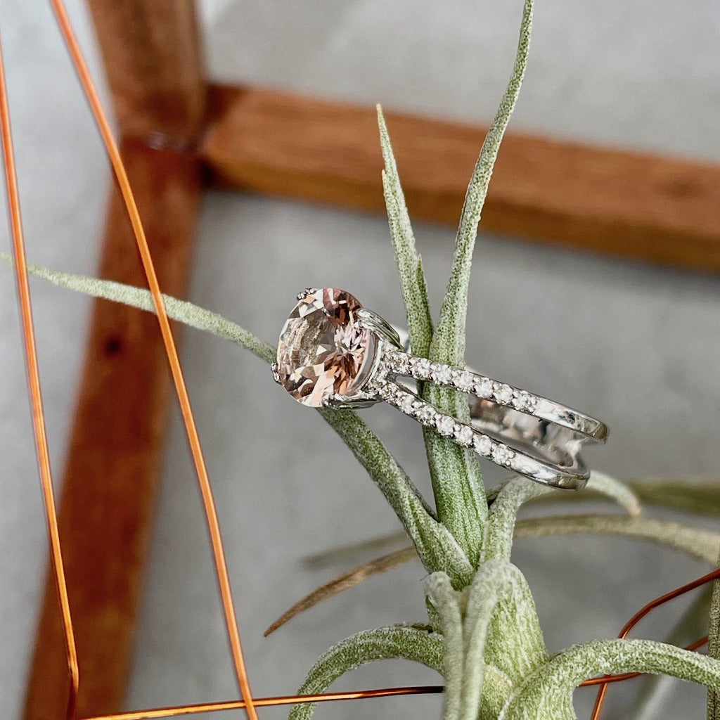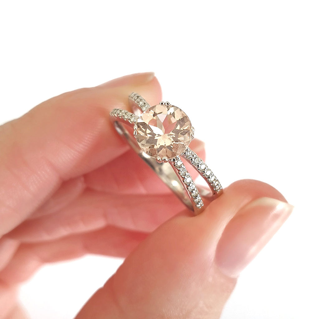Dynamic Diamond Encrusted Split Shank Morganite Ring
