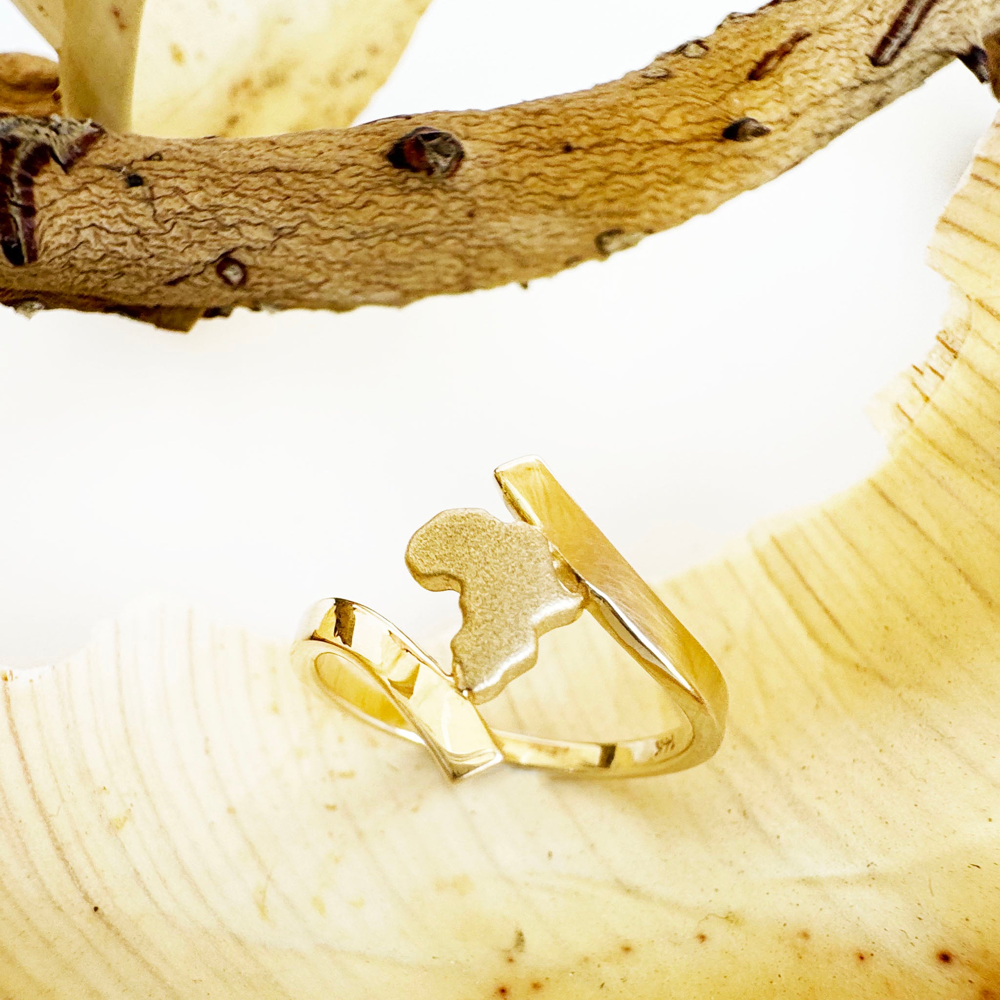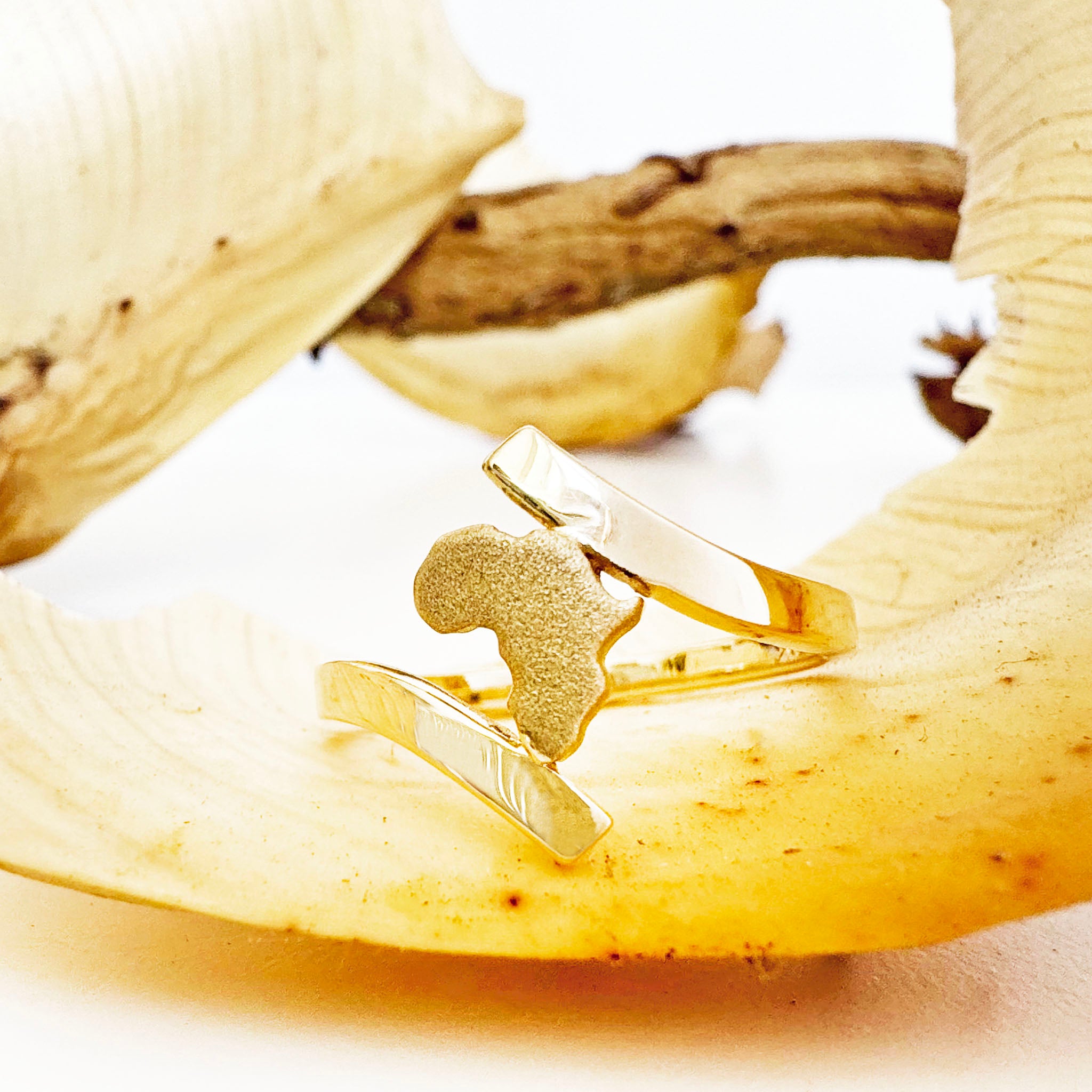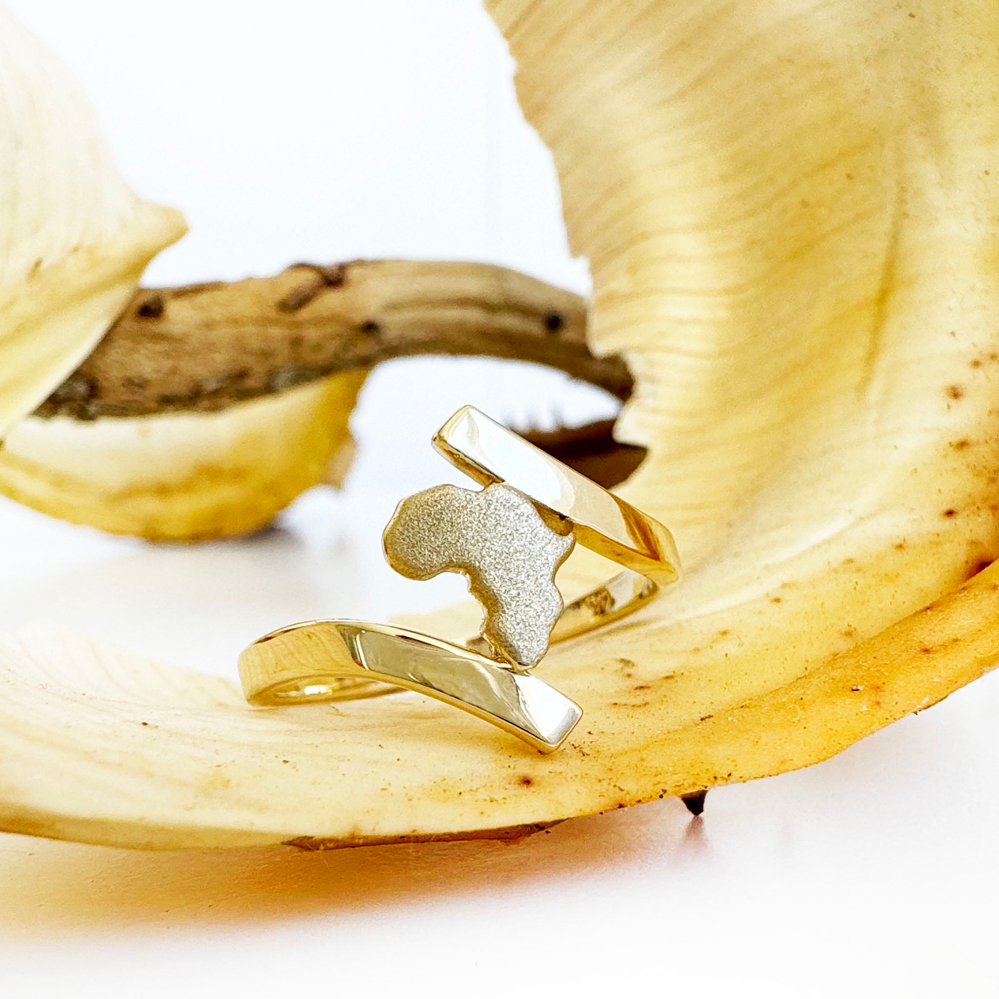 Split Shank Yellow Gold Sandblasted Africa Map Ring