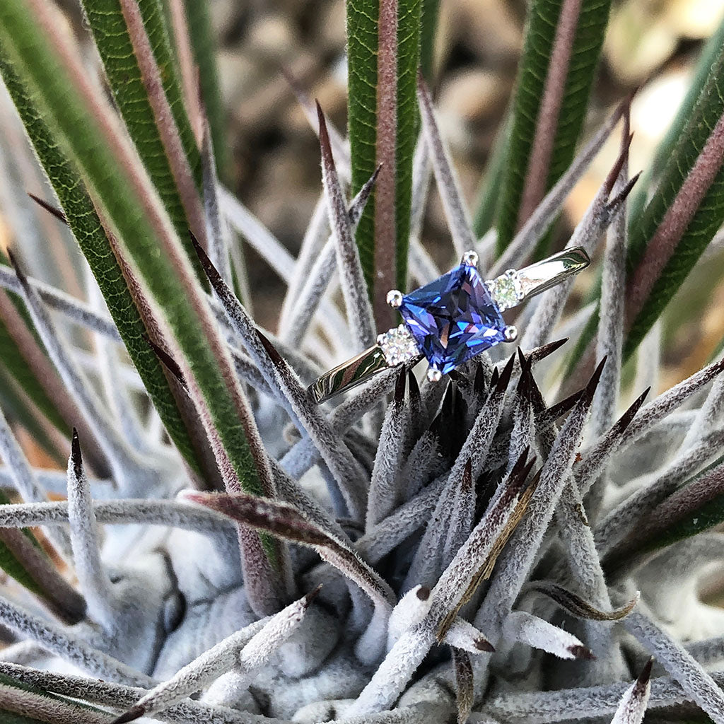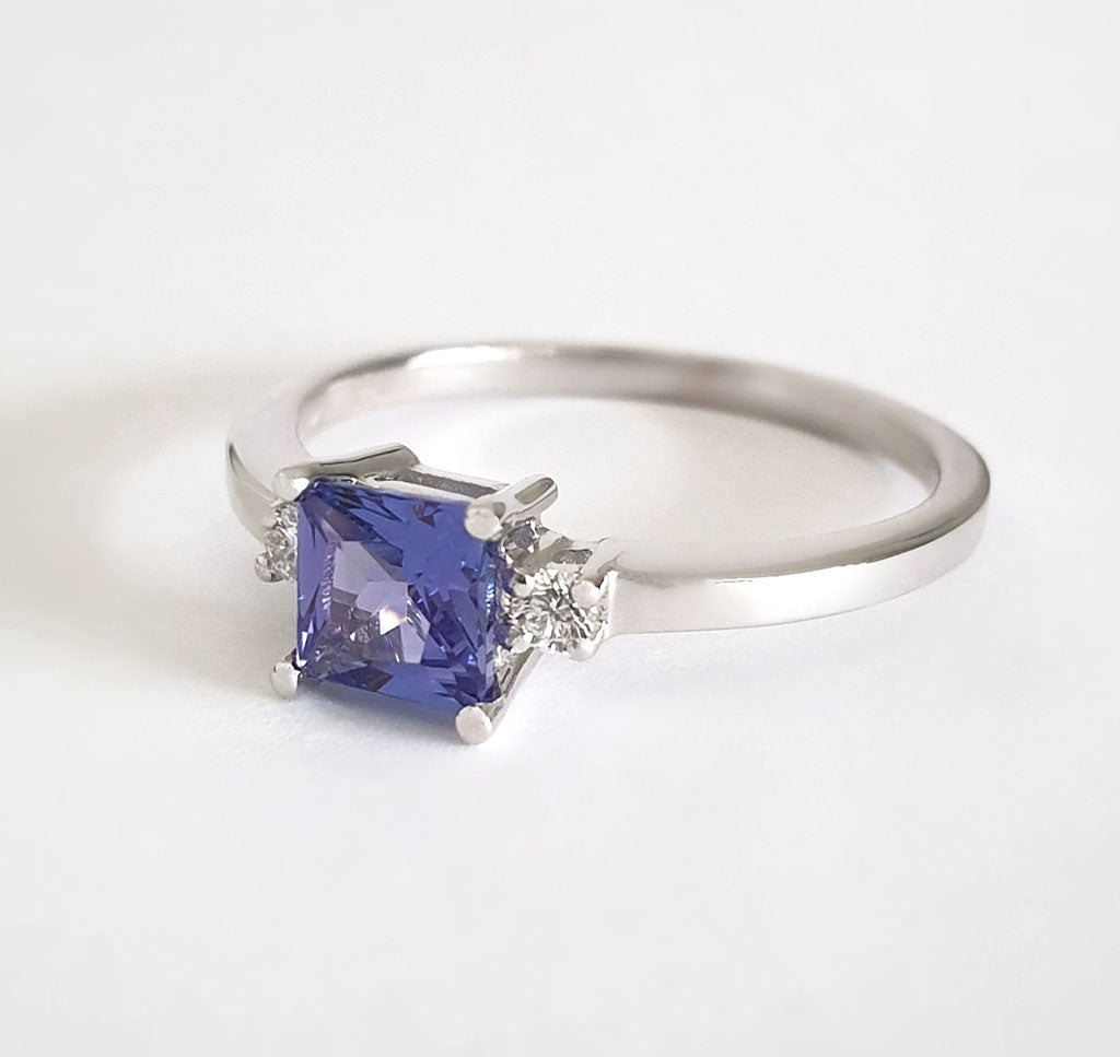 Contemporary Square Cut Tanzanite and Petite Diamond Accent Ring