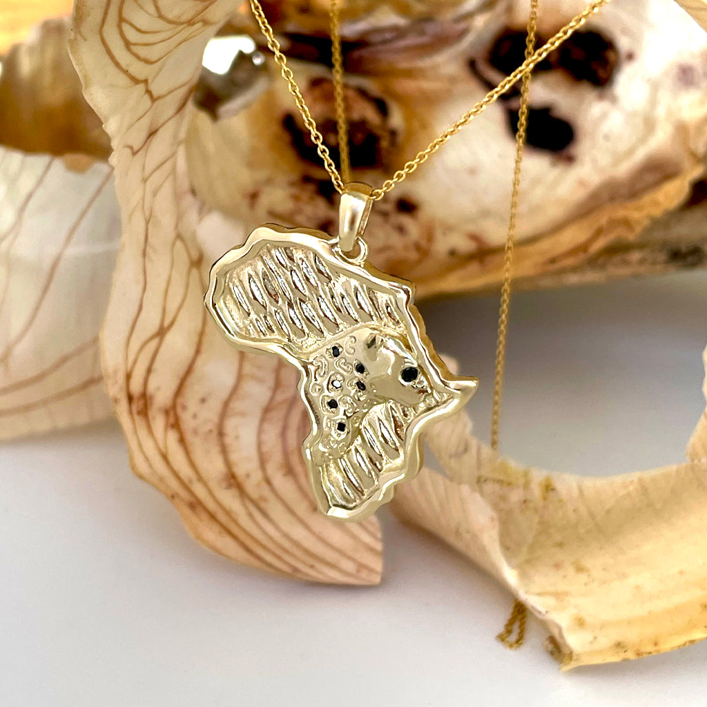 Stand Out Cheetah and Black Diamond Solid Africa Map Yellow Gold Pendant