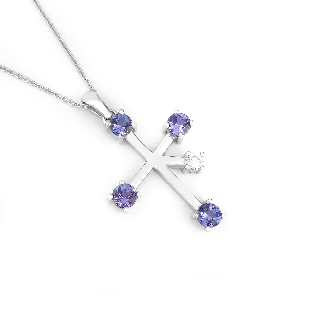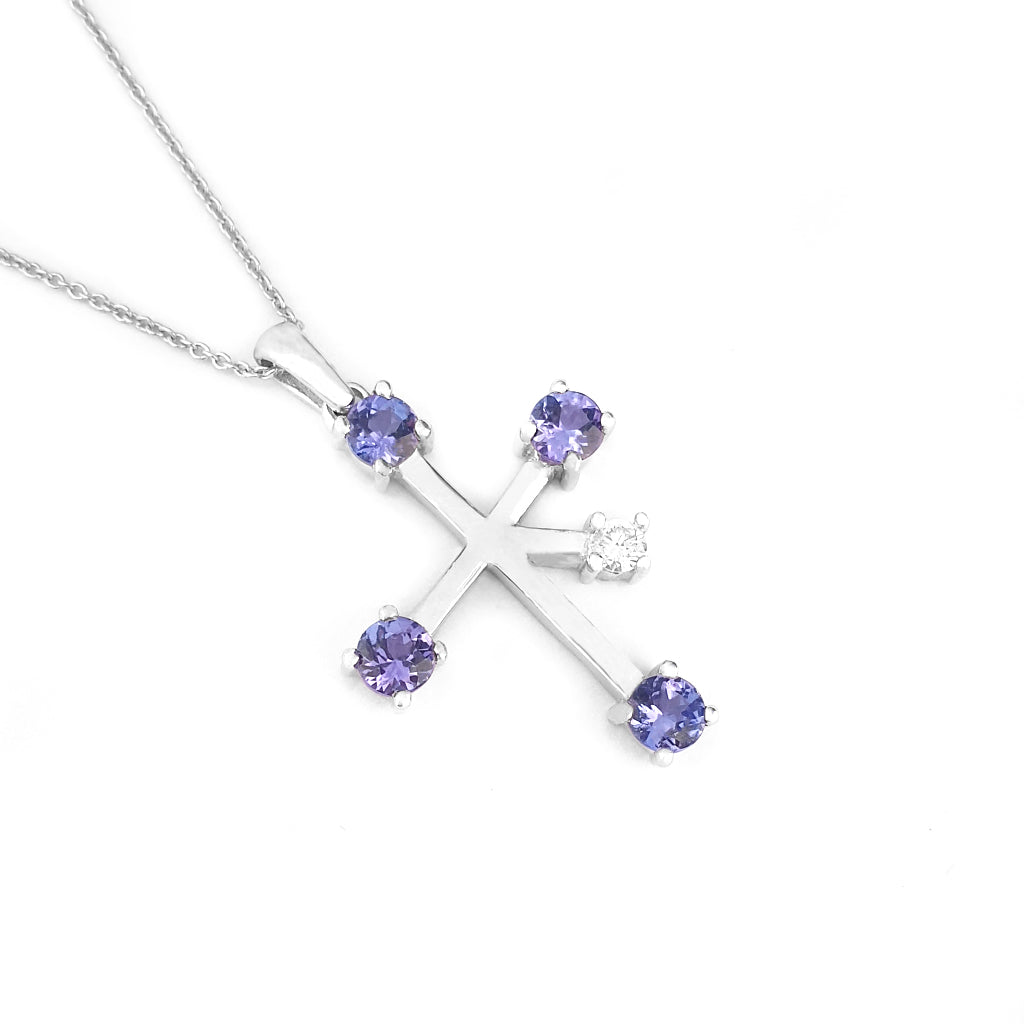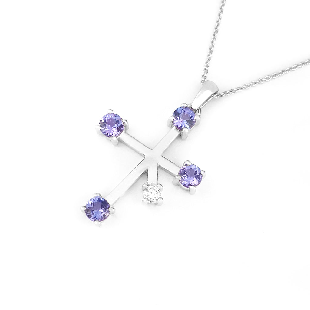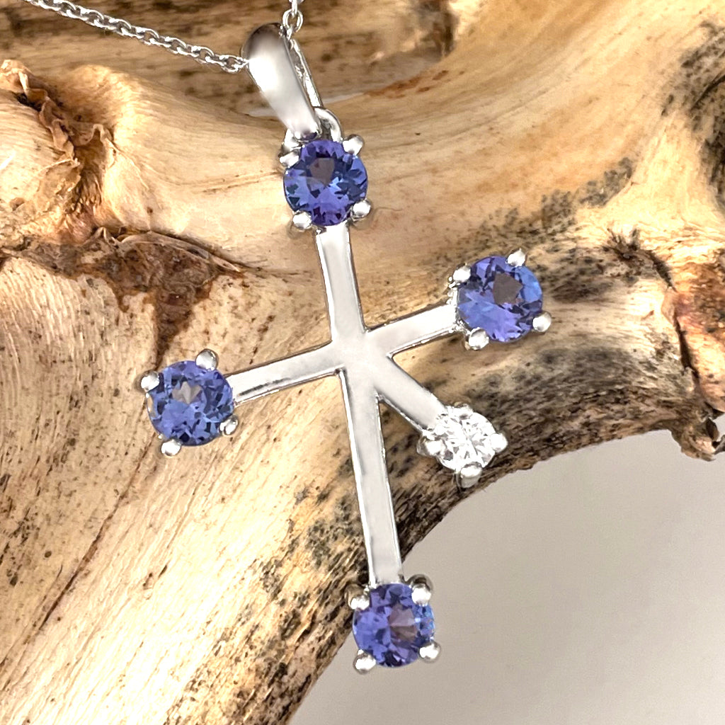 Stand Out Tanzanite and Diamond White Gold Southern Cross Pendant