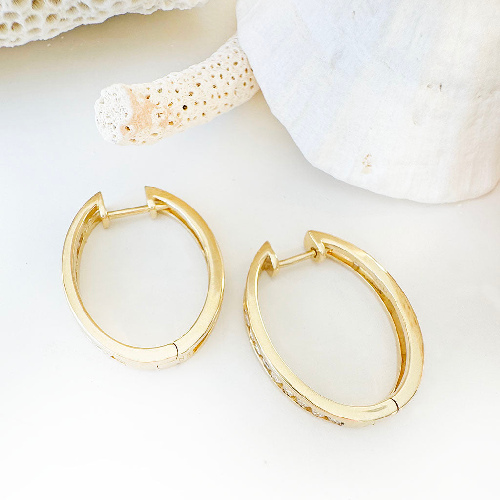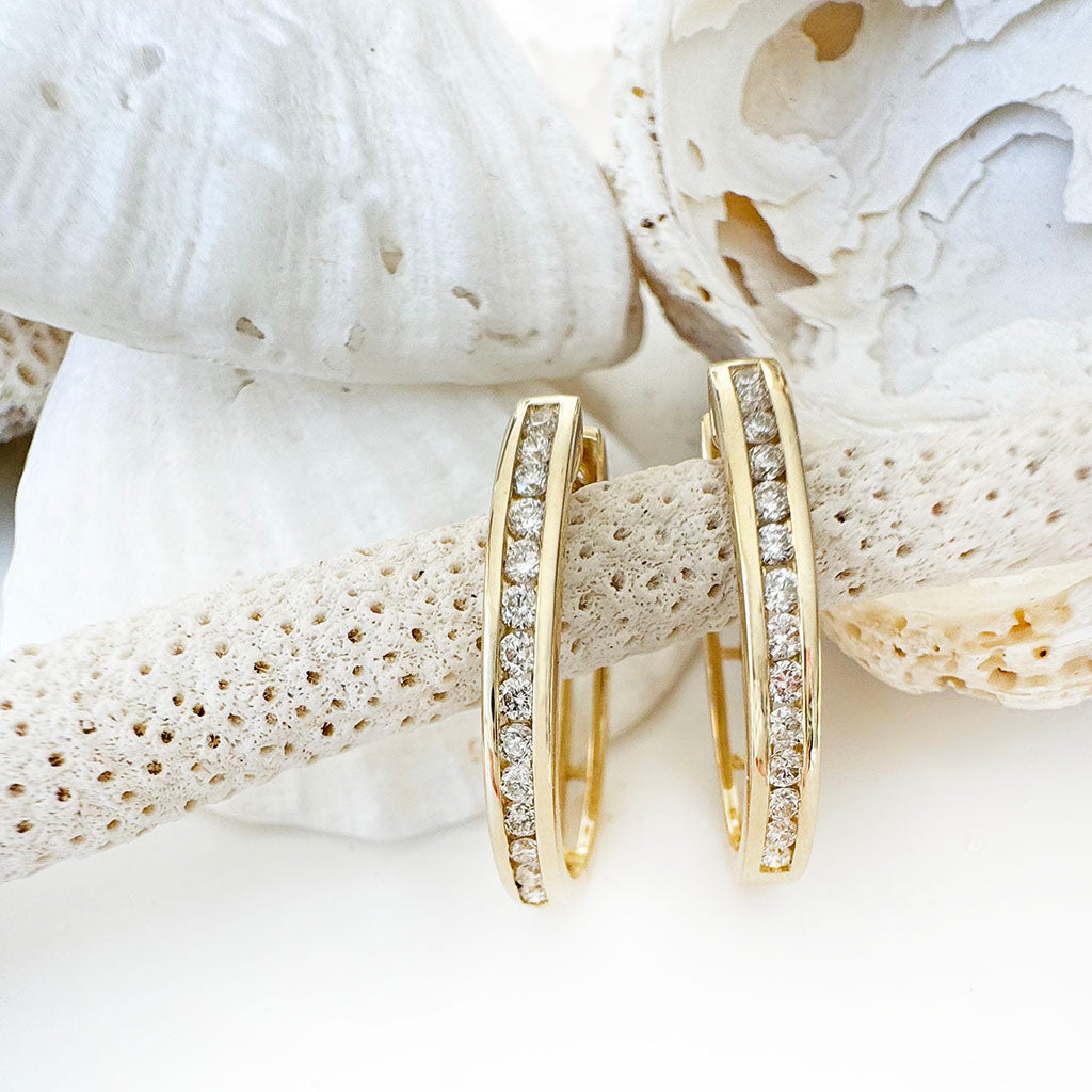 Standout Channel Set White Diamond Hoop Yellow Gold Earrings