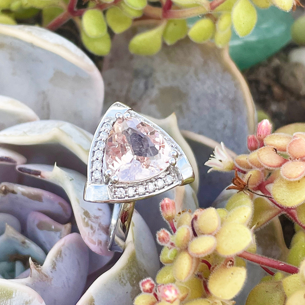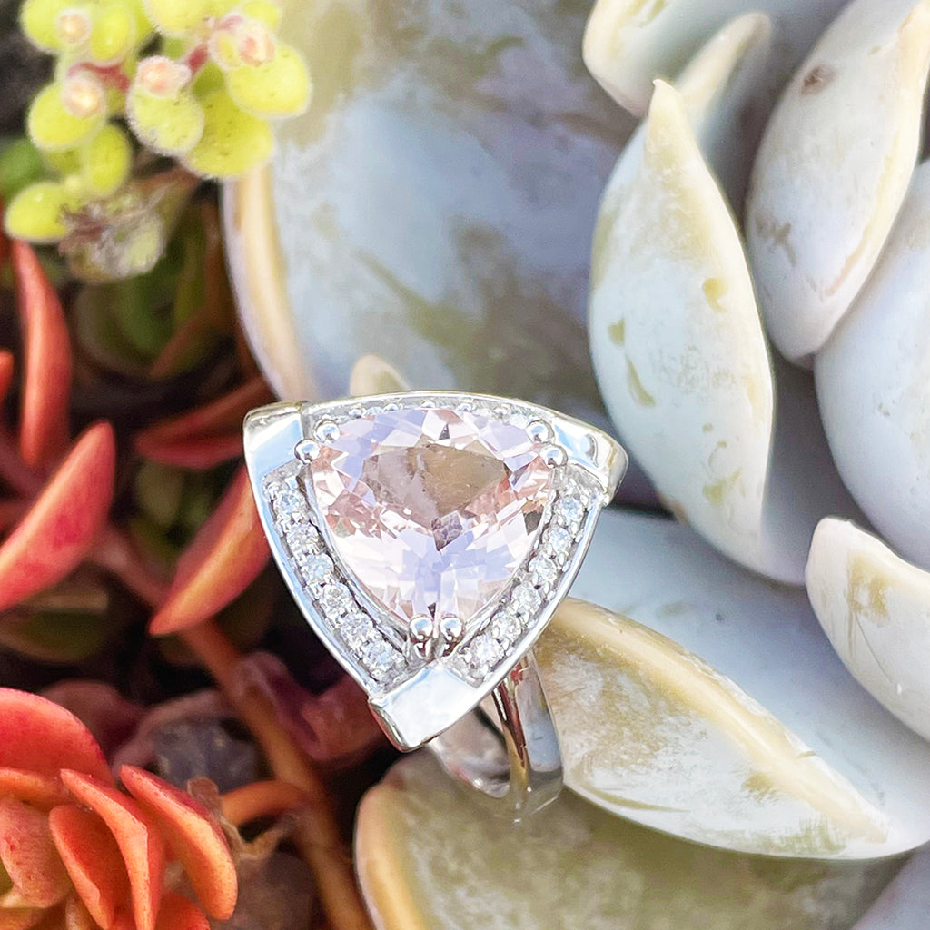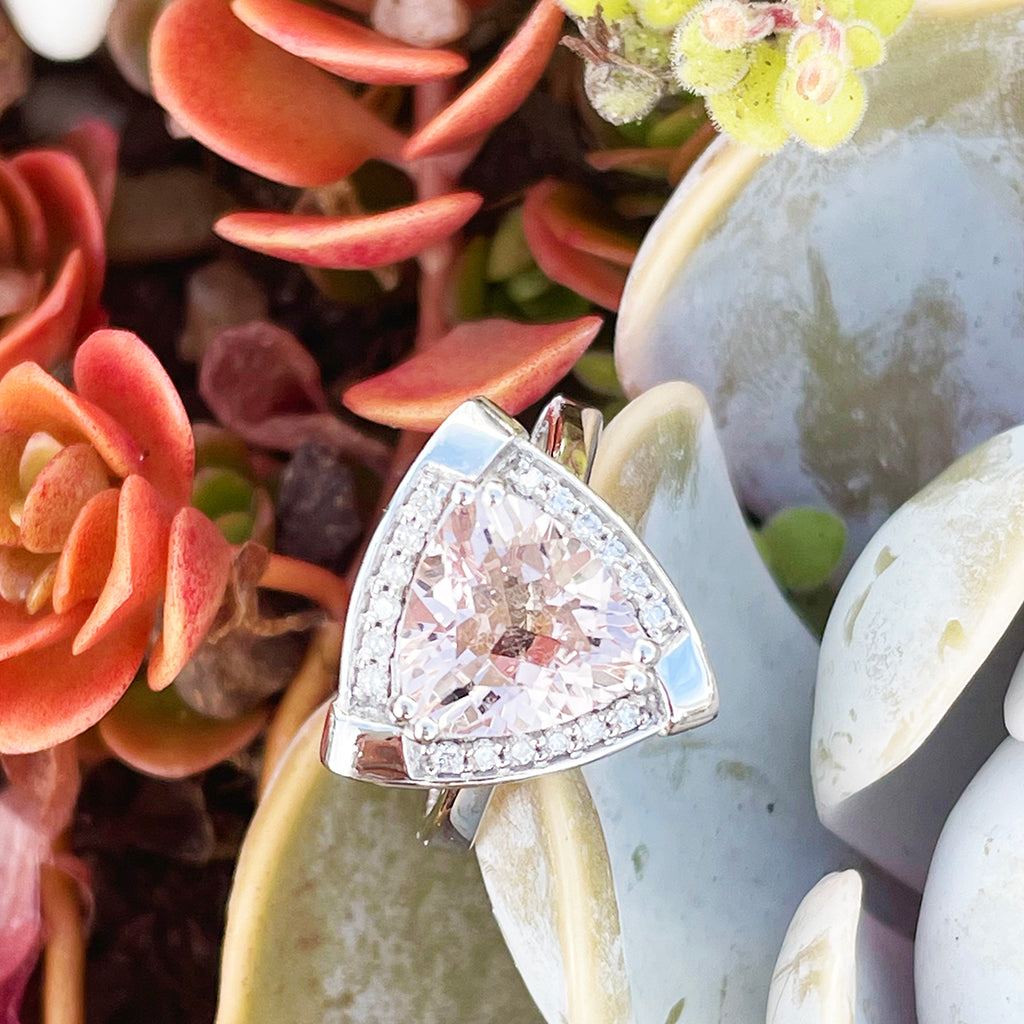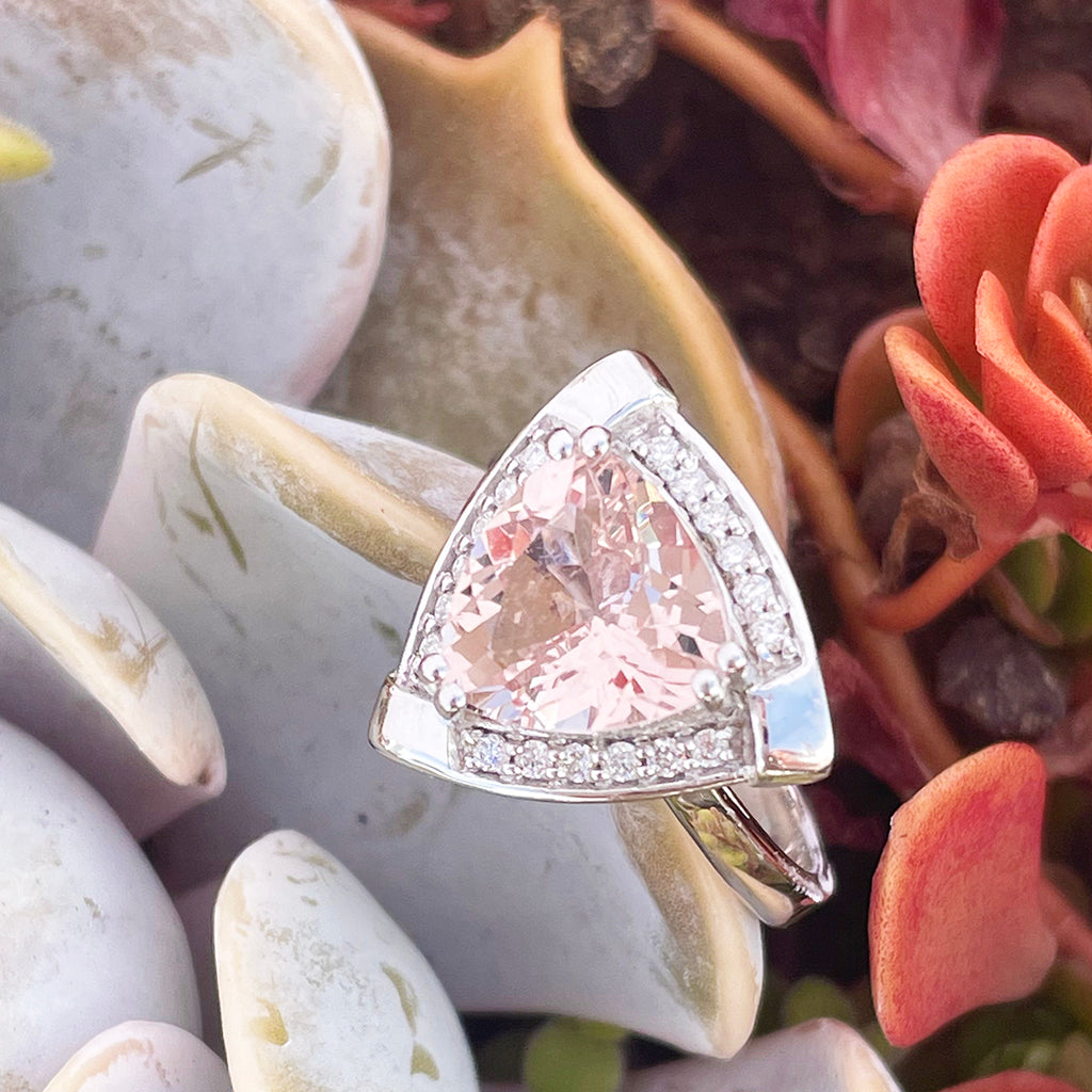 Standout Trilliant Pink Morganite and Diamond Highlight Ring