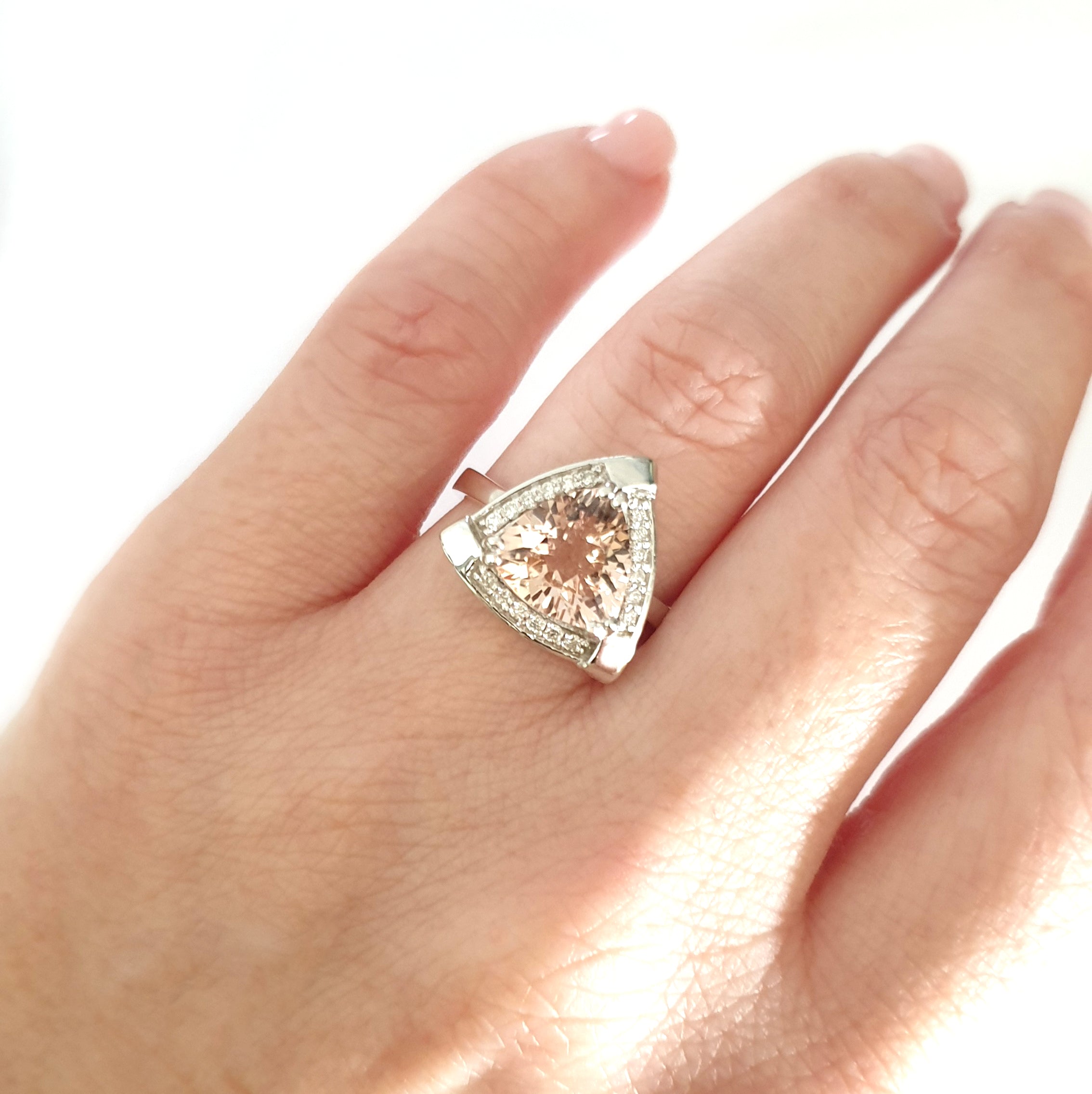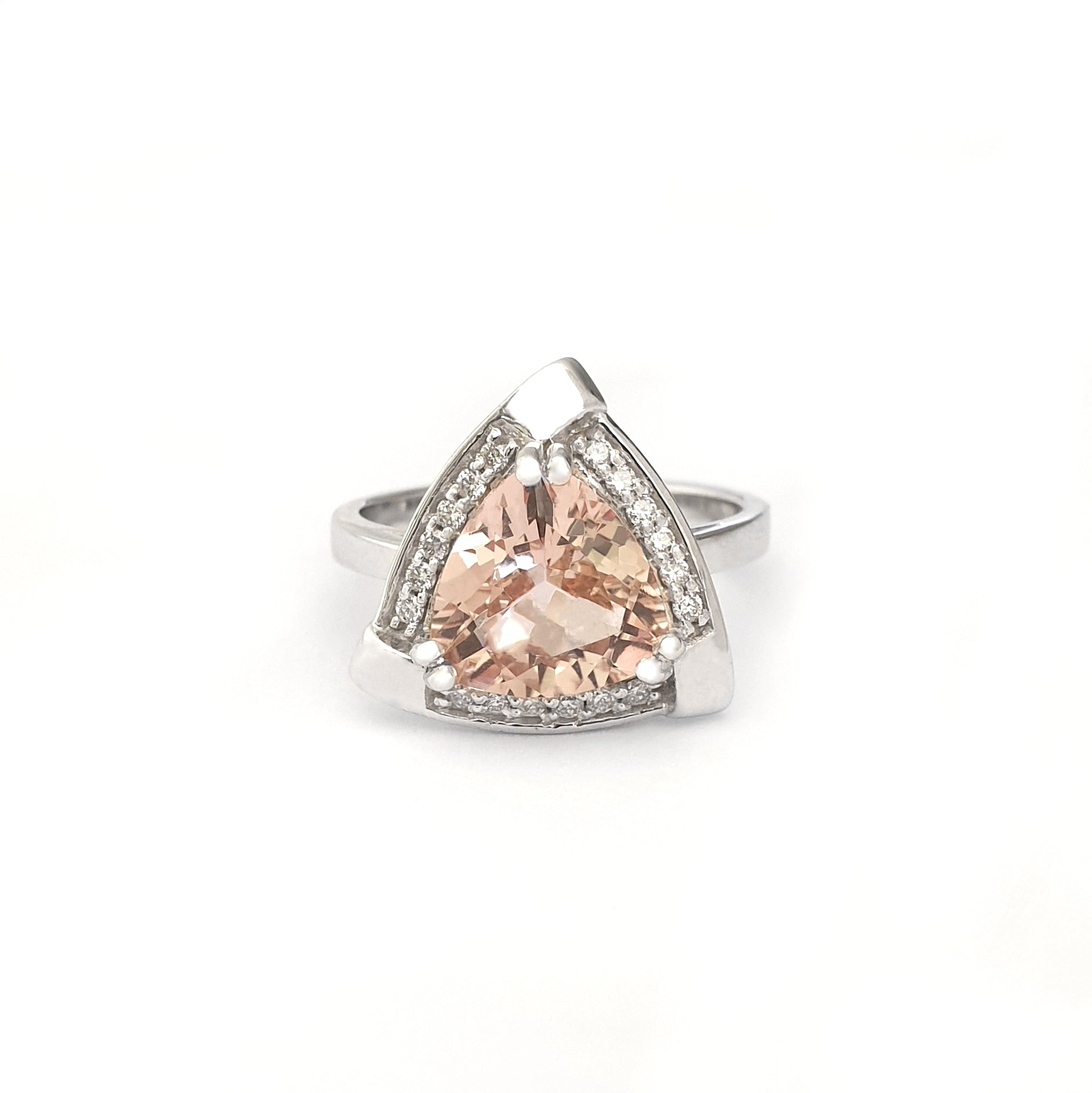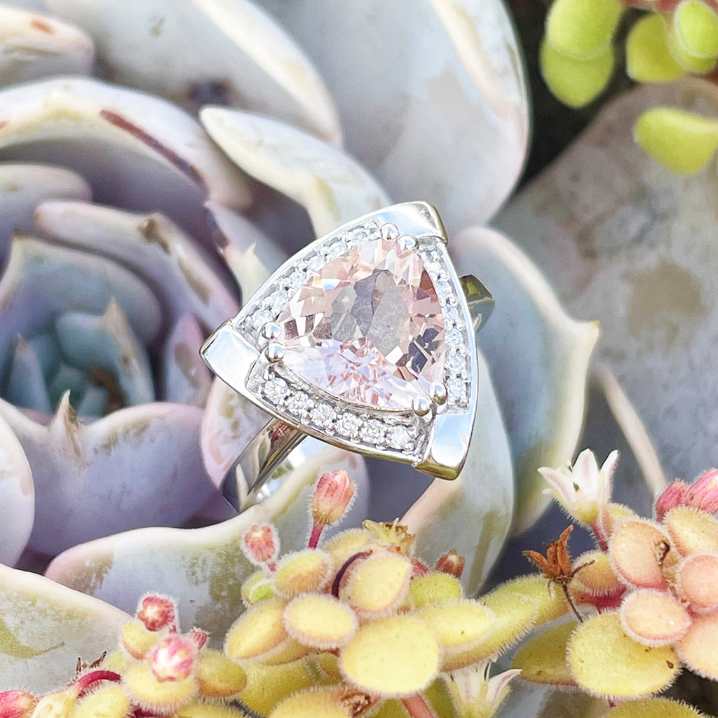 Standout Trilliant Pink Morganite and Diamond Highlight Ring
