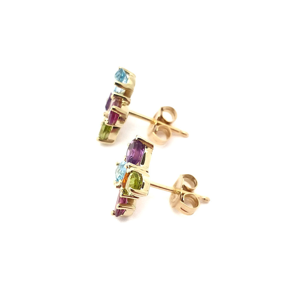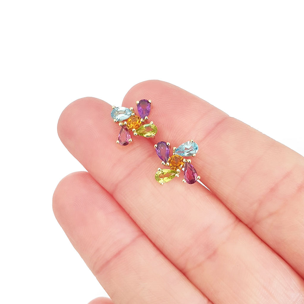Starburst Multicolour Gemstone Yellow Gold Earrings