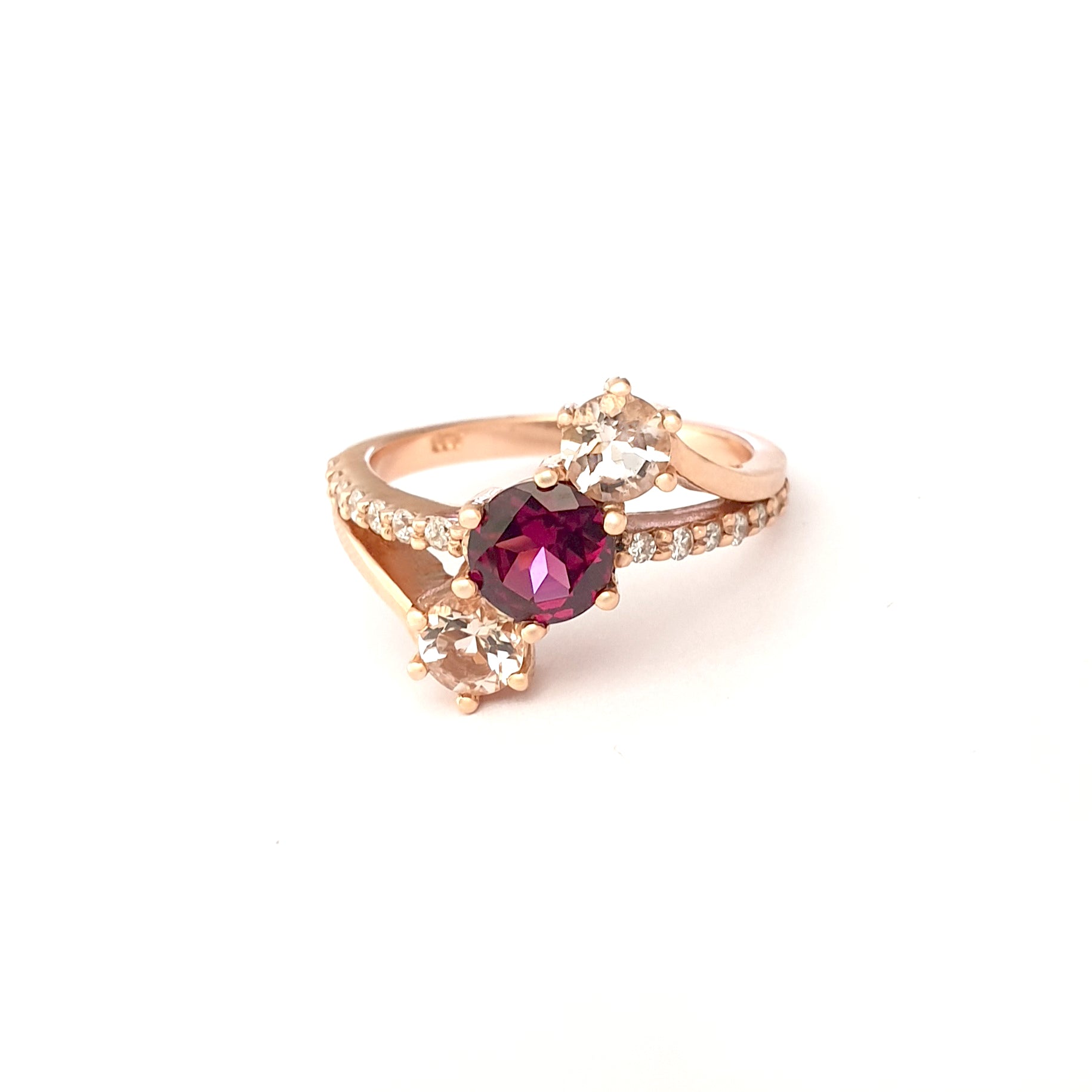 Starburst Rhodalite and Morganite Rose Gold Ring