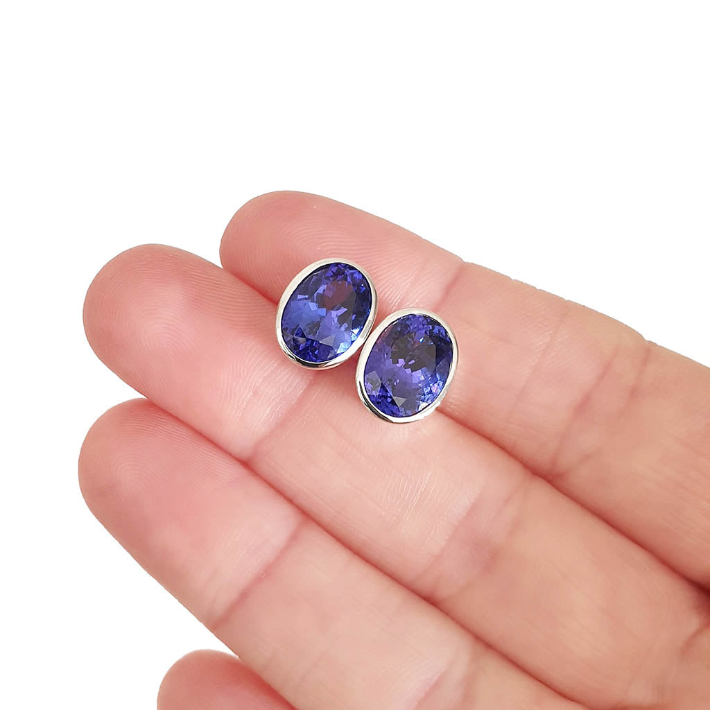 Statement Bezel Set Oval Cut Tanzanite Studs
