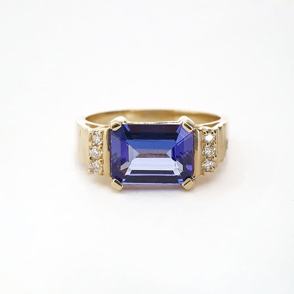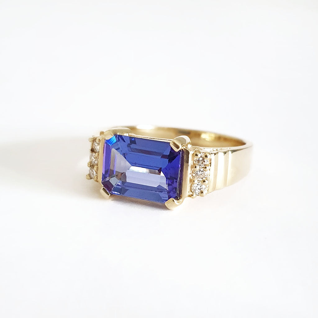 Stepped Shoulder Emerald Cut Tanzanite and Diamond Ring