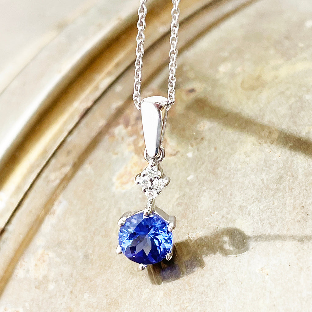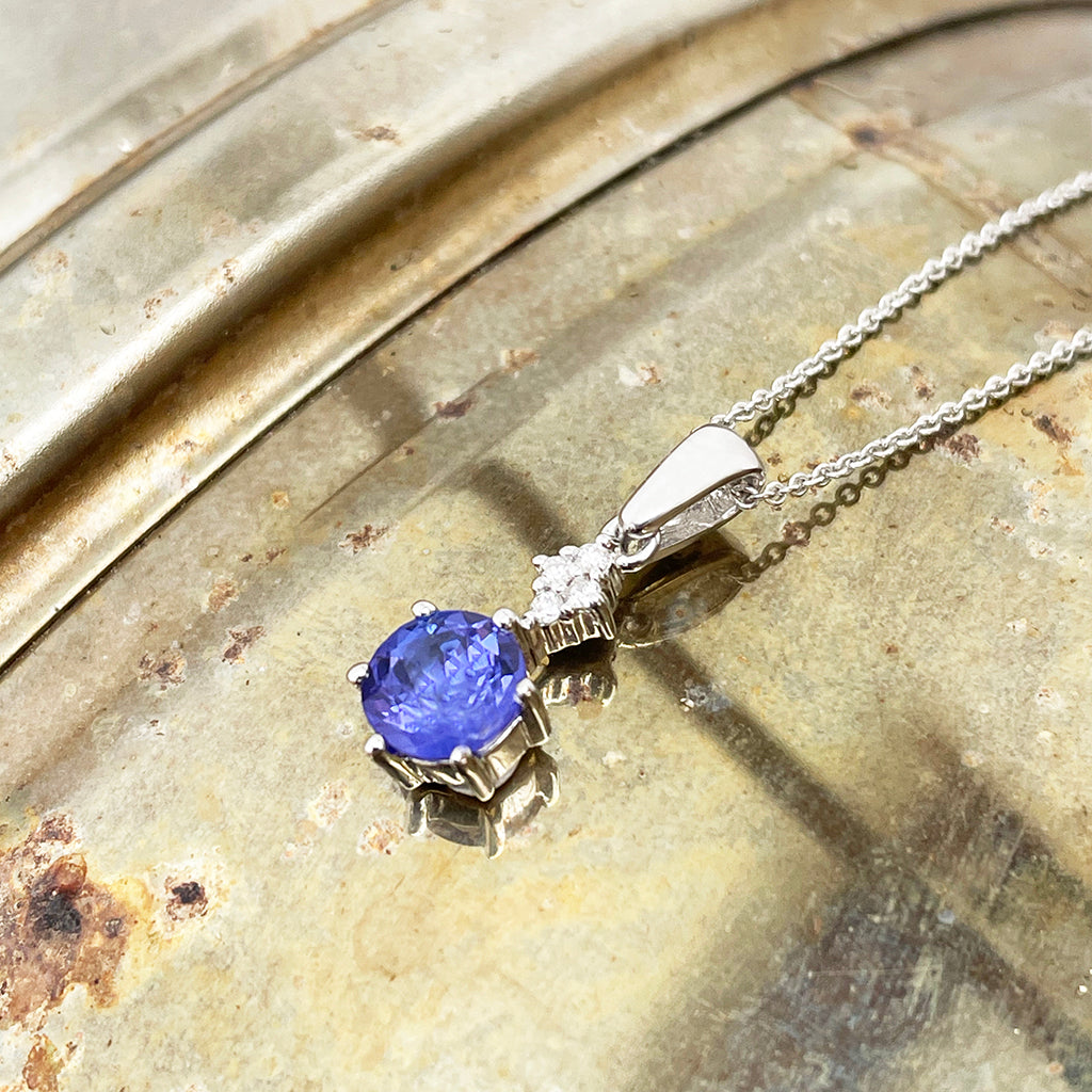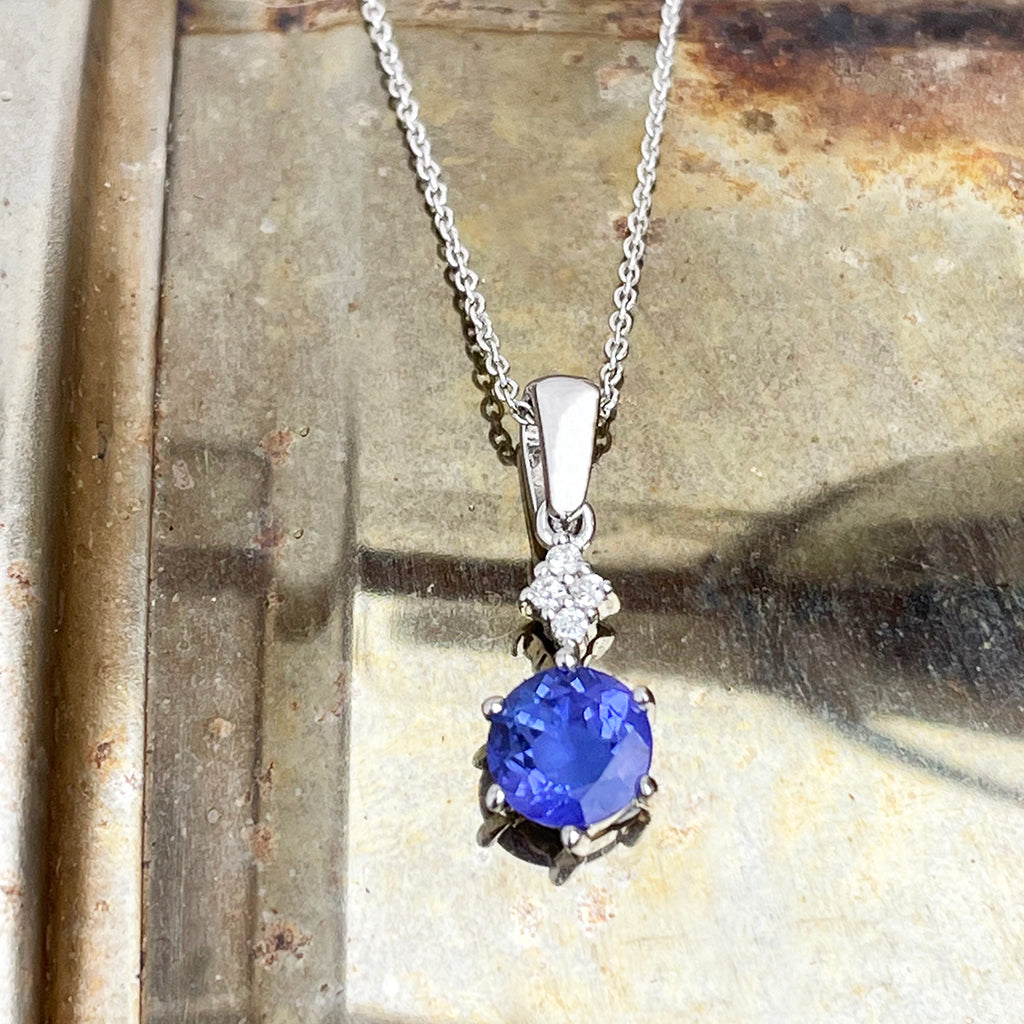 Stunning Six Claw Round Tanzanite and Quadrant Diamond Pendant