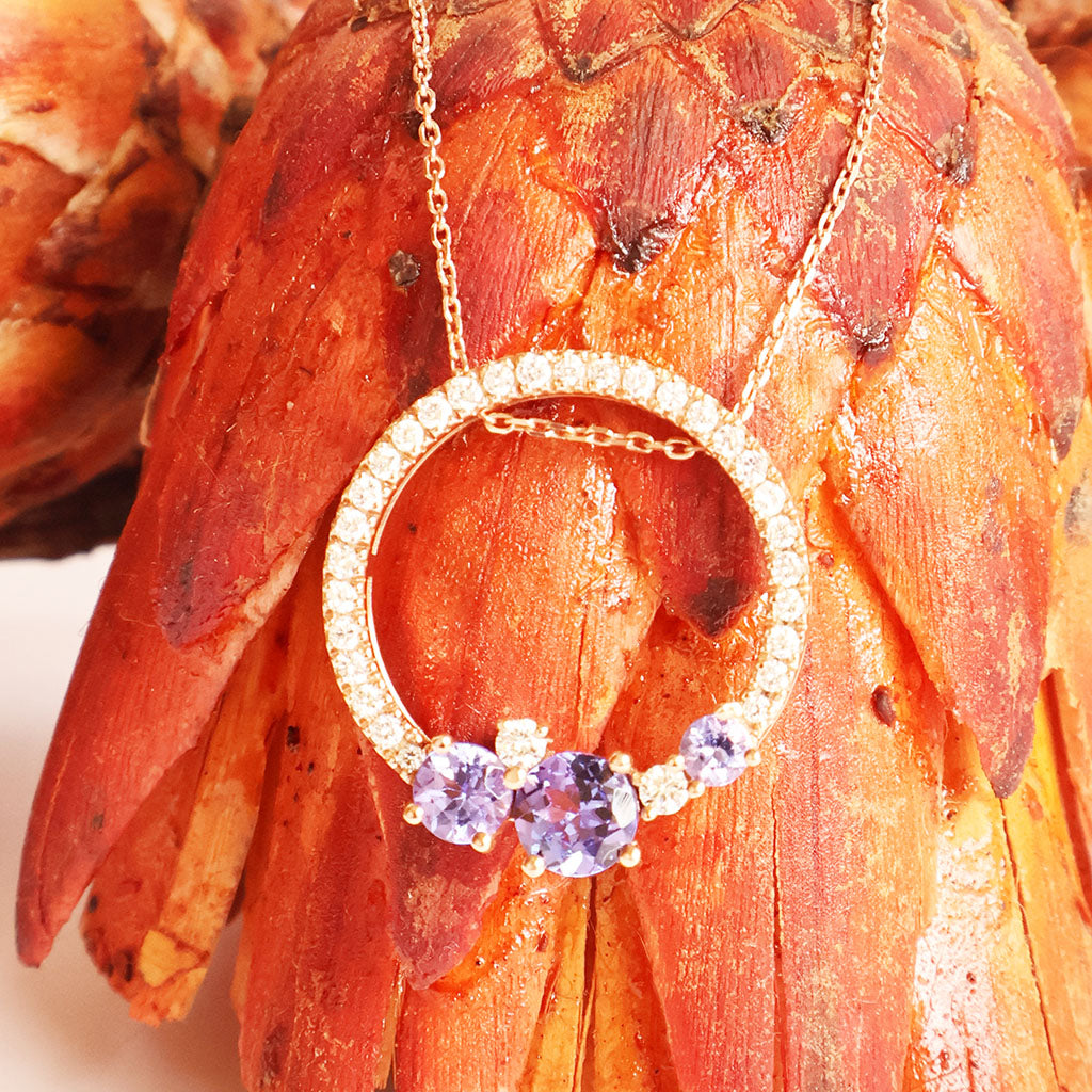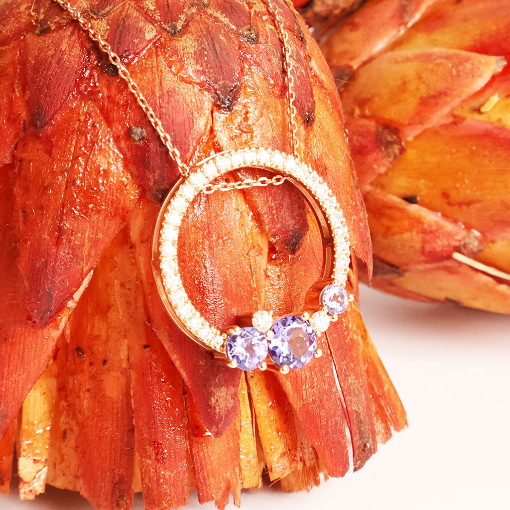 Stunning Tanzanite and Diamond Cluster Diamond Halo Rose Gold Pendant