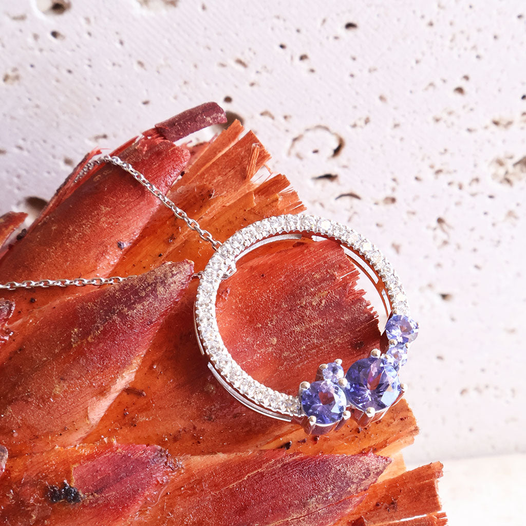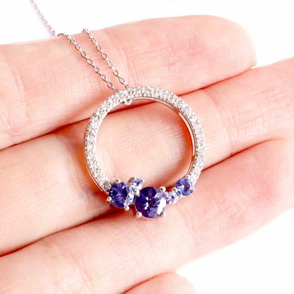 Stunning Tanzanite Cluster Diamond Halo White Gold Pendant