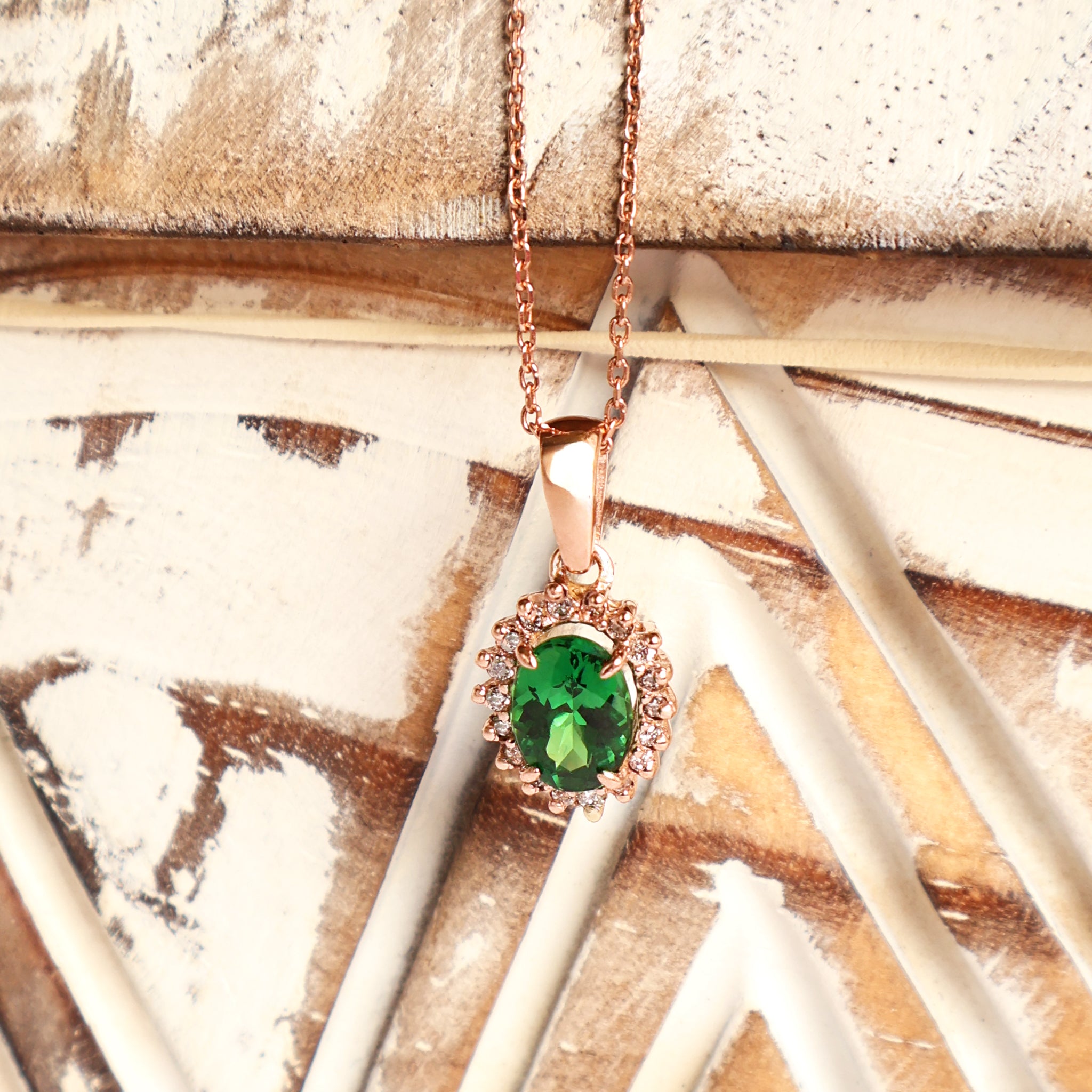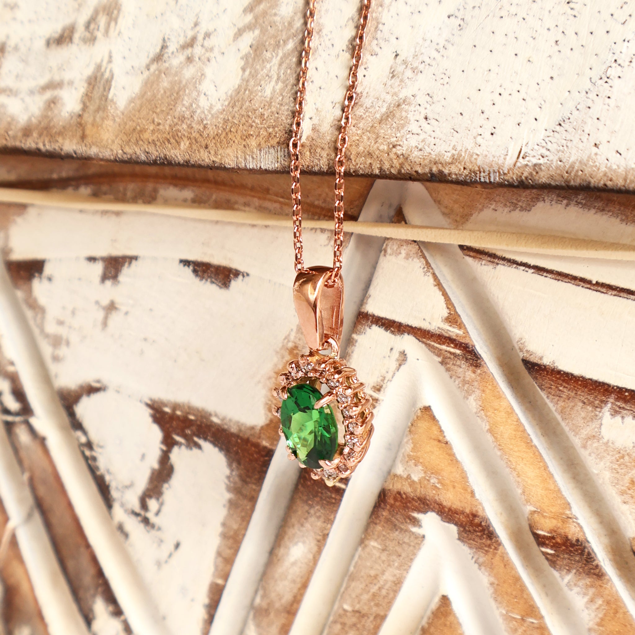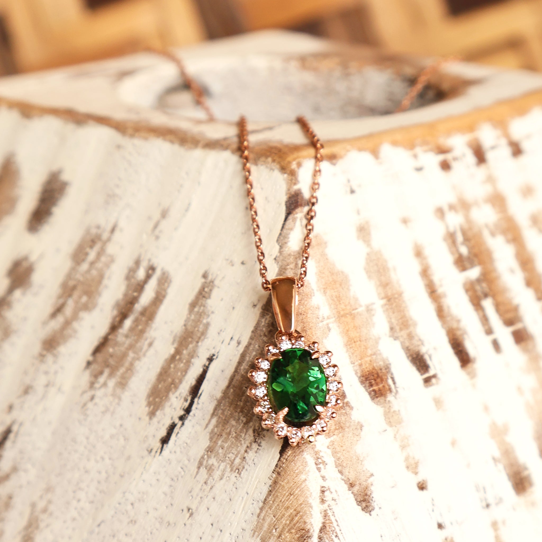 Sublime Oval Tsavorite Diamond Halo Rose Gold Pendant