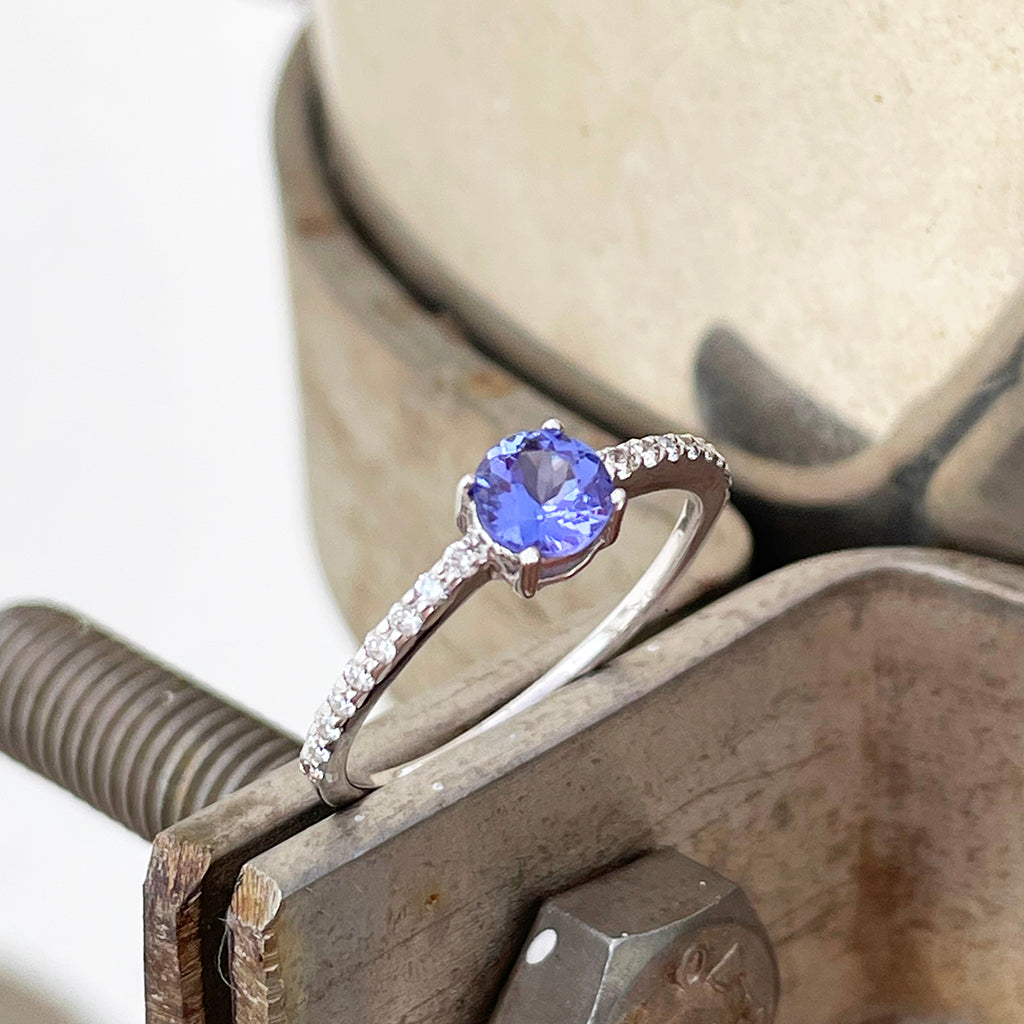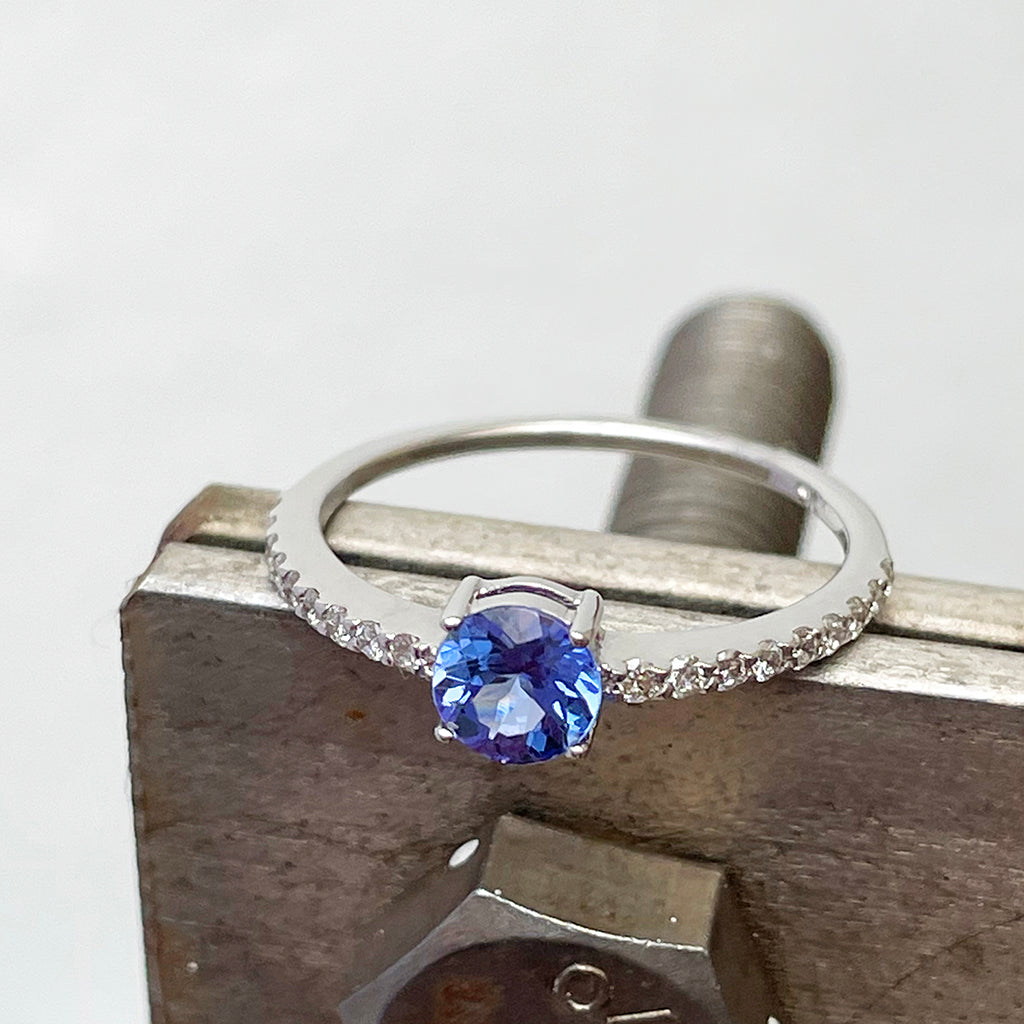 Subtlety Decadent Round Cut Tanzanite Diamond Band Highlight Ring
