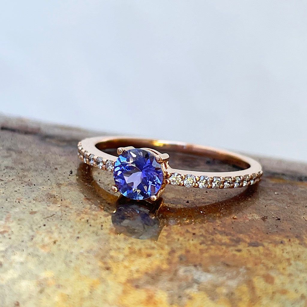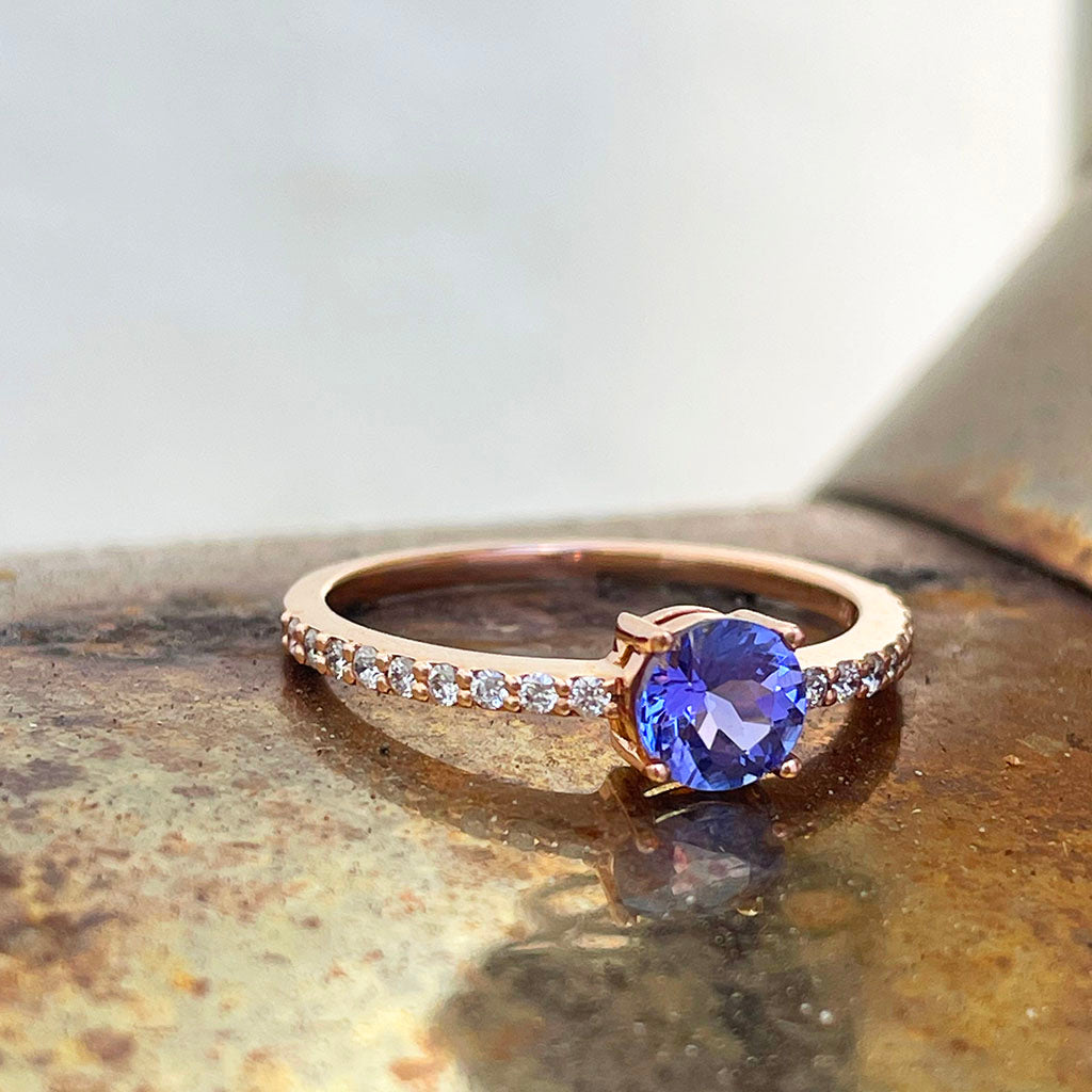 Subtlety Decadent Round Cut Tanzanite Diamond Band Highlight Rose Gold Ring