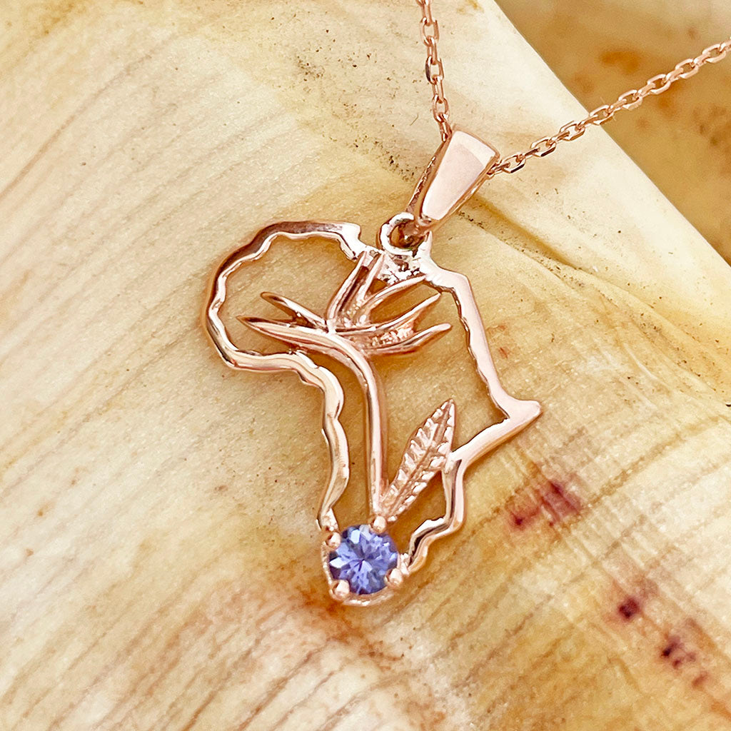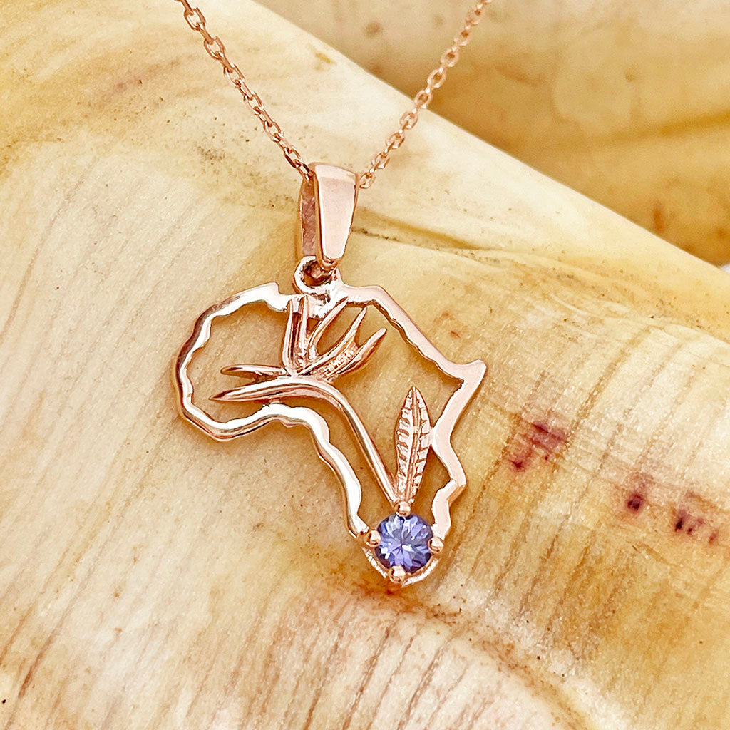 Tanzanite Africa Map Bird of Paradise Rose Gold Pendant