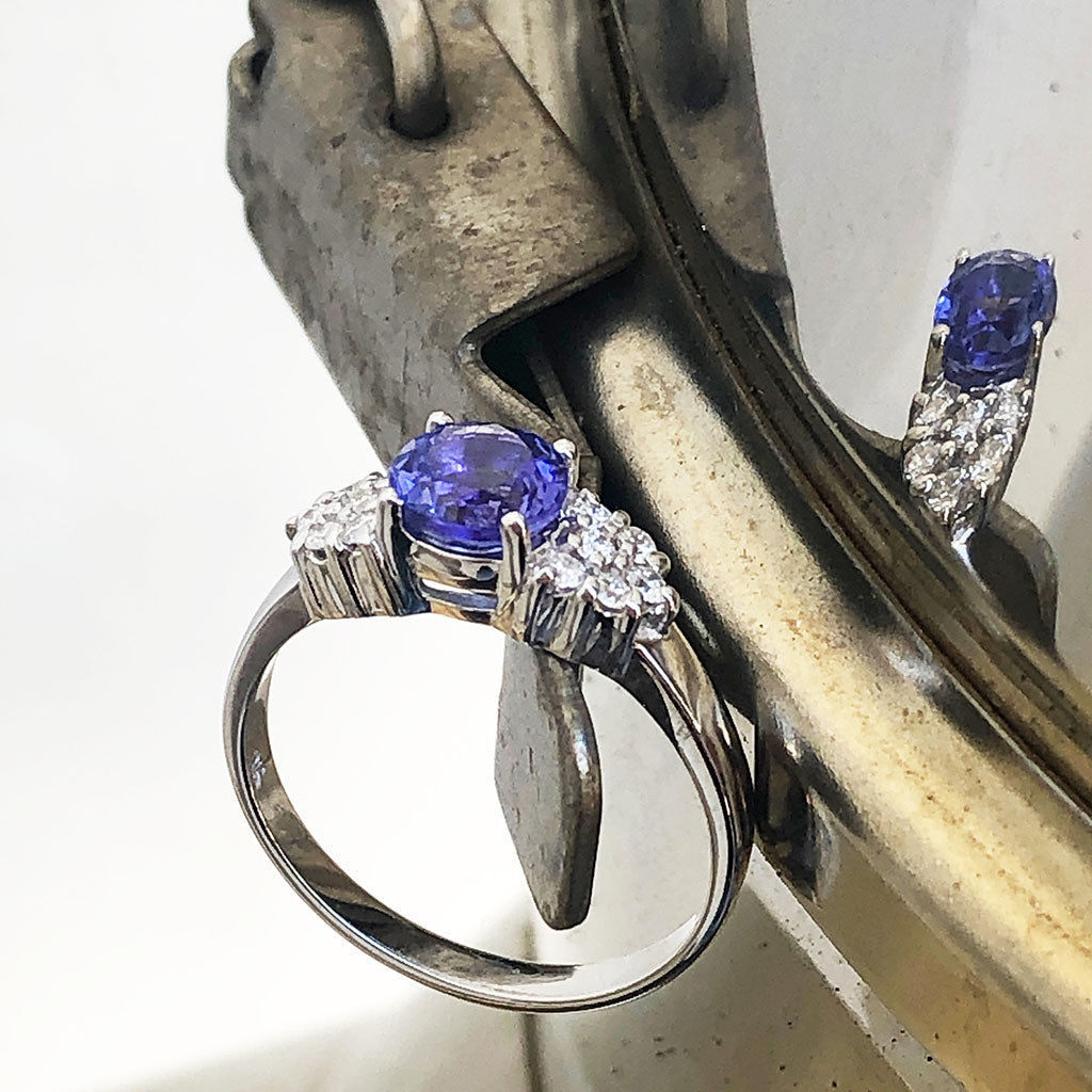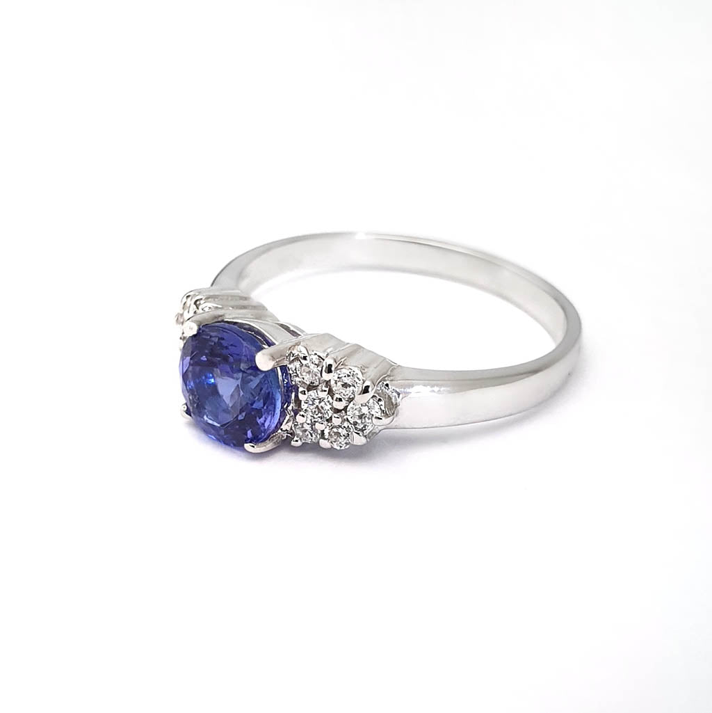 Tanzanite and Multiple Diamond Shoulder Accent Ring