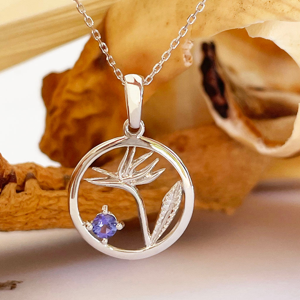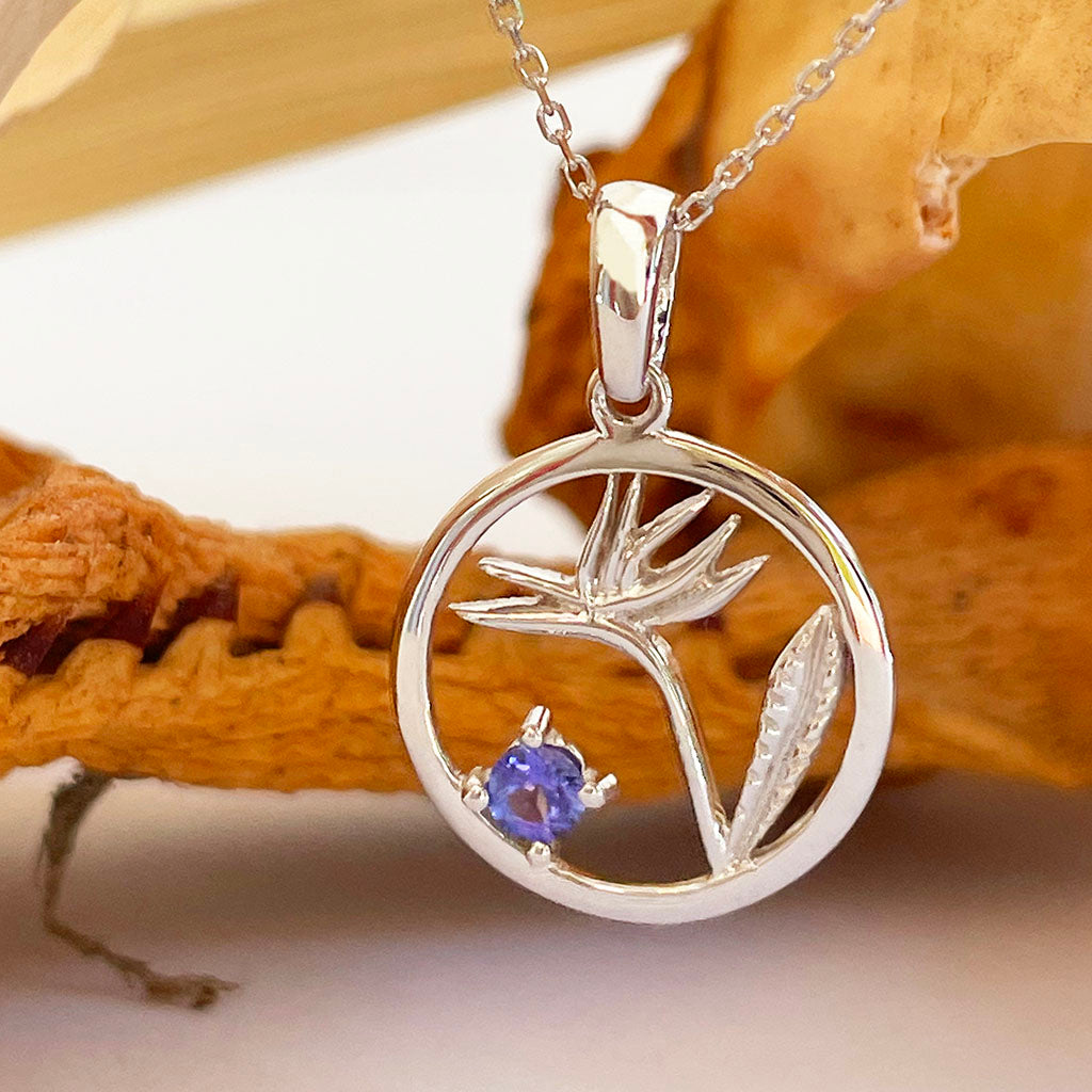 Tanzanite Circular Bird of Paradise White Gold Pendant