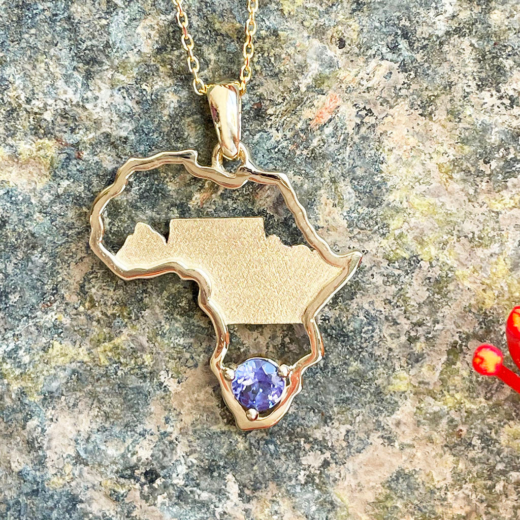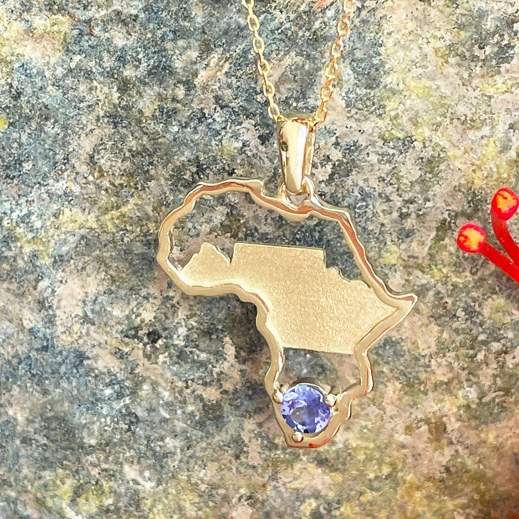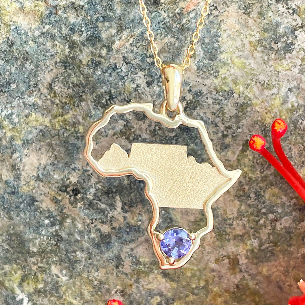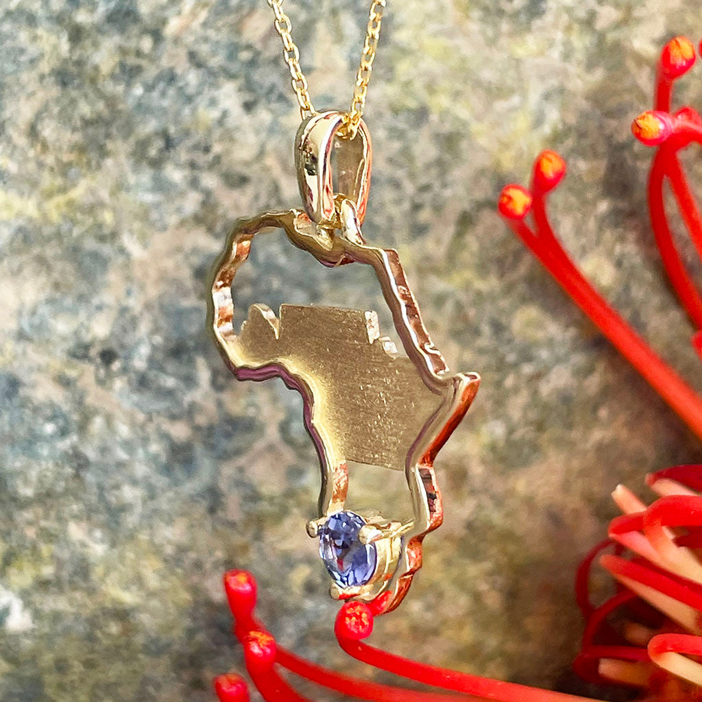 Tanzanite Table Mountain and Africa Map Pendant in Yellow Gold